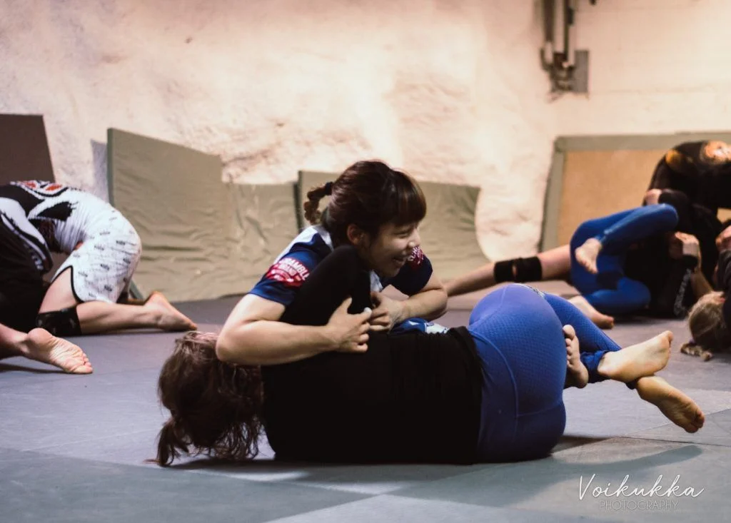 On Sunday morning I brought Rikako with me to the open mat at MMA Vantaa, the famous “bomb shelter” dojo, where we had some good rolls with the locals.