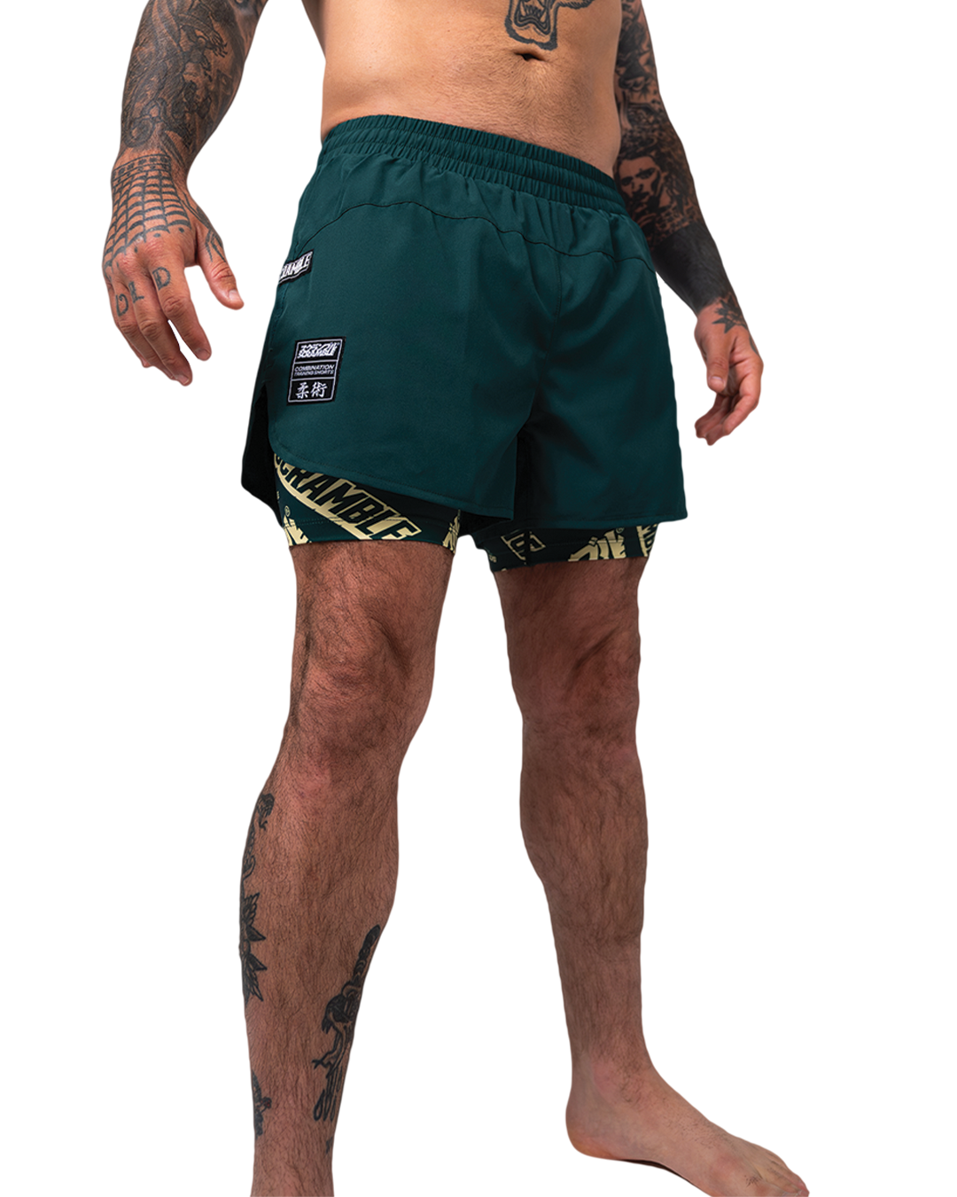 Our Combinatino Shorts are universally recognised as one of the best pairs of training shorts on the market today. These shorts come with a sleek ‘Scramble everywhere’ inner Lycra layer and are designed for various training purposes, including jiujitsu, no-gi grappling, running, and gym workouts. Their design includes an inner Lycra layer and a short, above-the-thigh outer layer for maximum comfort and performance.