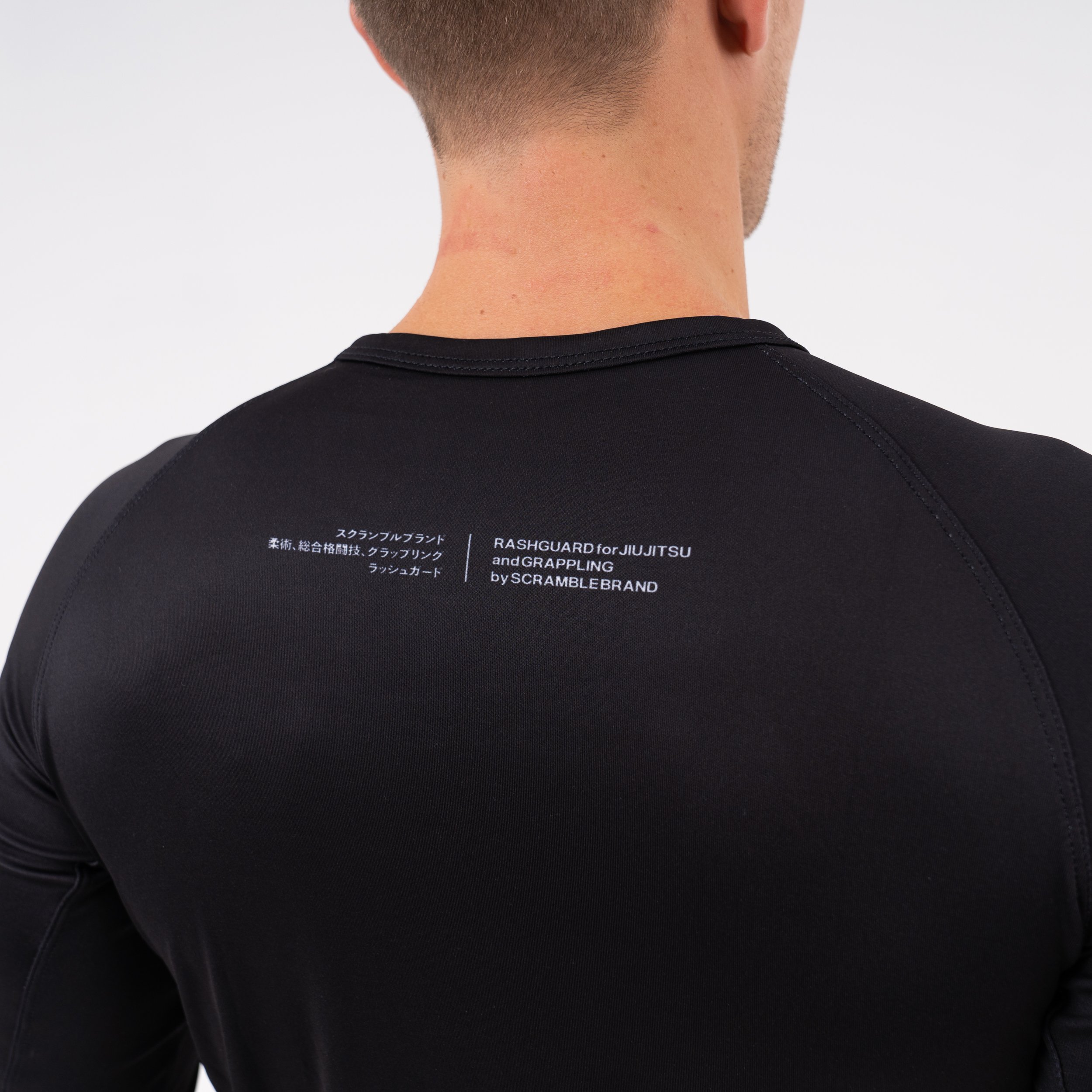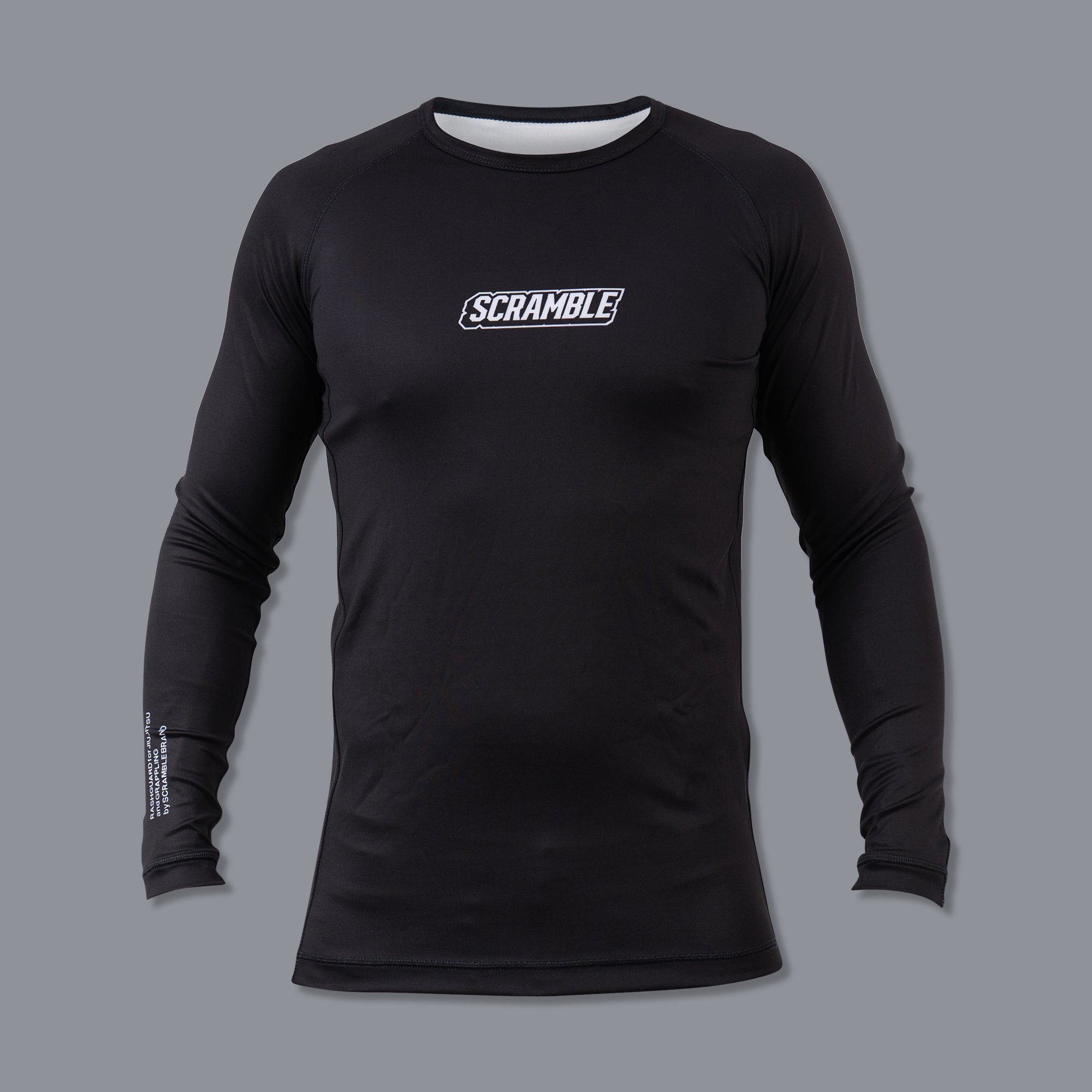 Simple is best. Back to basics with this high quality rashguard with minimalist stylings. Featuring a new Scramble 3D logo on the front and bold descriptive text at key locations. Perfect for jiujitsu.