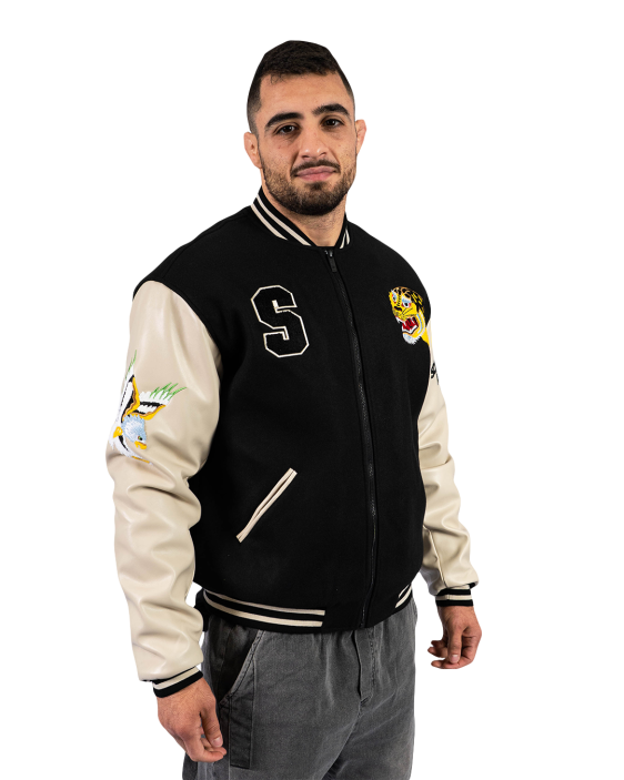 This limited edition jacket features artwork from the talented Kieran Hoohar, a tattoo artist and jiujitsu enthusiast in London. The artwork is made up of firm favourites from tattoo illustrations in tiger and snake, jaguar, and eagle images, all done in Kieran’s signature style.