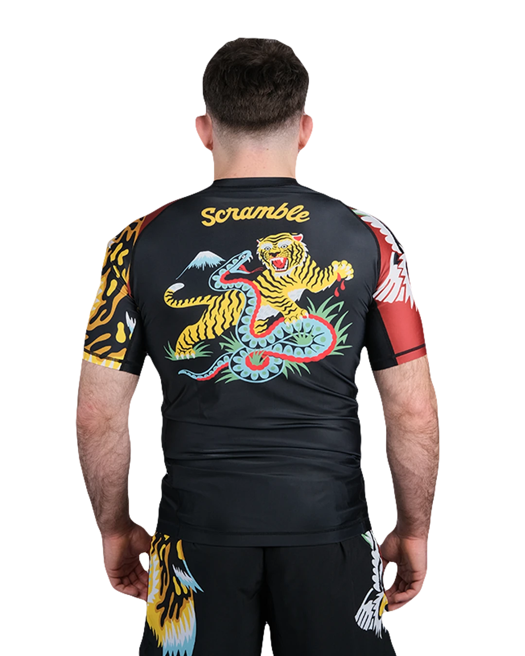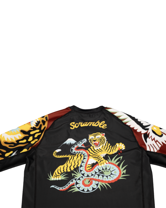 Dieses leuchtende, kühne und farbenfrohe Nogi-Grappling-Set wurde von dem talentierten Kieran Hoohar, einem Tätowierer und Jiujitsu-Enthusiasten aus London, entworfen. Die Illustrationen bestehen aus beliebten Tattoo-Illustrationen von Tigern und Schlangen, Jaguaren und Adlern, die alle in Kierans unverkennbarem Stil gestaltet sind. Die Rashguards gibt es in einer lang- und einer kurzärmeligen Version (die langärmelige Version ist zeitlich exklusiv für die USA) und wir haben auch Grappling Shorts und lange Spats (die Grappling Spats sind zeitlich exklusiv für die USA).