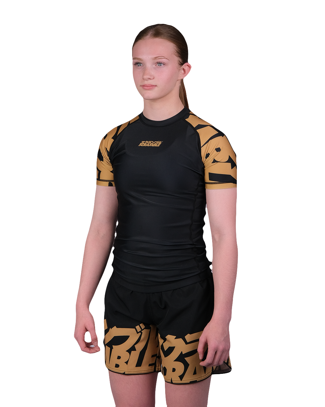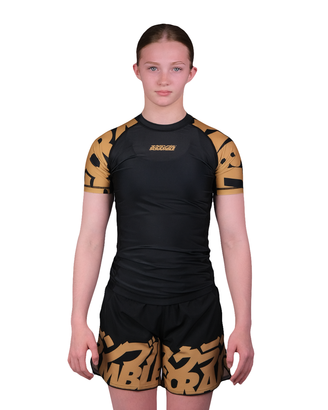 El conjunto Baka iba a llamarse originalmente Baku, como en bakuhatsu, que en japonés significa Explosión, porque los logotipos de Scramble son «explotados». Pero elegimos Baka, porque es gracioso, porque «baka» significa idiota en japonés. ¡Superviviente baka! De todos modos, no importa porque este es uno de los mejores conjuntos de no-gi que hemos lanzado.