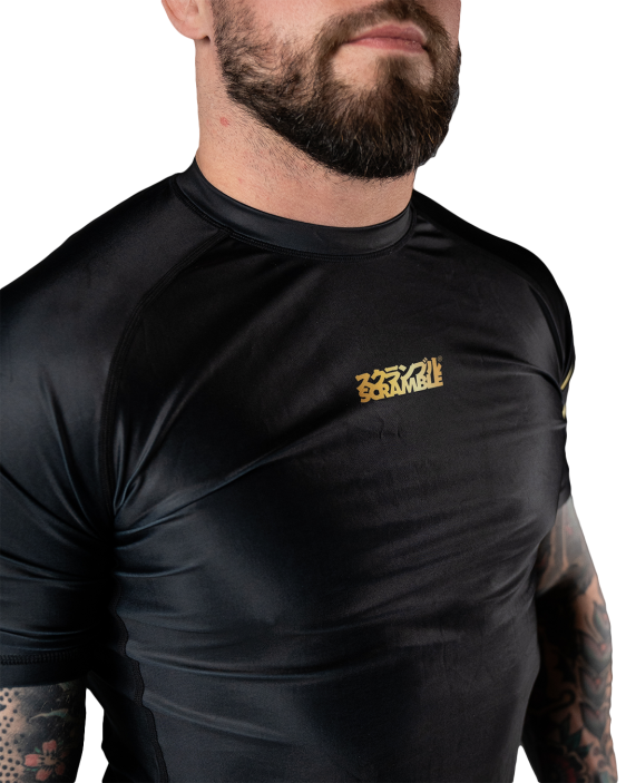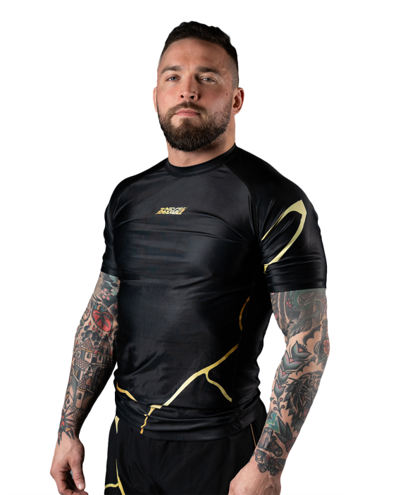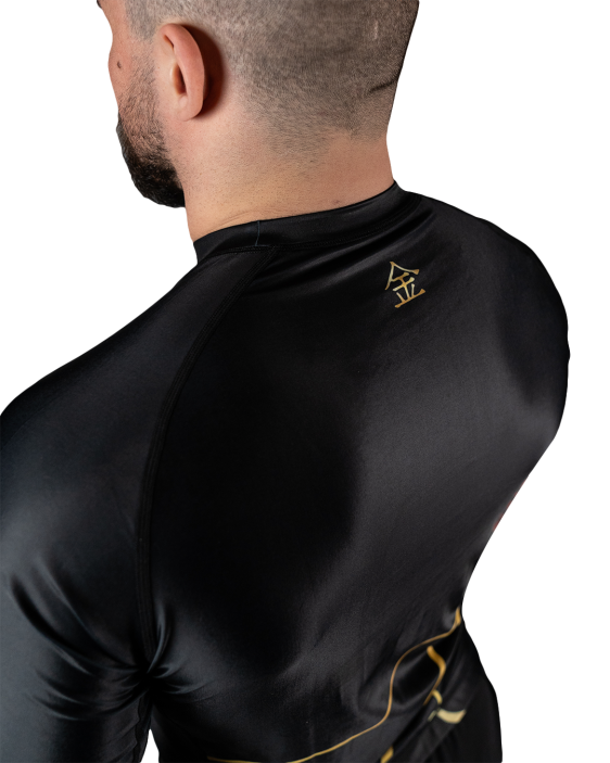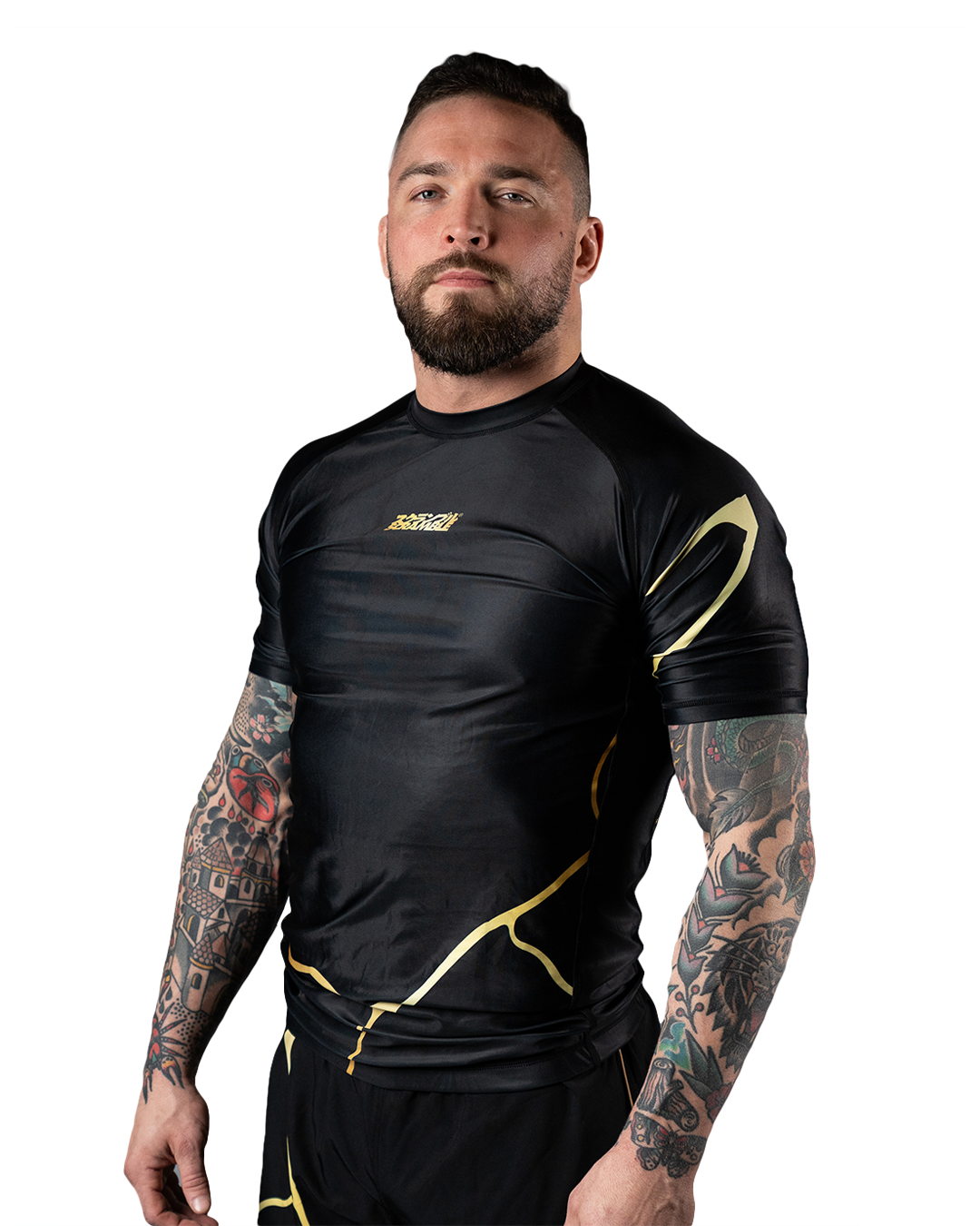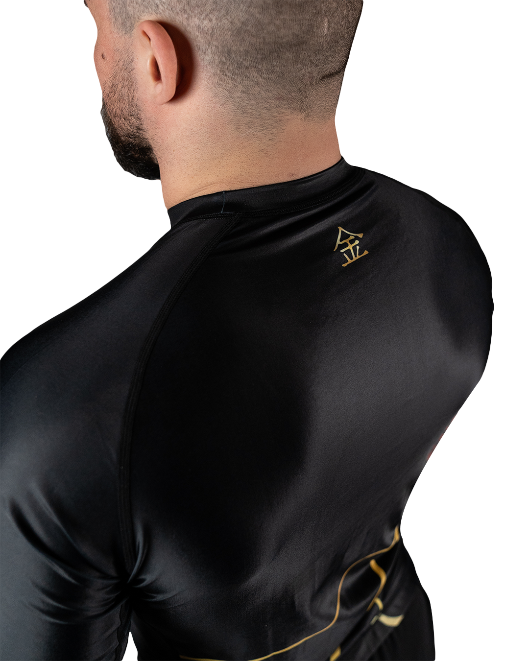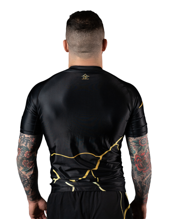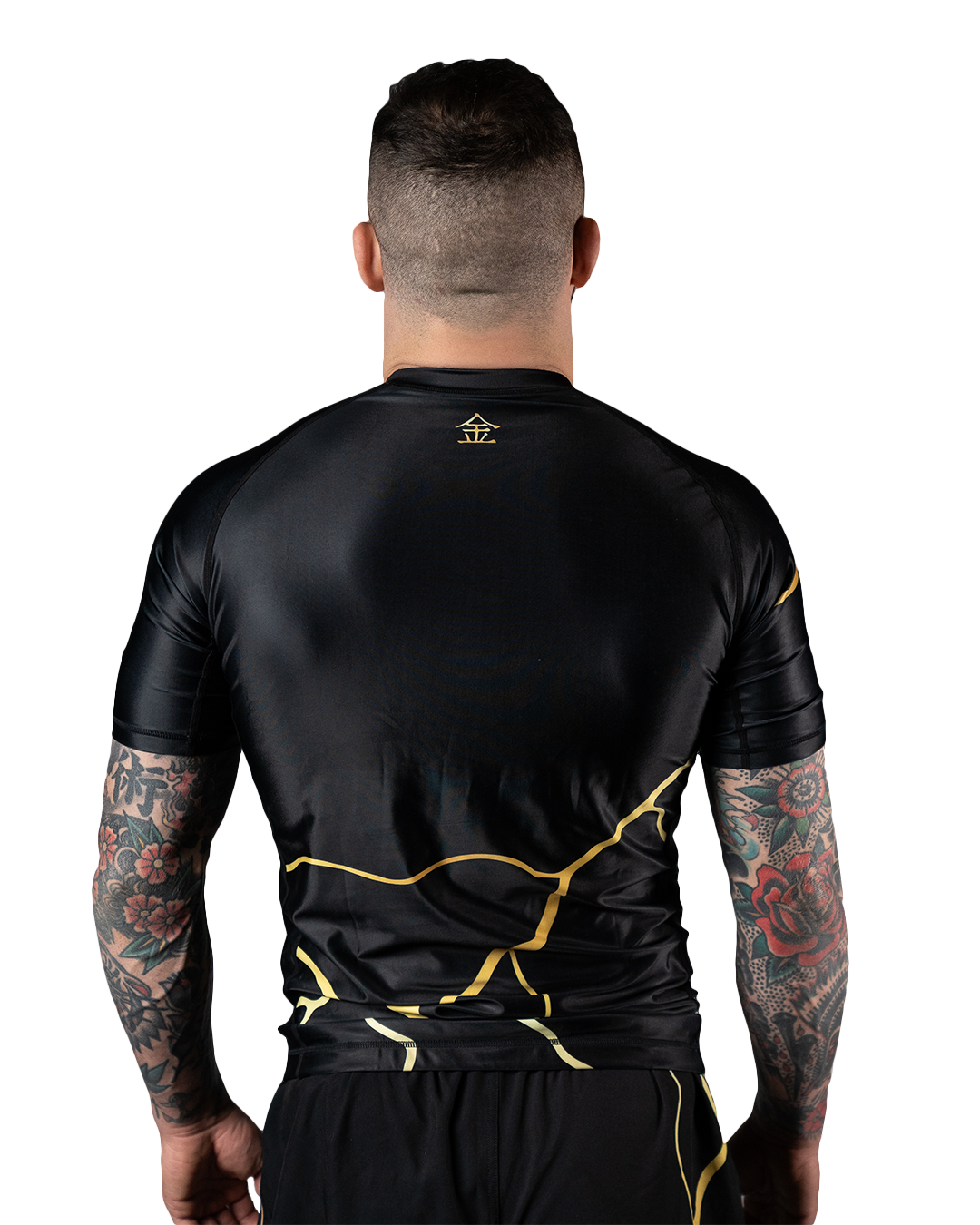 Kintsugi no-gi set en negro y dorado. Durante nuestra campaña en redes sociales sobre este producto, muchos de nuestros seguidores realmente se sintieron identificados con el concepto detrás de este set no-gi y estamos muy emocionados de que todos lo lleven puesto.