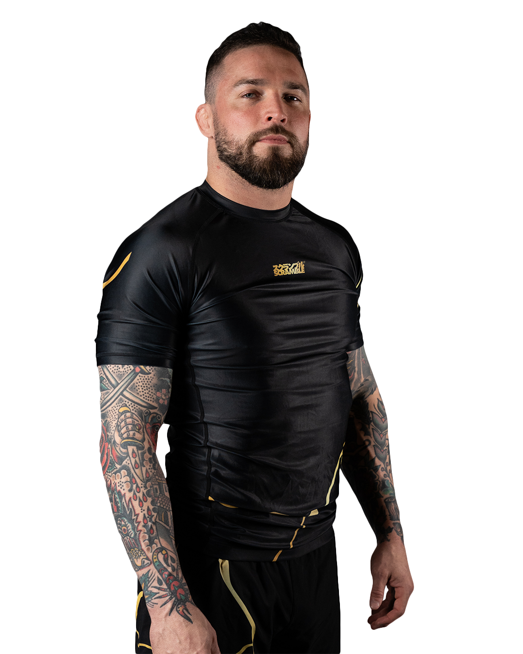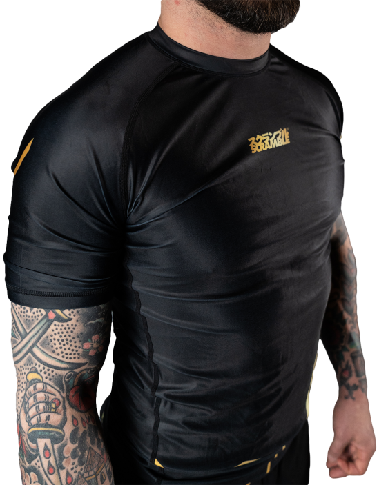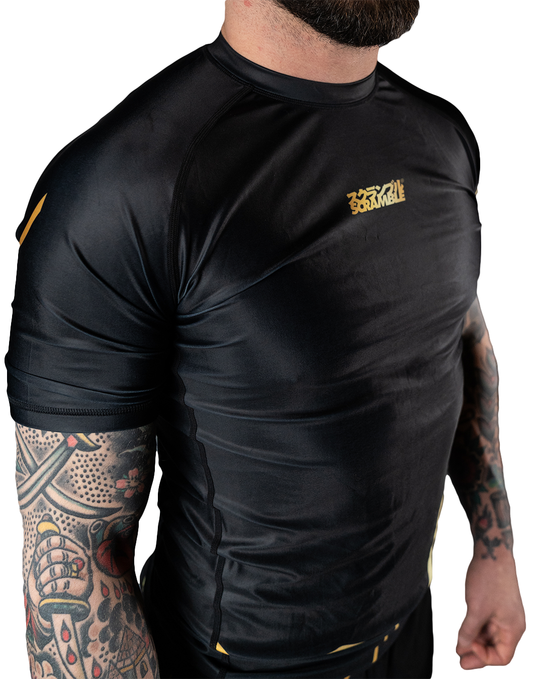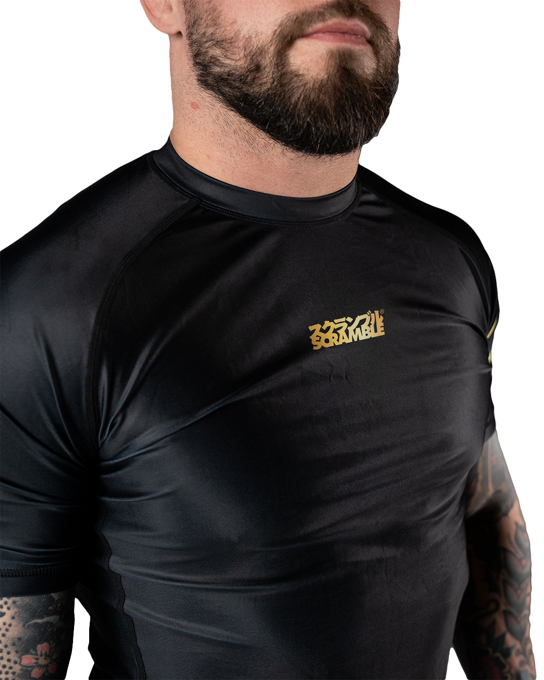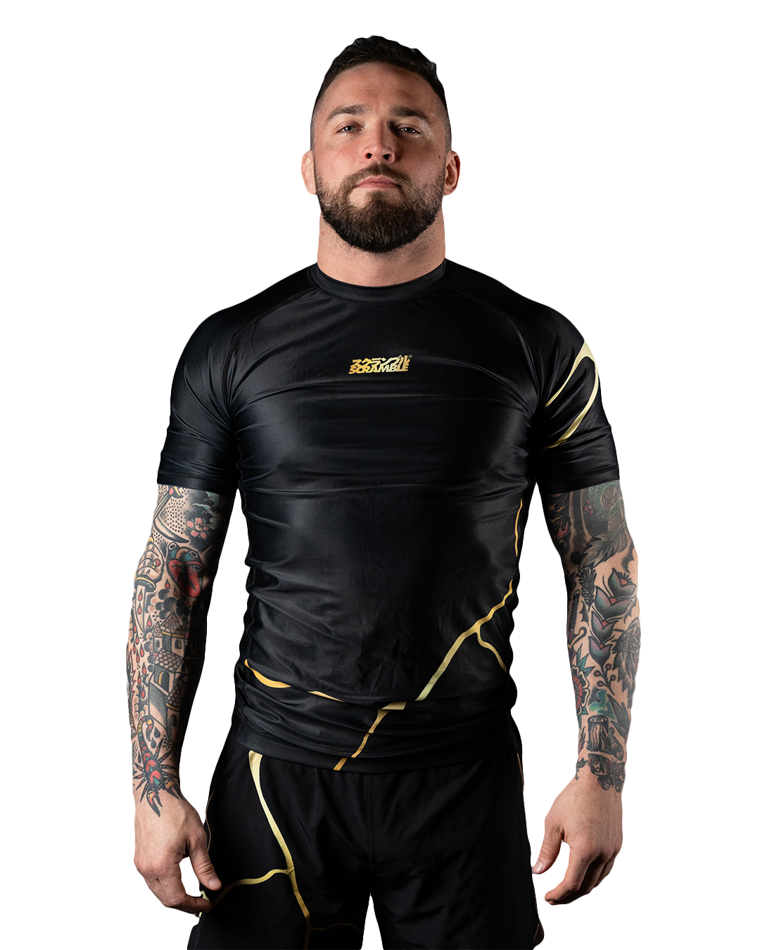Kintsugi no-gi set en negro y dorado. Durante nuestra campaña en redes sociales sobre este producto, muchos de nuestros seguidores realmente se sintieron identificados con el concepto detrás de este set no-gi y estamos muy emocionados de que todos lo lleven puesto.