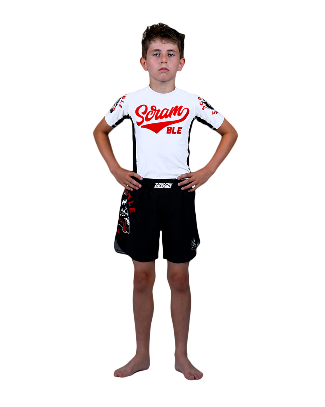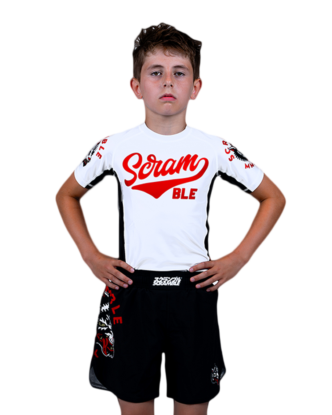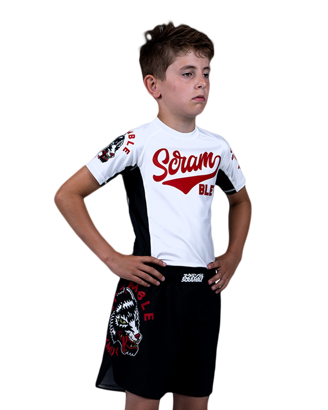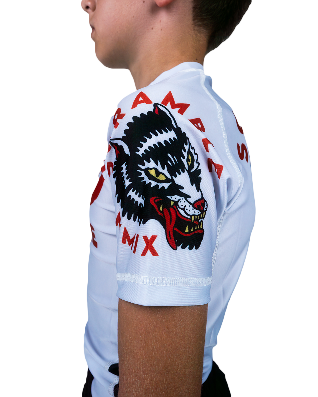 Using our much-loved Tactic cut, which features multiple body-countered panels and breathable mesh underarms, this rashguard has a bright and bold theme with a friggin badass wolf on it. Okami is Japanase for Wolf yeah?