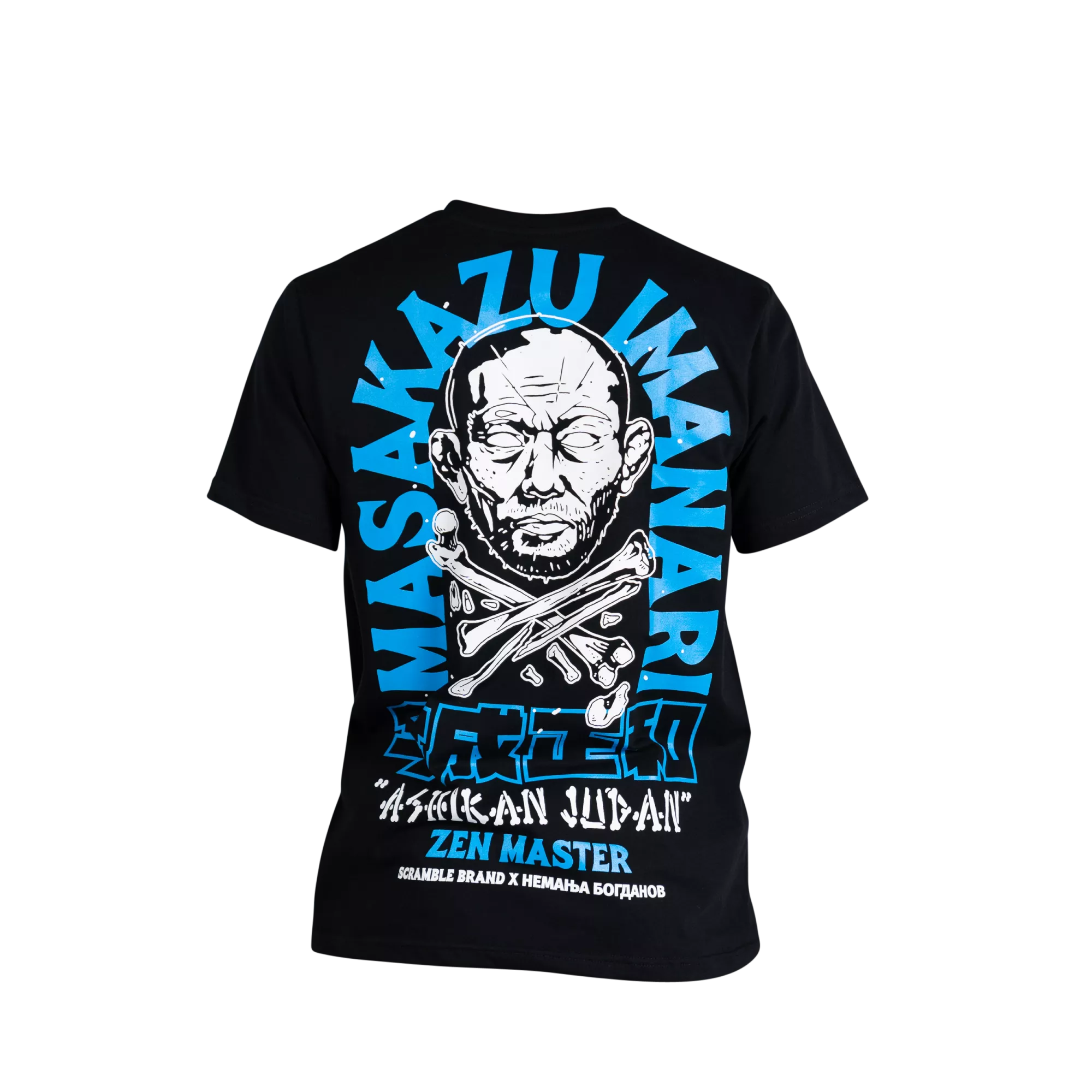 Esta camiseta presenta ilustraciones personalizadas de Masakazu Imanari hechas por el talentoso Nemanja Bogdanov. Las poderosas llaves de pierna de Masakazu Imanari son material de leyenda, y esta camiseta fue bendecida en un secreto rito de iniciación ubicado en el más oscuro y recluido dojo del centro de Tokyo. El material en sí está finamente entretejido con tendones y ligamentos de las muchas víctimas de Imanari y está garantizado en añadir un 69% de aumento a tu habilidad para causar daño permanente en la región de las piernas. De nada!