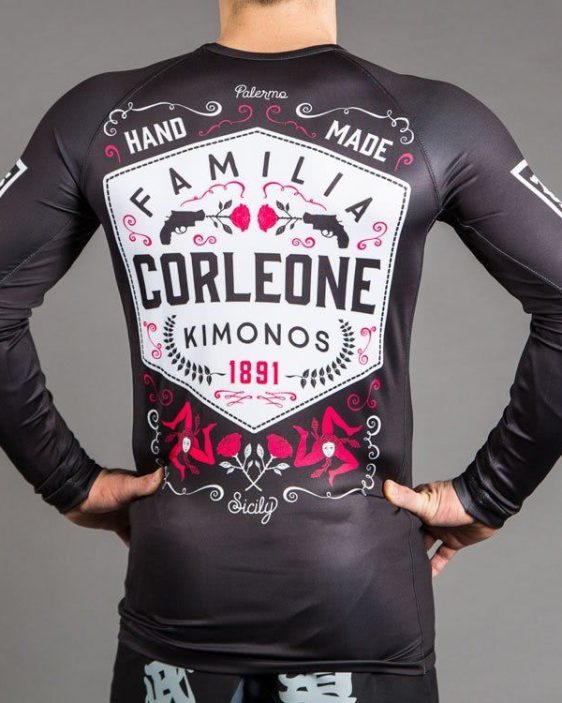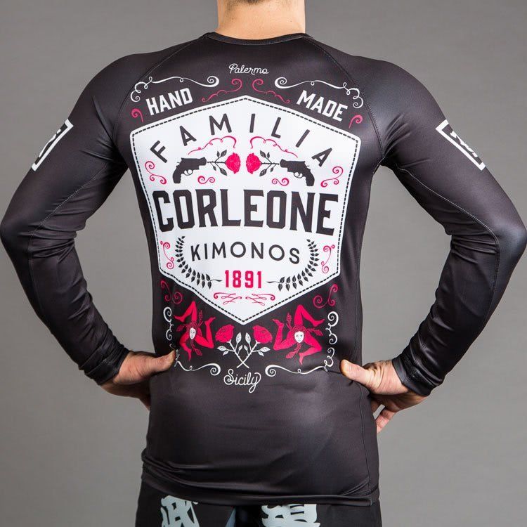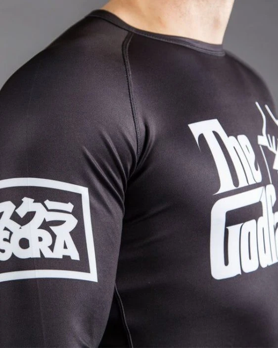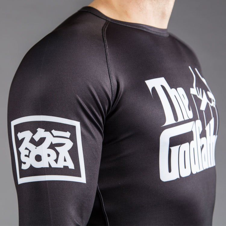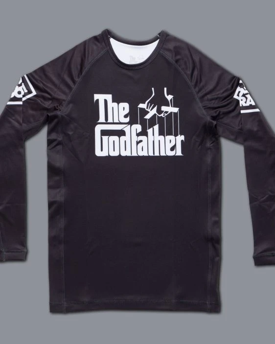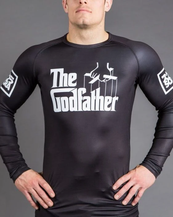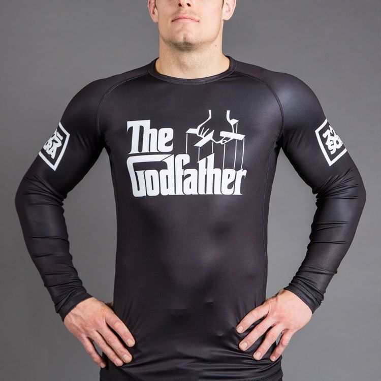 Official – The Godfather Rashguard from Scramble. Made from superior quality polyester blend. Resists pilling, wicks away moisture. Allows you to take guns and leave cannoli.