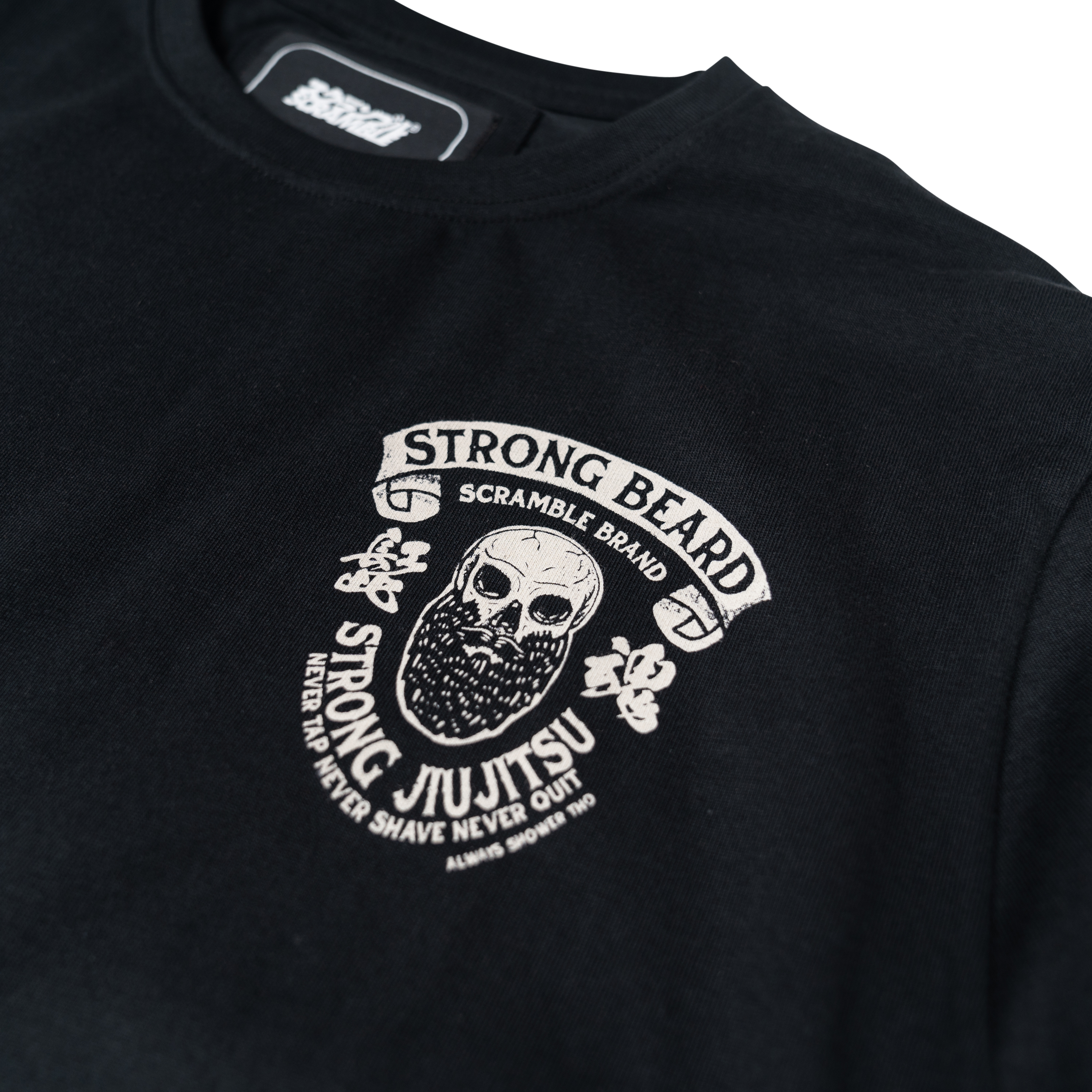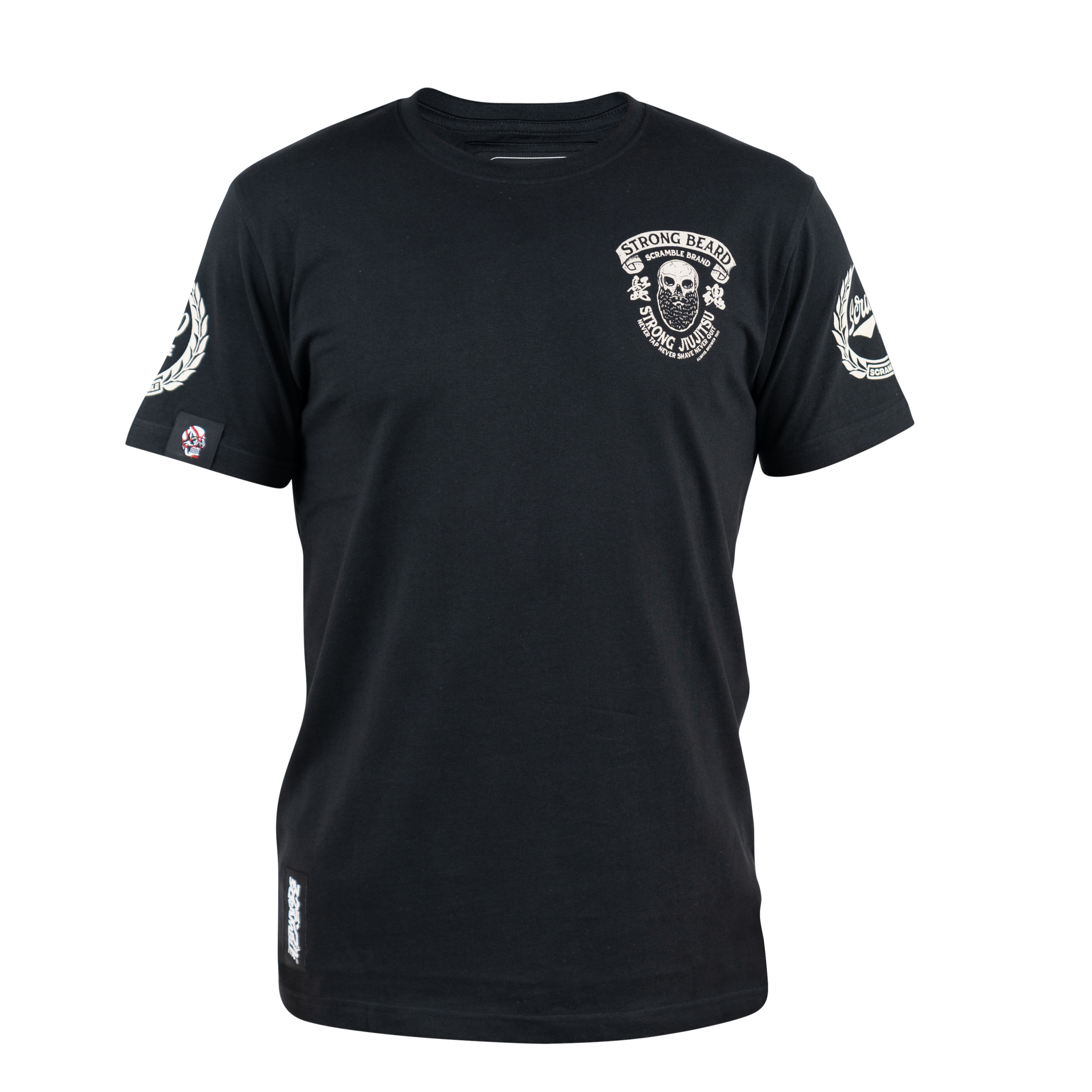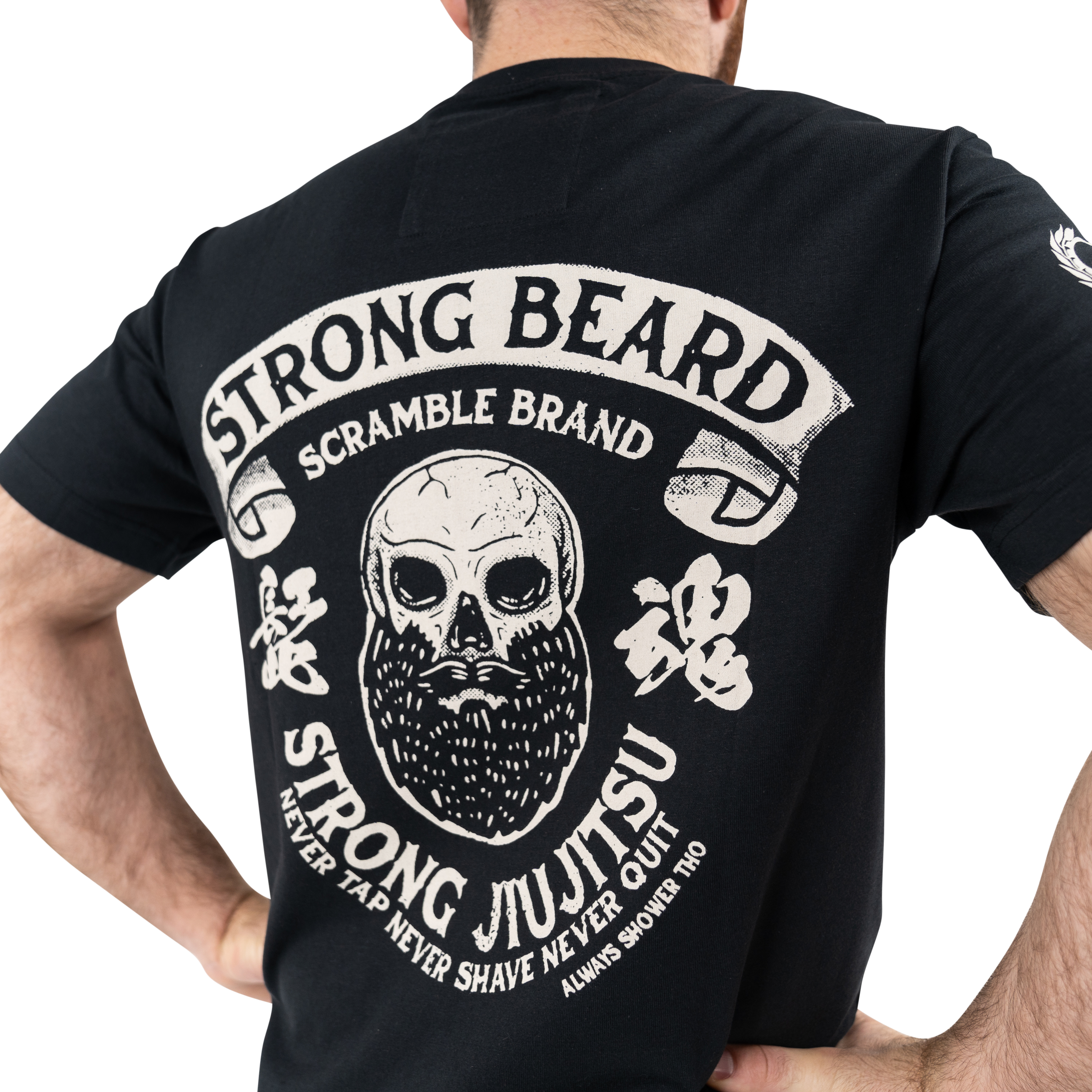 The Scramble Strong Beard Tee is one of our most legendary products, having been conceived almost as a novelty in the beginning from something a friend has said (strong beard, strong fight!) it flew off the shelves and almost instantly sold out many moons ago. It has appeared in many variations over the years but what really set it apart was when Tom Hardy wore it for some interviews. Tom Hardy in a Scramble Strong Beard Tee = big news. Every day we get hammered with people searching for ”Tom Hardy Scramble Beard Tee”, so here it is again, in 100% supersoft, heavyweight organic cotton. We added a few centimeters in length, too, to help cover your beer belly (statistics show beards and beer bellies have a strong statistical overlap) OR to stop it from riding up when you reach up to stroke your magnificent mane. Never lie, never cheat, never quit, never shave!