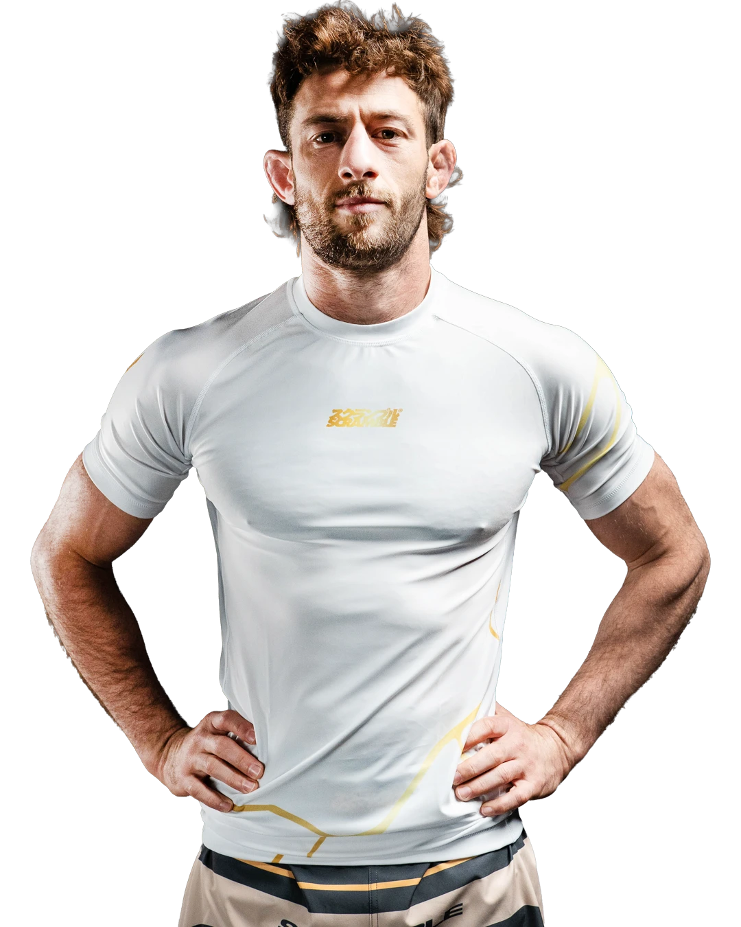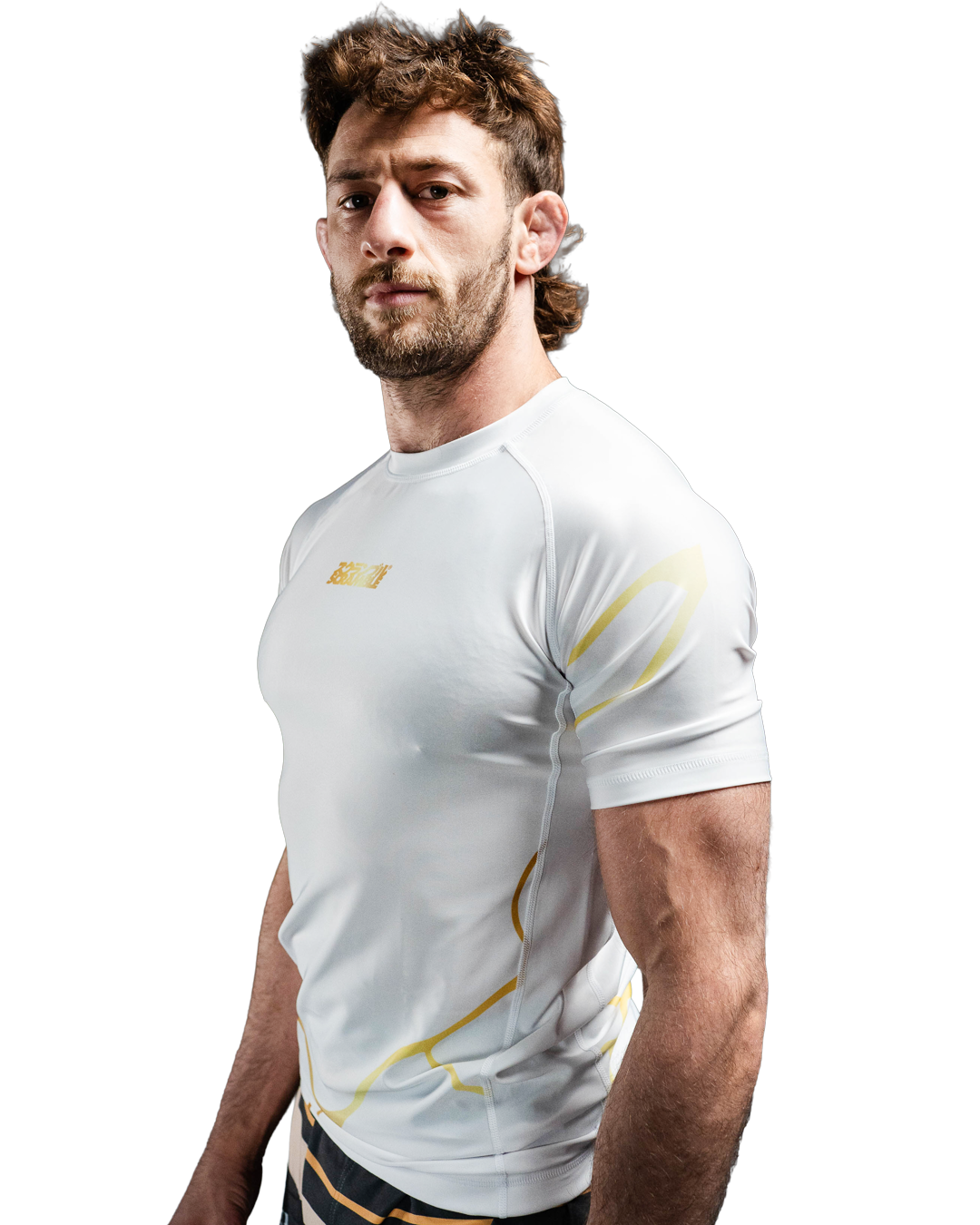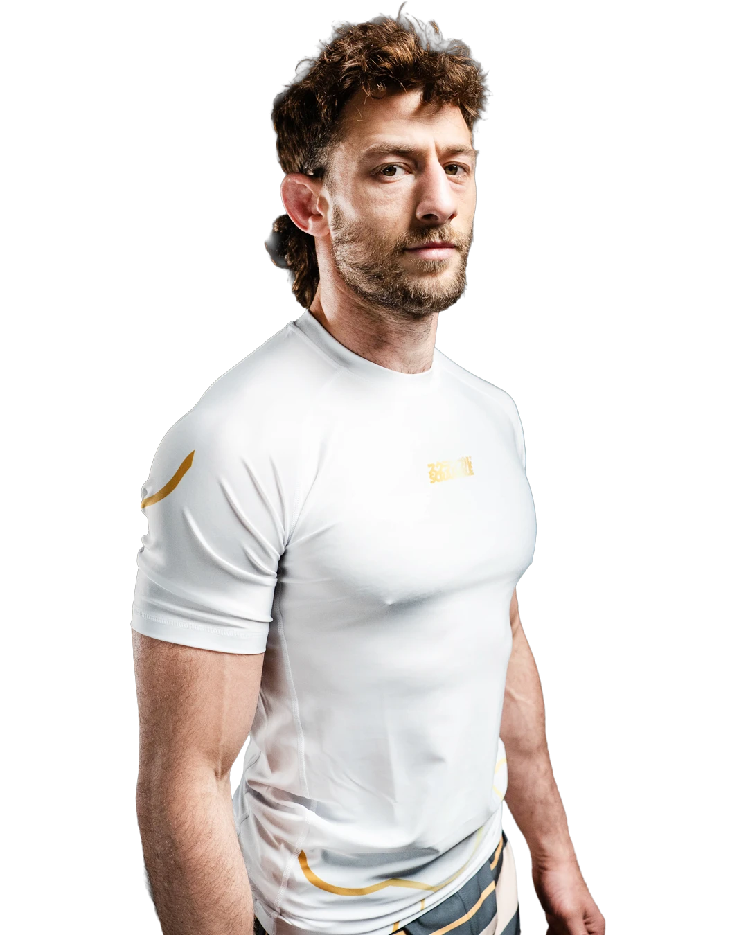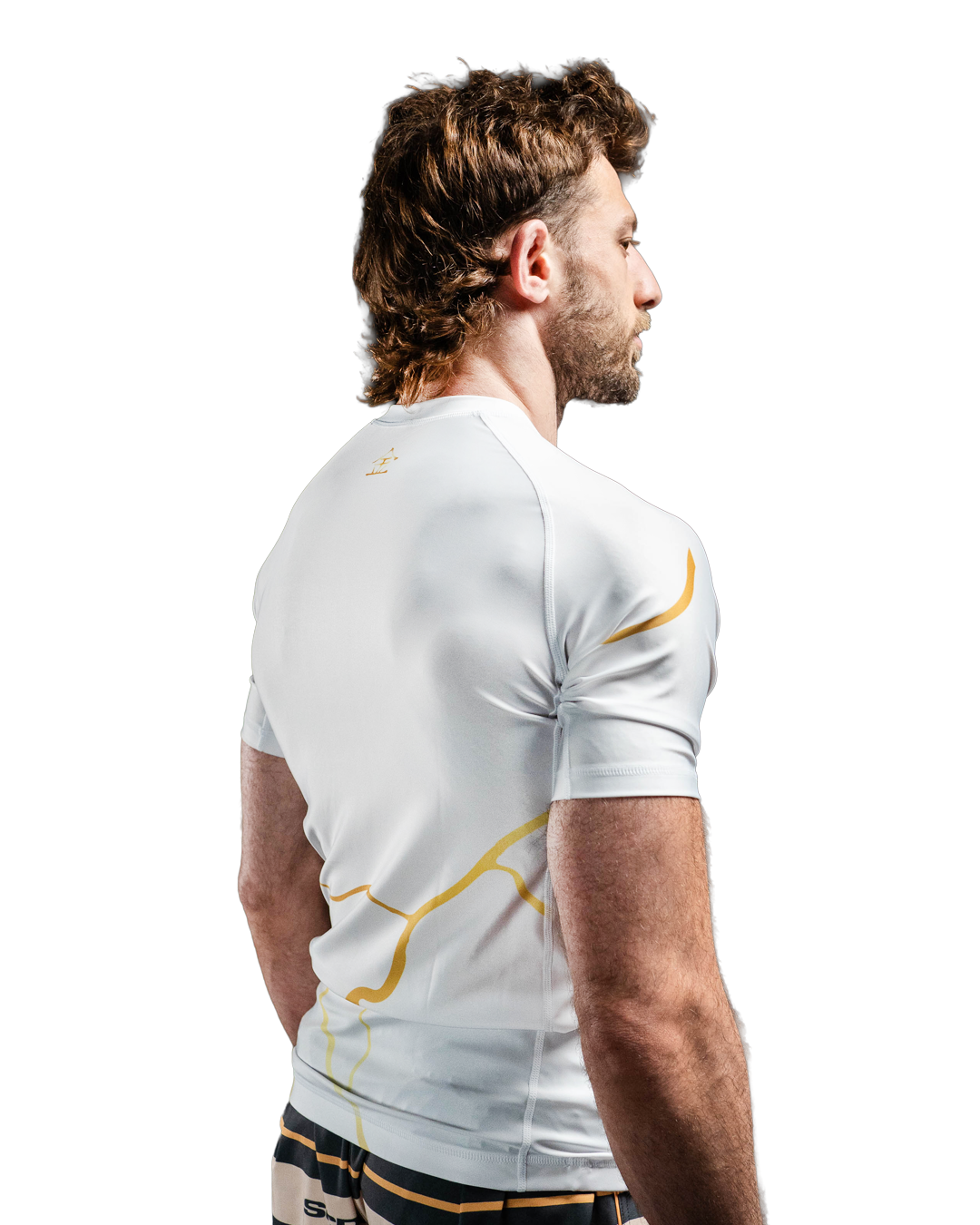 Kintsugi Rashguard in white and gold. During our social media campaign about this product, a lot of our fans really resonated with this concept and we are very excited for you all to be wearing it.
