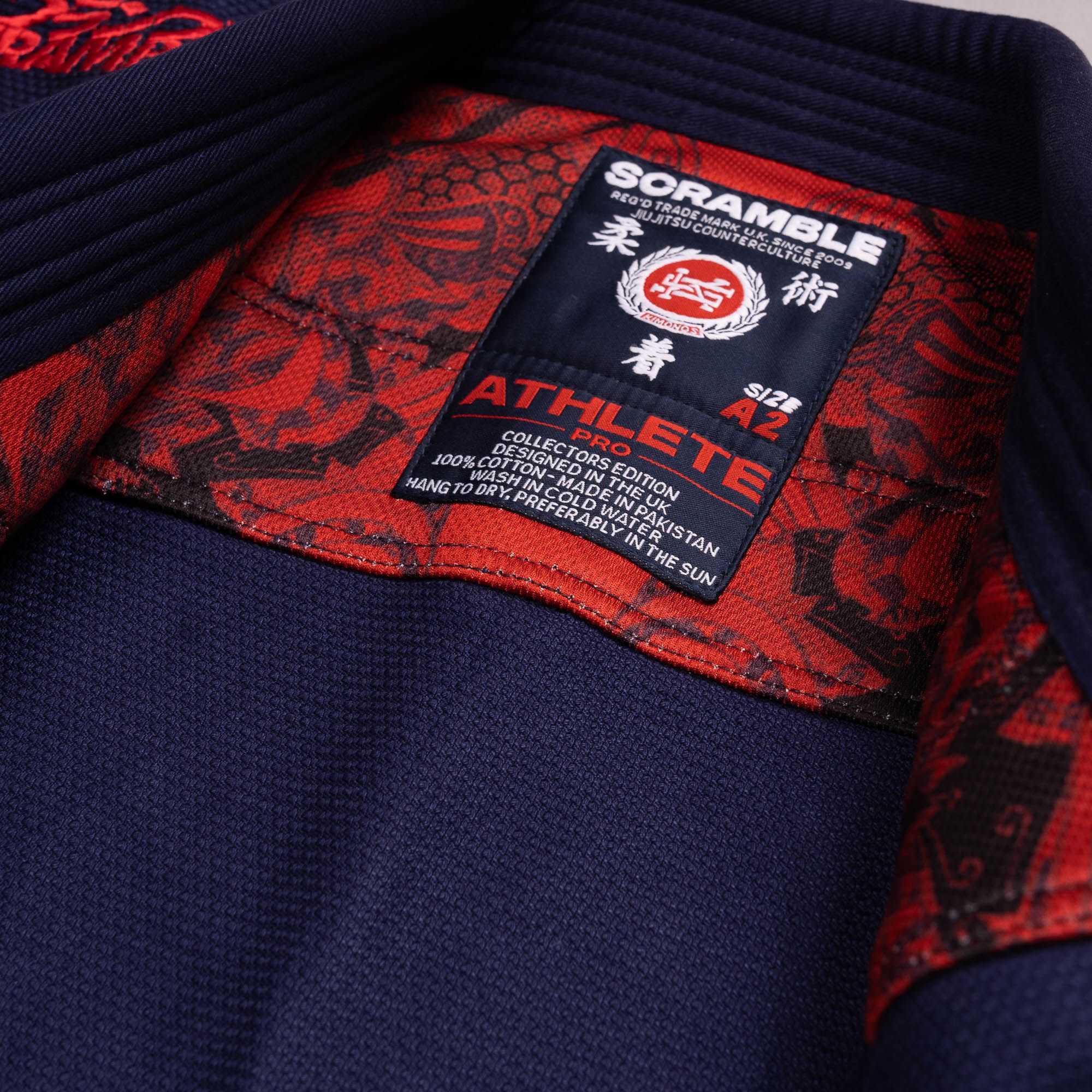 Dans cette édition Athlete pro collector, nous sommes allés jusqu’au bout des embellissements du design et avons inclus un Gi bag pour les collectionneurs. Le matériau est légèrement plus lourd que les autres versions : 550 g/m2 pour le dessus et 10,5 oz de sergé pour le dessous. Il en résulte un sentiment de qualité, car le sergé doux, bien que sujet à un rétrécissement légèrement plus important que le ripstop, a généralement un toucher plus luxueux. Le rétrécissement de tous nos Gis devrait rester dans des limites tolérables et vous aider à obtenir la bonne taille une fois que le Gi a été porté à la salle de sport.