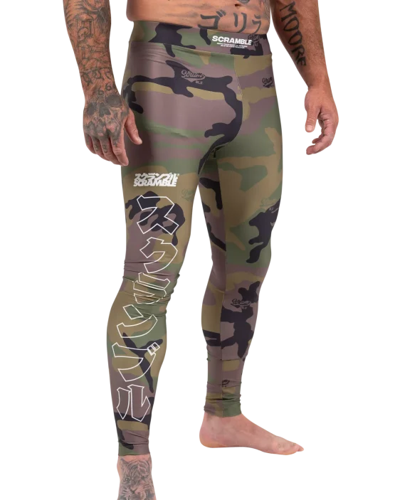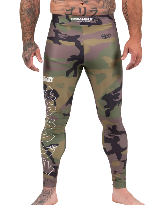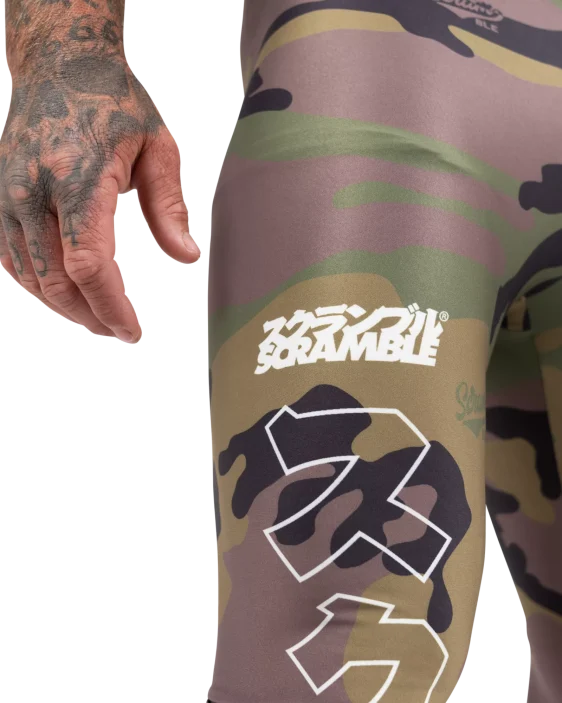 Ces guêtres non Gi, grappling / MMA présentent notre motif camo Scramble Tiger personnalisé