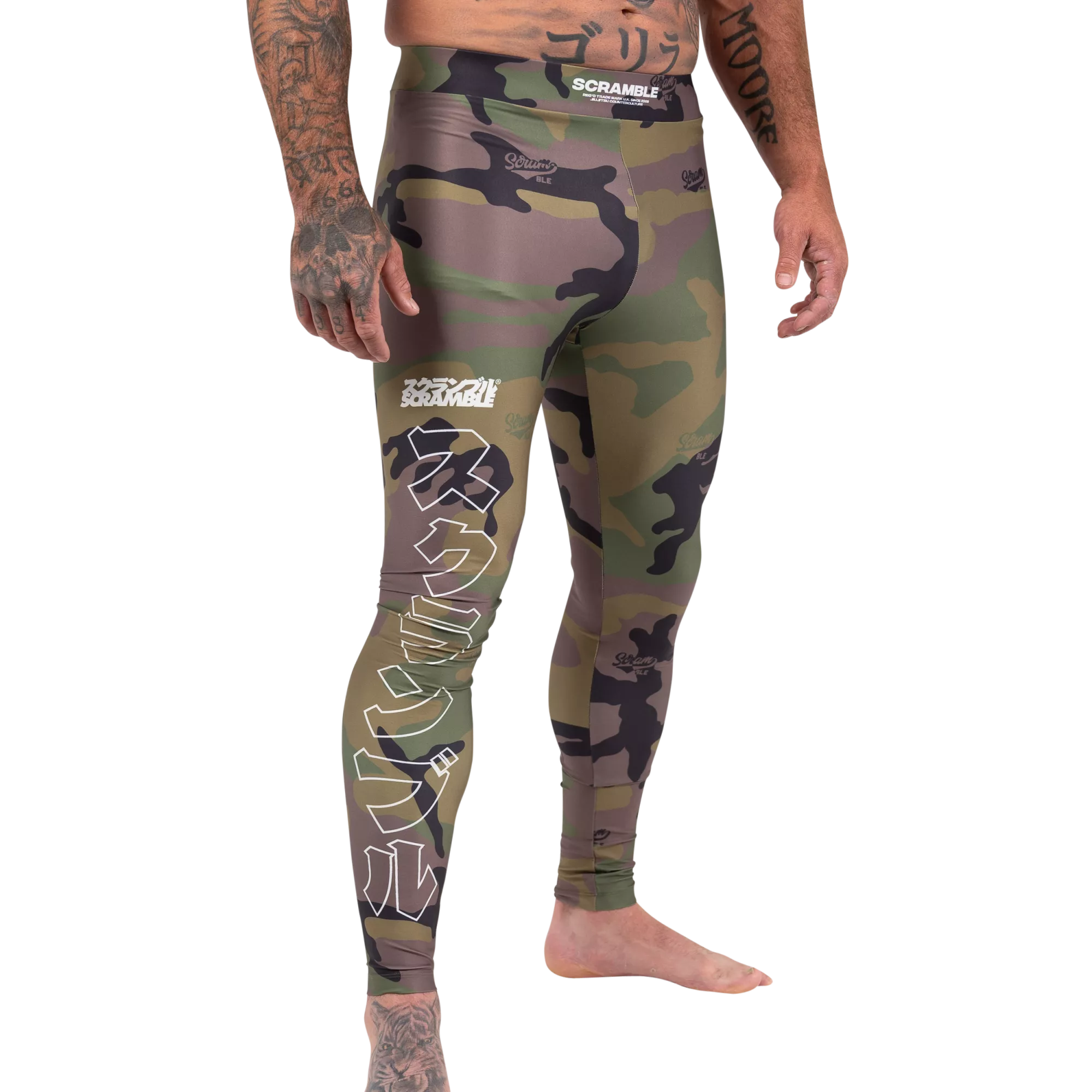 Ces guêtres non Gi, grappling / MMA présentent notre motif camo Scramble Tiger personnalisé