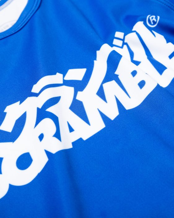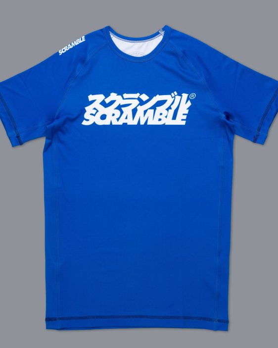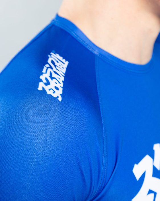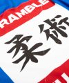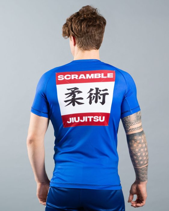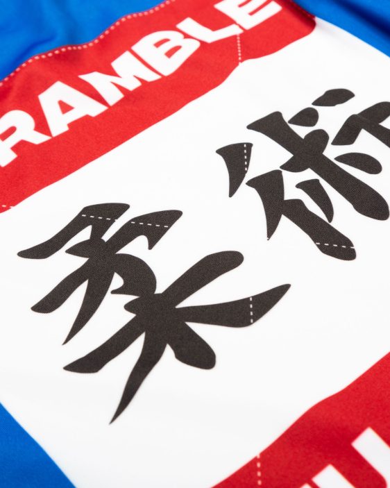 Our Shiai Rashguard in blue. Inspired by traditional Judo « back patches » which were identifying patches sewn onto the back of a judo player’s gi for competition.