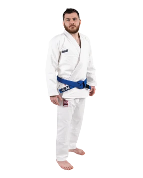Ce Gi de Jiujitsu a un dessus en tissu perlé 450gsm, qui est rapidement devenu la norme et qui est un excellent équilibre entre le poids et la durabilité. Le pantalon est en antidéchirure cette fois, et pèse 10 oz. Tous les matériaux sont 100% coton.