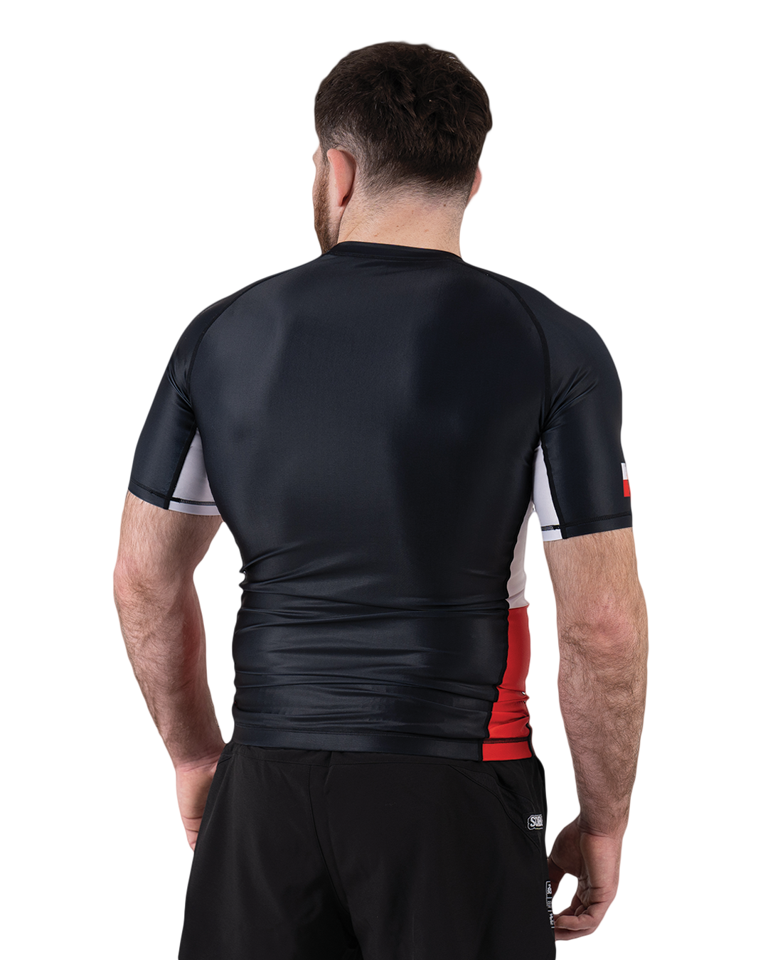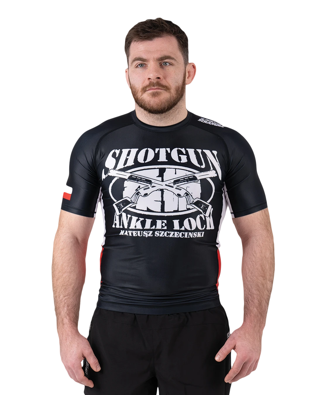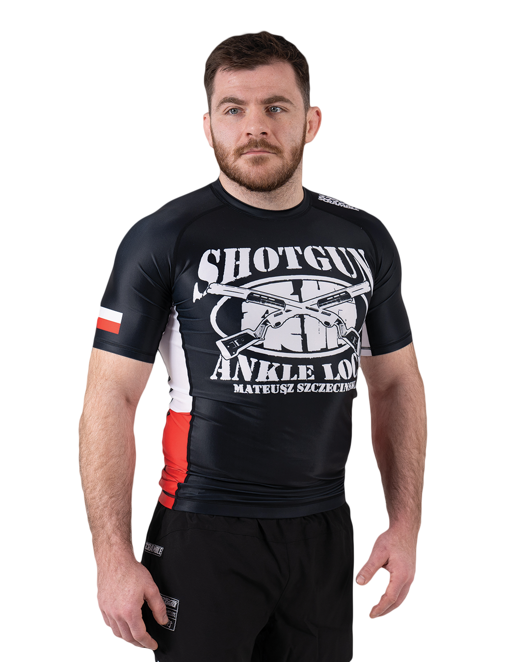 This special edition athlete collaboration rashguard celebrates the famous ankle lock of Mateusz Szczecinski. Hailing from Poland, Mateusz is an ADCC veteran with two spectacular submission wins, as well as the Polaris welterweight champion. The short sleeved rashguard features a reference to his signature submission as well as small logo hits and a Polish flag motif.