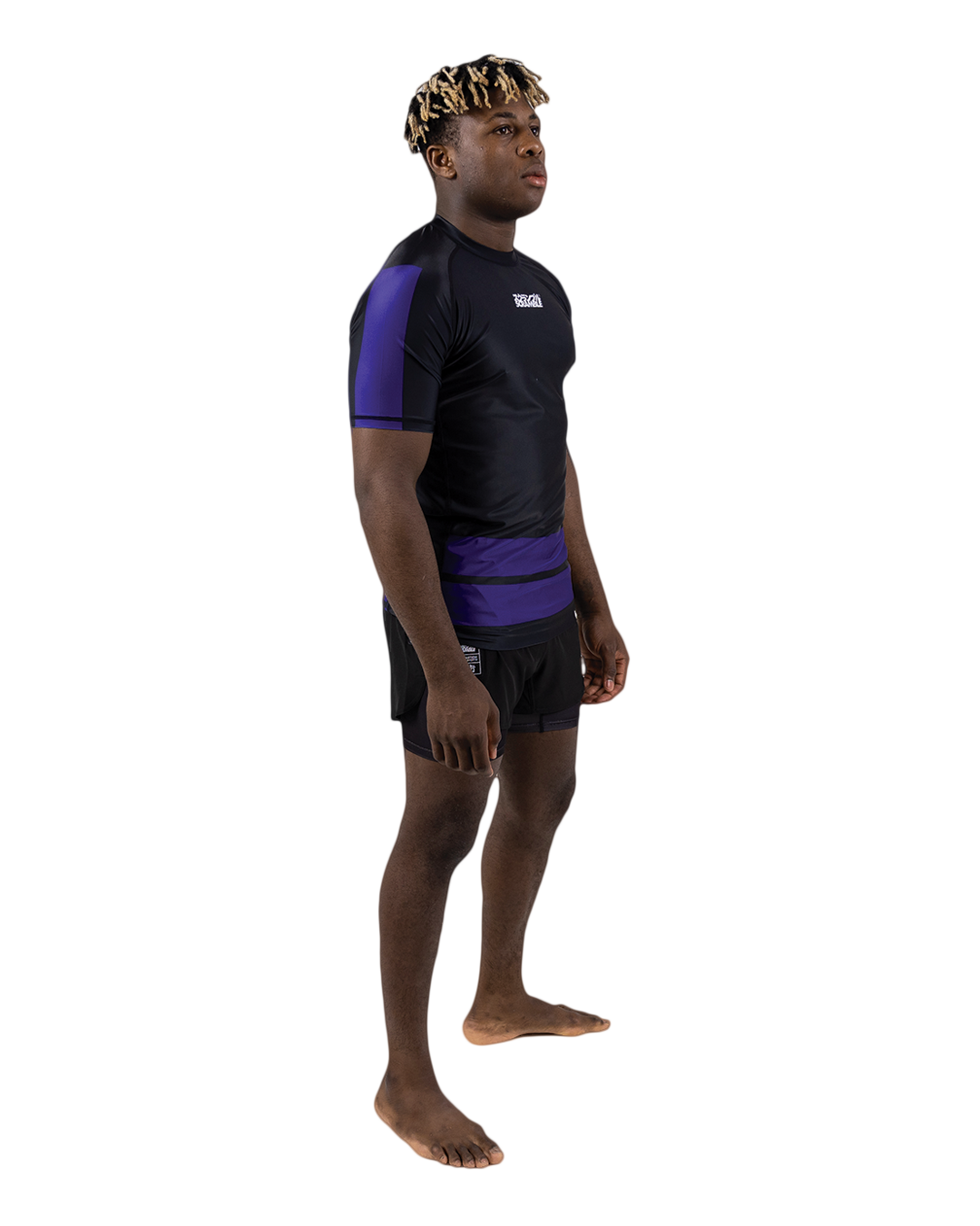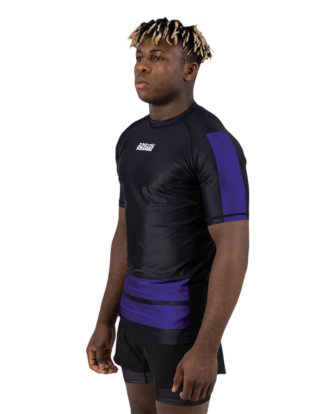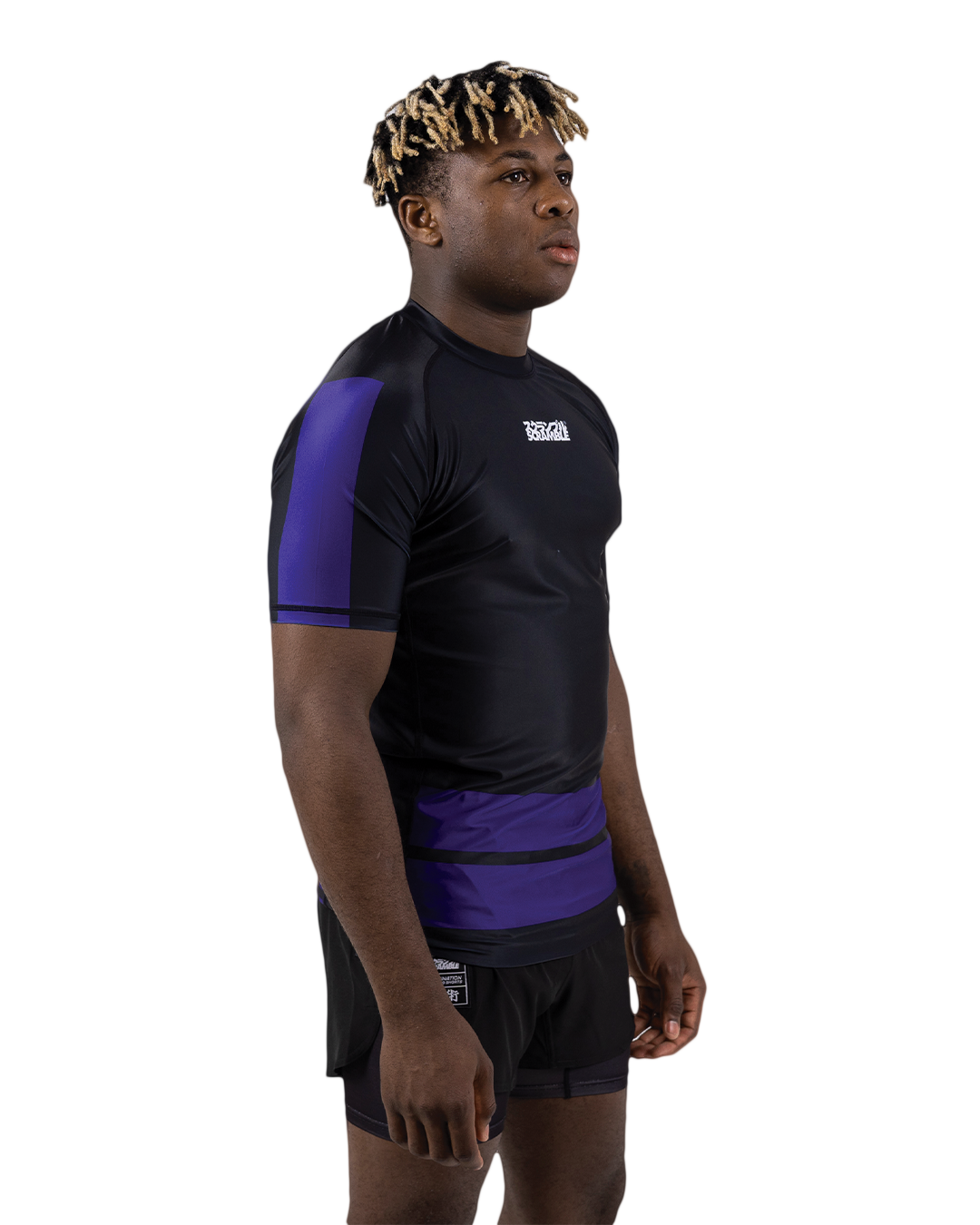 Our ranked rashguards follow all IBJJF guidelines for rank colour rashguards, featuring accents in the belt rank that make up the required percentage to compete in IBJJF competition, or simply to train and compete in no gi jiujitsu with attire based on your rank. The rashguards are made with a superior polyester blend that reduces pilling, as well as high quality stitching and panels that move with your body.