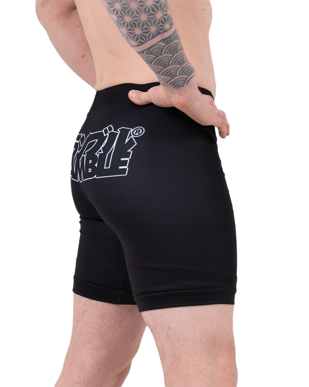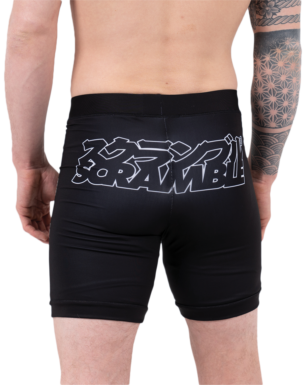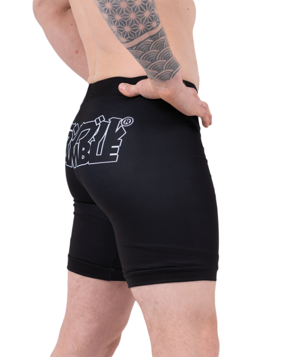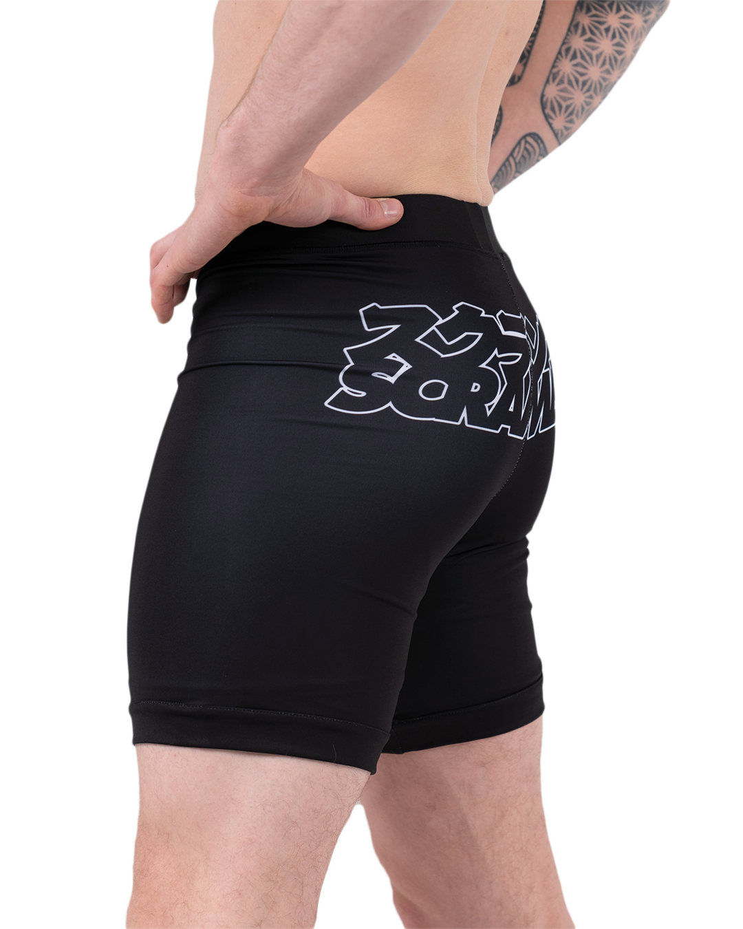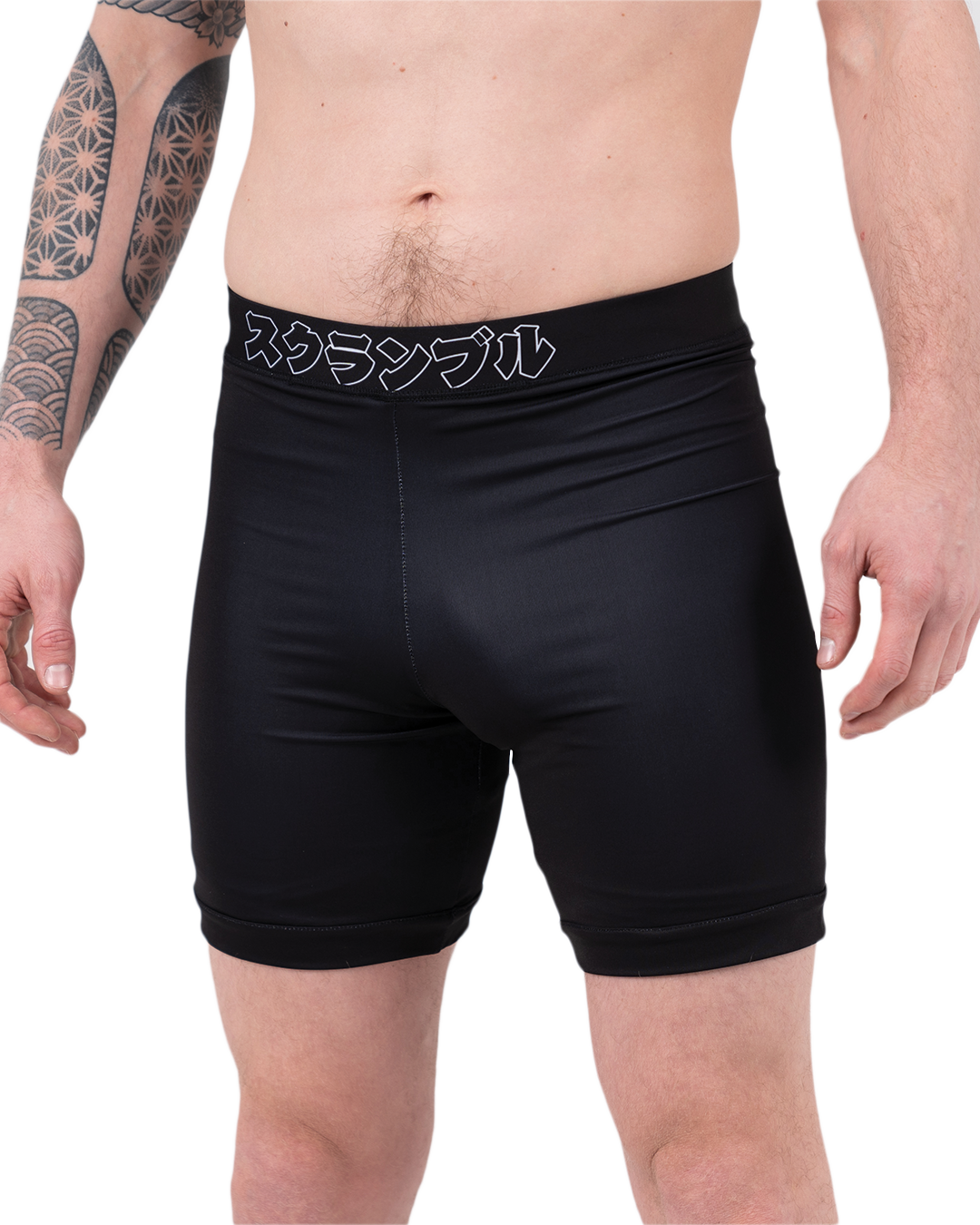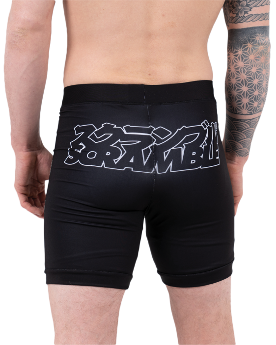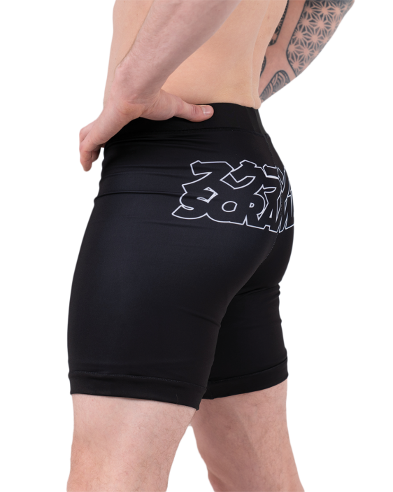 Our double layered Base-VT shorts are slightly longer in the leg, which is great. Seriously. The double layer thing means literally nobody is gonna see your junk, even when squatting or tea-bagging the unconscious body of your opponent. Plus, you get the super Scramble stylings for a free mate. Seriously. Free printed logos with every pair of vale tudo shorts. Great for MMA, jiujitsu, grappling and stamp collecting.