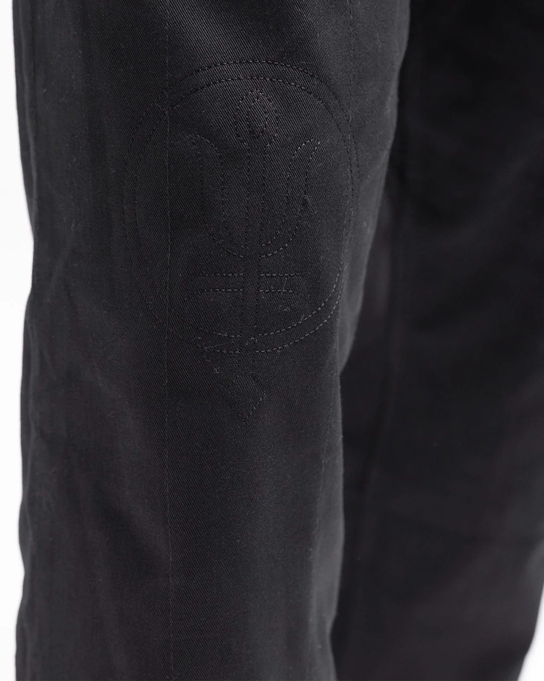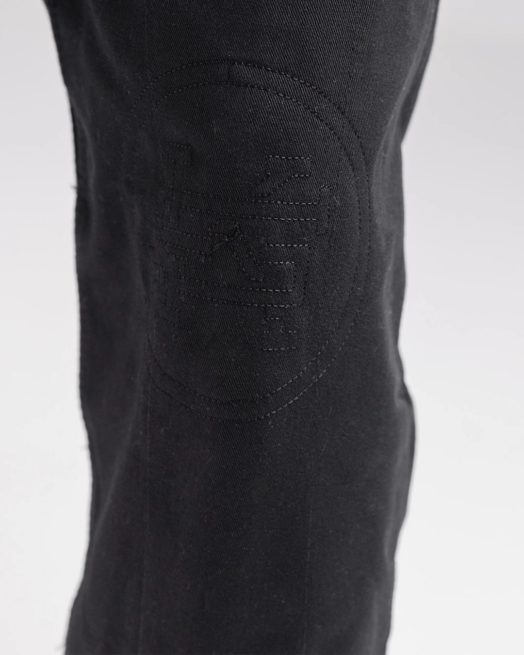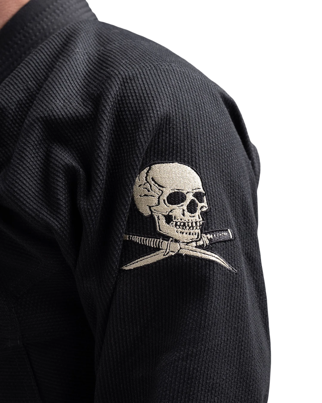 Scramble x ThruDark skull and crossed knives motif embroidered on both shoulders and back calf