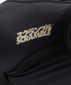 This long sleeved rashguard features subtle Scramble x ThruDark branding to the front and shoulder, with a bold, hand-drawn Scramble x ThruDark graphic on the back. The underarm panels are made from breathable mesh and feature the custom Scramble x Thrudark Tiger Camo pattern.