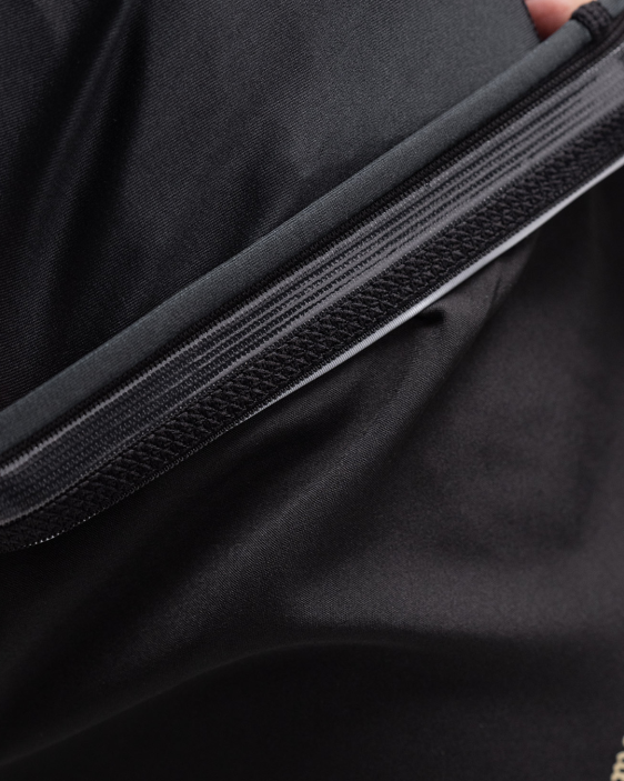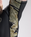 This short sleeved rashguard features subtle Scramble x ThruDark branding to the front and shoulder, with a bold, hand-drawn Scramble x ThruDark graphic on the back. The underarm panels are made from breathable mesh and feature the custom Scramble x Thrudark Tiger Camo pattern.