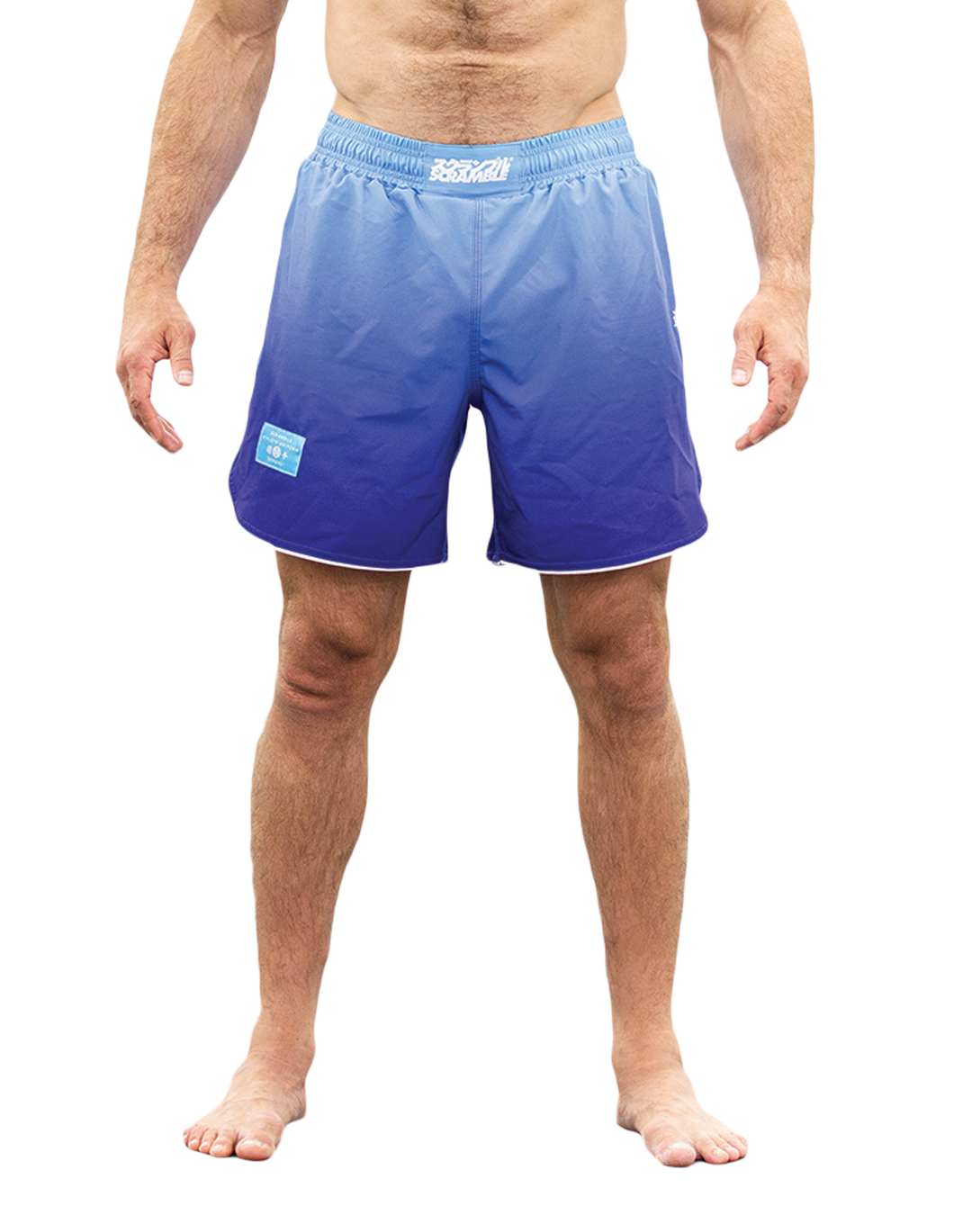 The new Senshu kit for the 2025 season. This kit has been tried and tested by the best jiujitsu and grappling athletes in the world on the biggest stages such as Polaris, ADCC and CJI. These grappling shorts are mid-thigh, a perfect balance of form and function. The light blue ombre colour scheme perfectly matches the rest of the Senshu no-gi kit. The shorts are finished with a bold white trim, and a woven Senshu patch. Features internal drawstring.