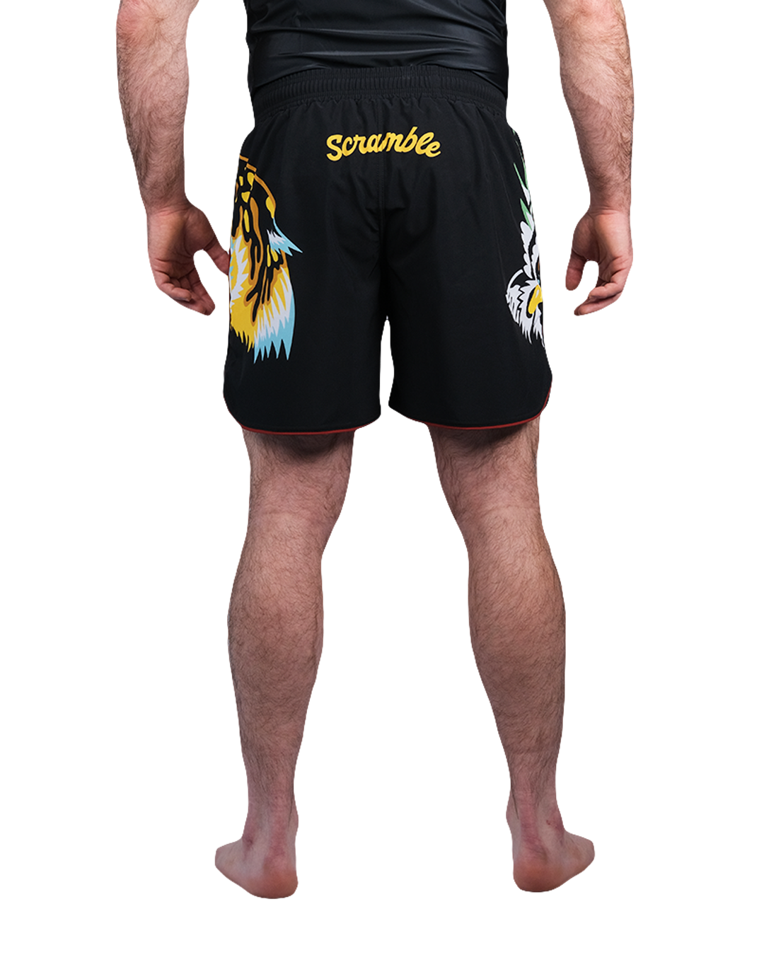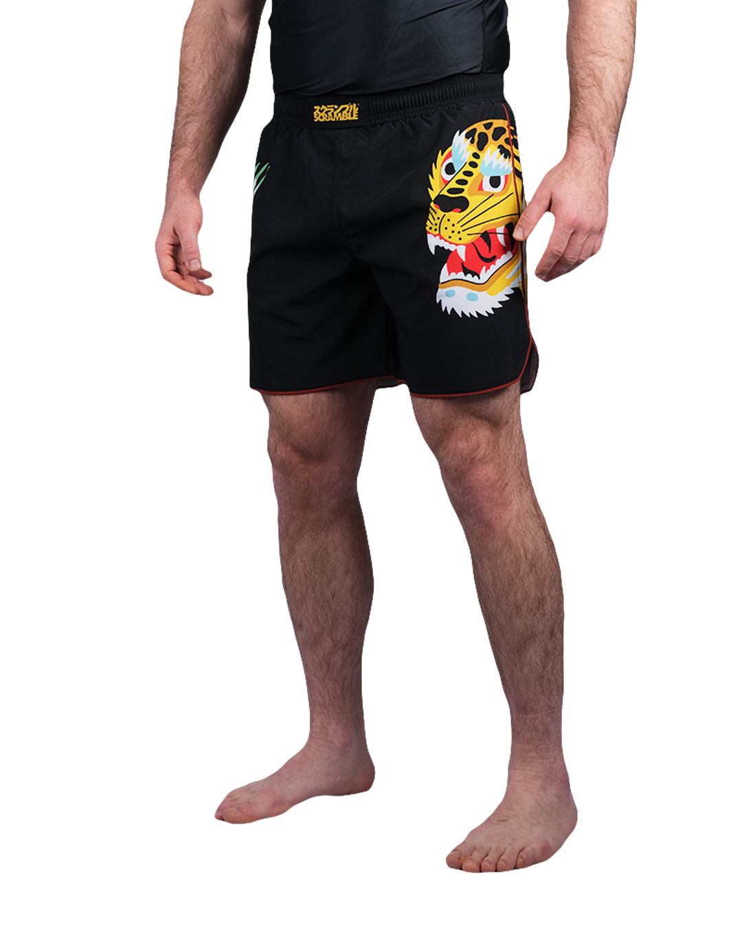 This bright, bold and colourful nogi grappling set features artwork from the talented Kieran Hoohar, a tattoo artist and jiujitsu enthusiast in London. The artwork is made up of firm favourites from tattoo illustrations in tiger and snake, jaguar, and eagle images, all done in Kieran’s signature style. The rashguards come in both long sleeved and short sleeved versions (long sleeved is a timed exclusive for the USA) and we also have grappling shorts and long spats (the grappling spats are a timed exclusive for the USA.)