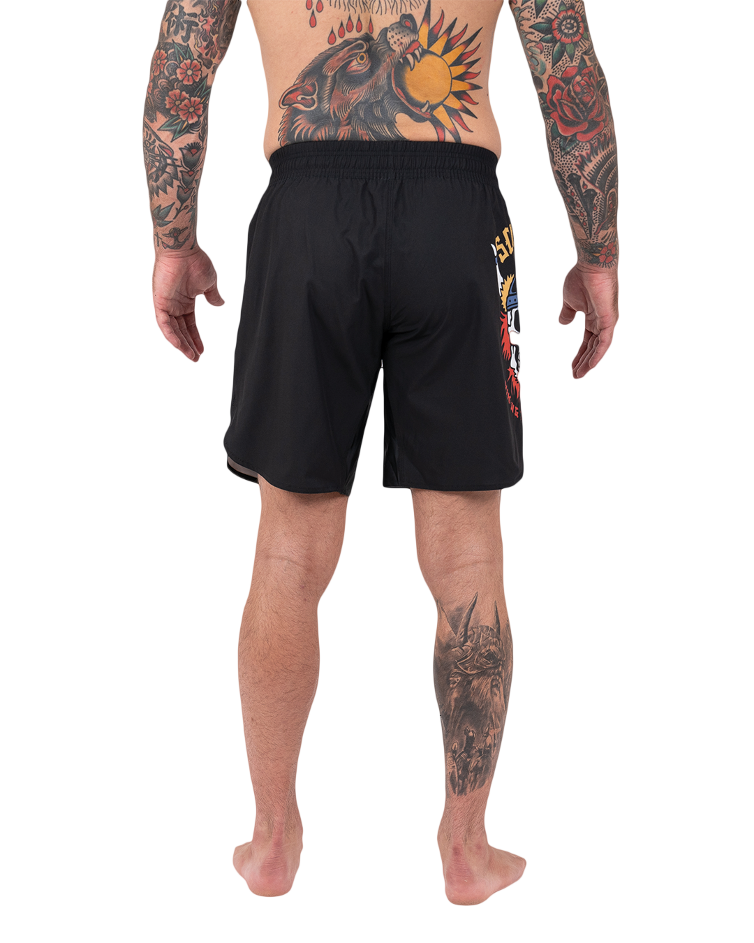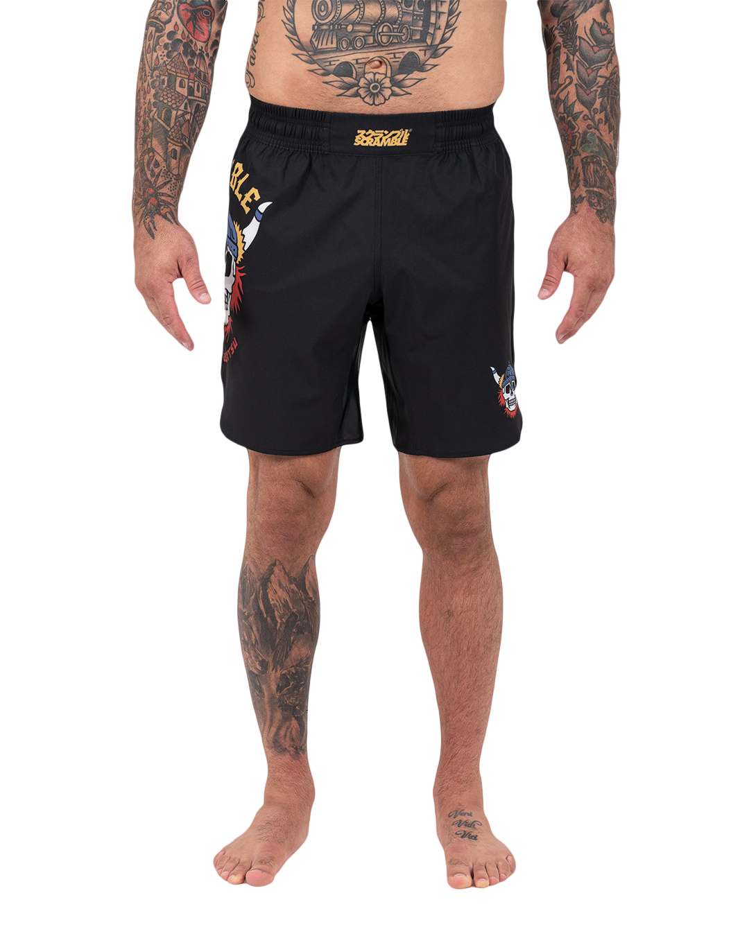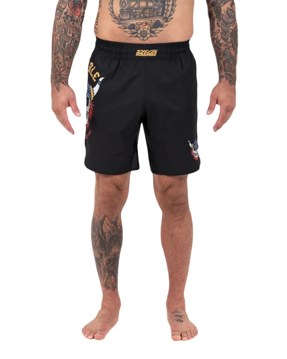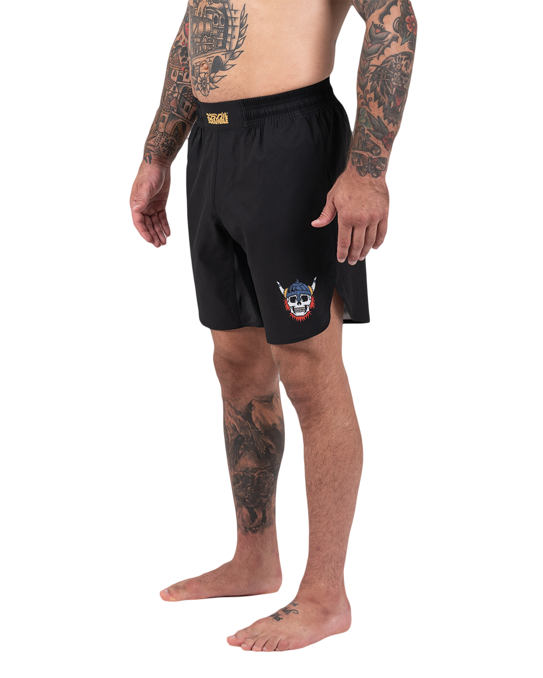 Using our much-loved and improved Base cut, these grappling / MMA / jiujitsu shorts have got a friggin badass viking on it. Look, you can wear this any way you please. Ironically? You are a wimp but you like vikings. Non-ironically? You are actually a viking and will pillage the heck out of your training partners. Post-ironically? You understand the irony of wearing an over the top viking tough guy no gi set as a pacifist, however, you buy it anyway because it’s flipping amazing. Also, Vikings are cool.