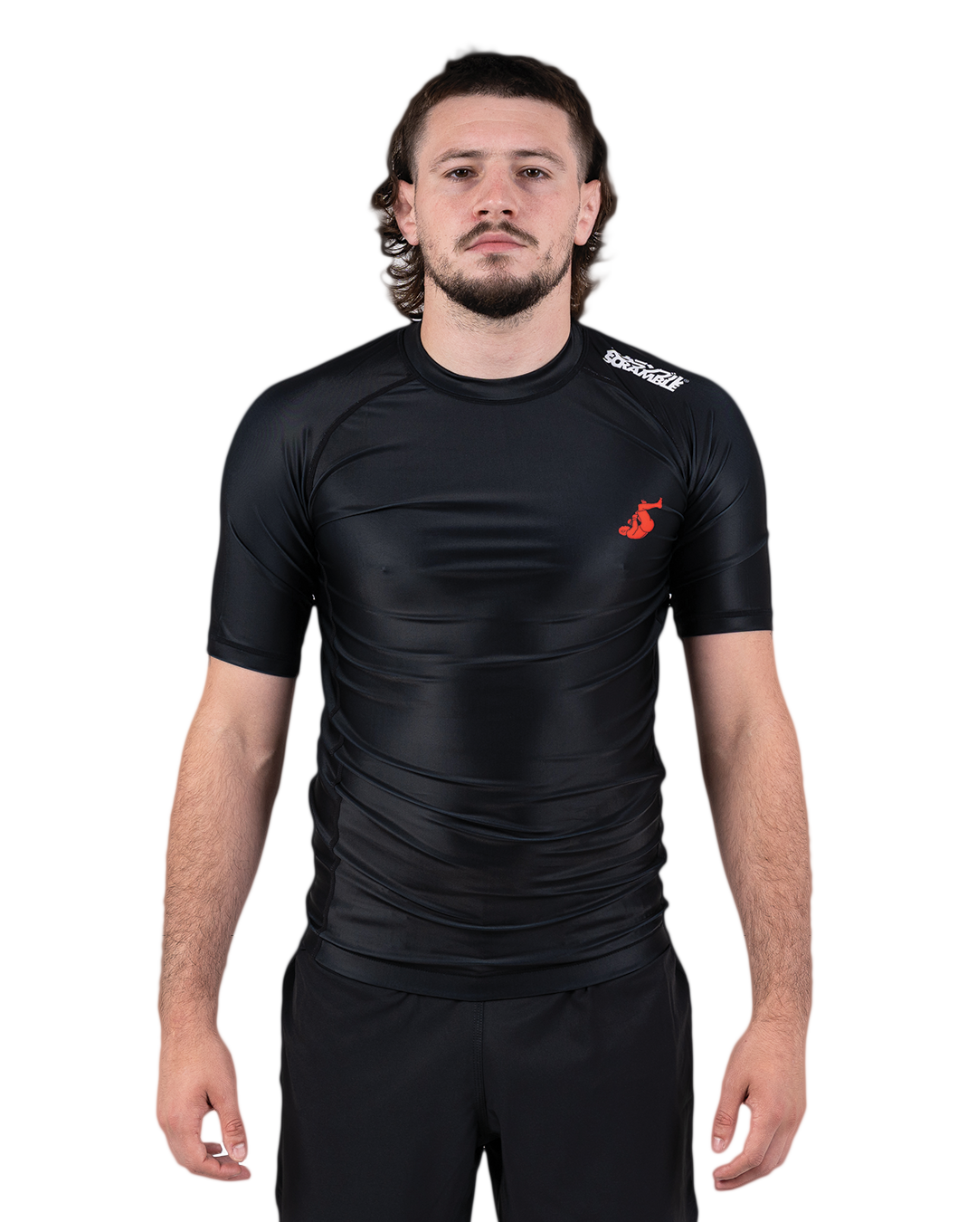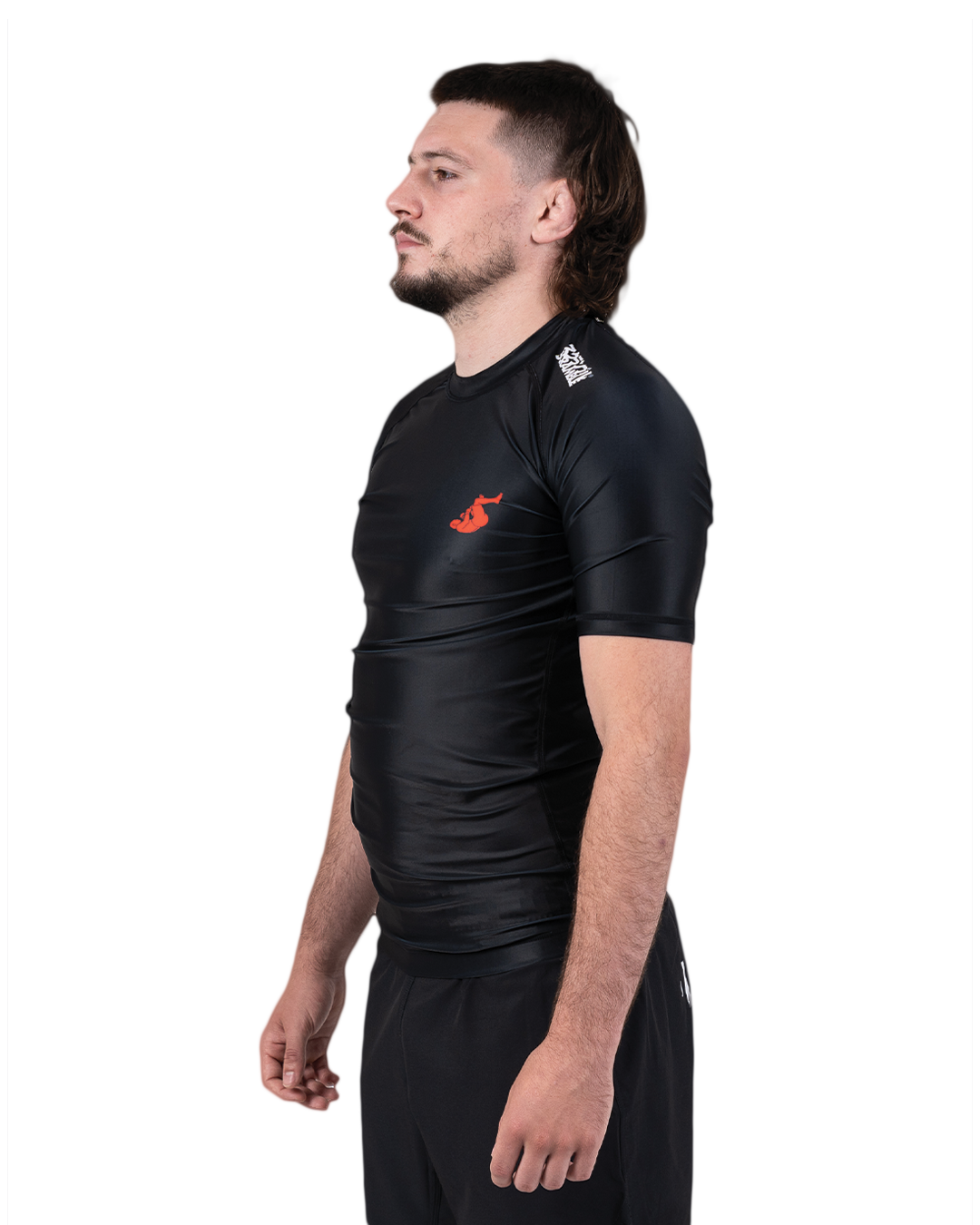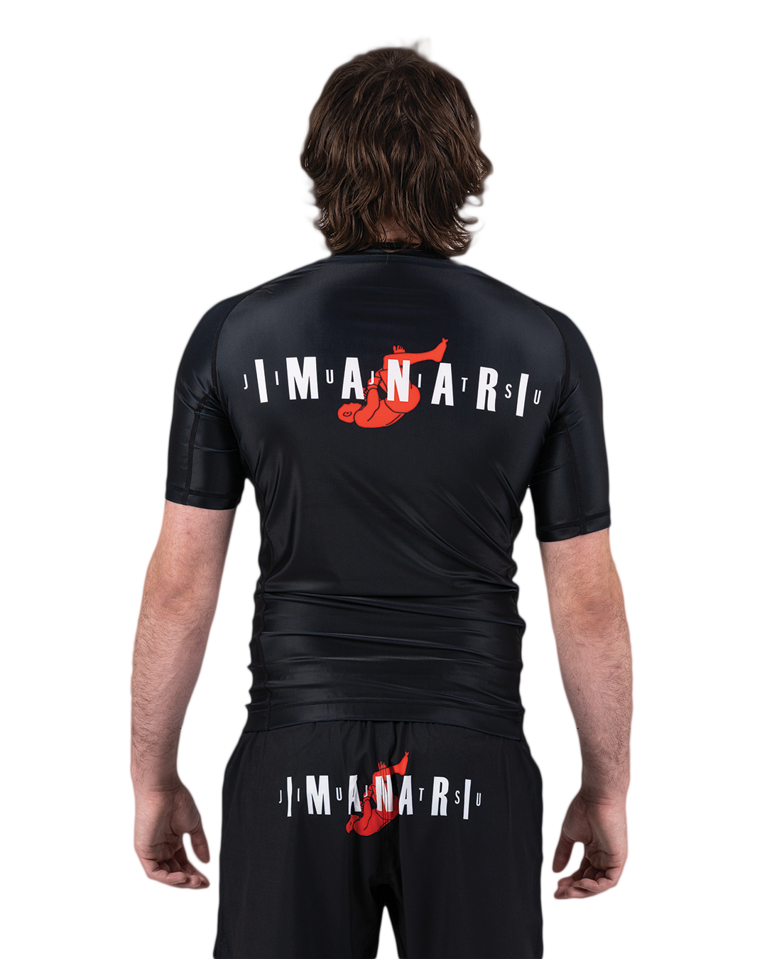 Imanari “Rollman” no gi set, designed in collaboration with Masakazu Imanari and sold only by Scramble and our authorised resellers, as well as at the Imanari Dojo in Tokyo. Featuring “rollman”, which is a little guy (Mr Imanari) caught mid-Imanari roll, probably on his way to lacerate some poor unsuspecting fool’s ligaments.