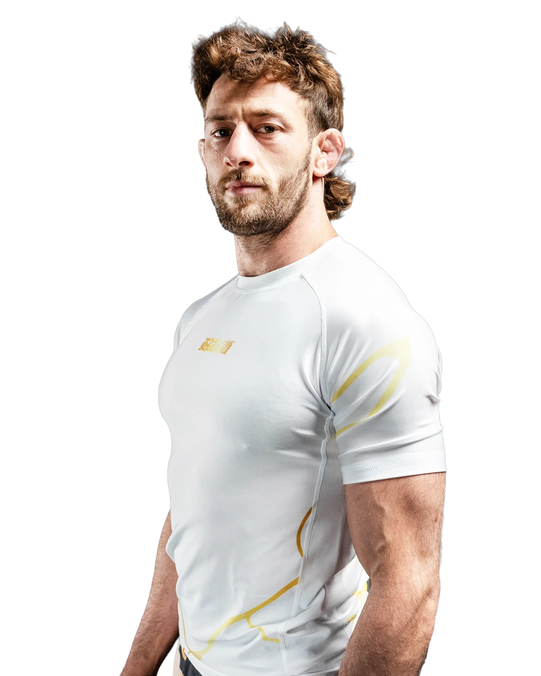 Kintsugi Rashguard in white and gold. During our social media campaign about this product, a lot of our fans really resonated with this concept and we are very excited for you all to be wearing it.