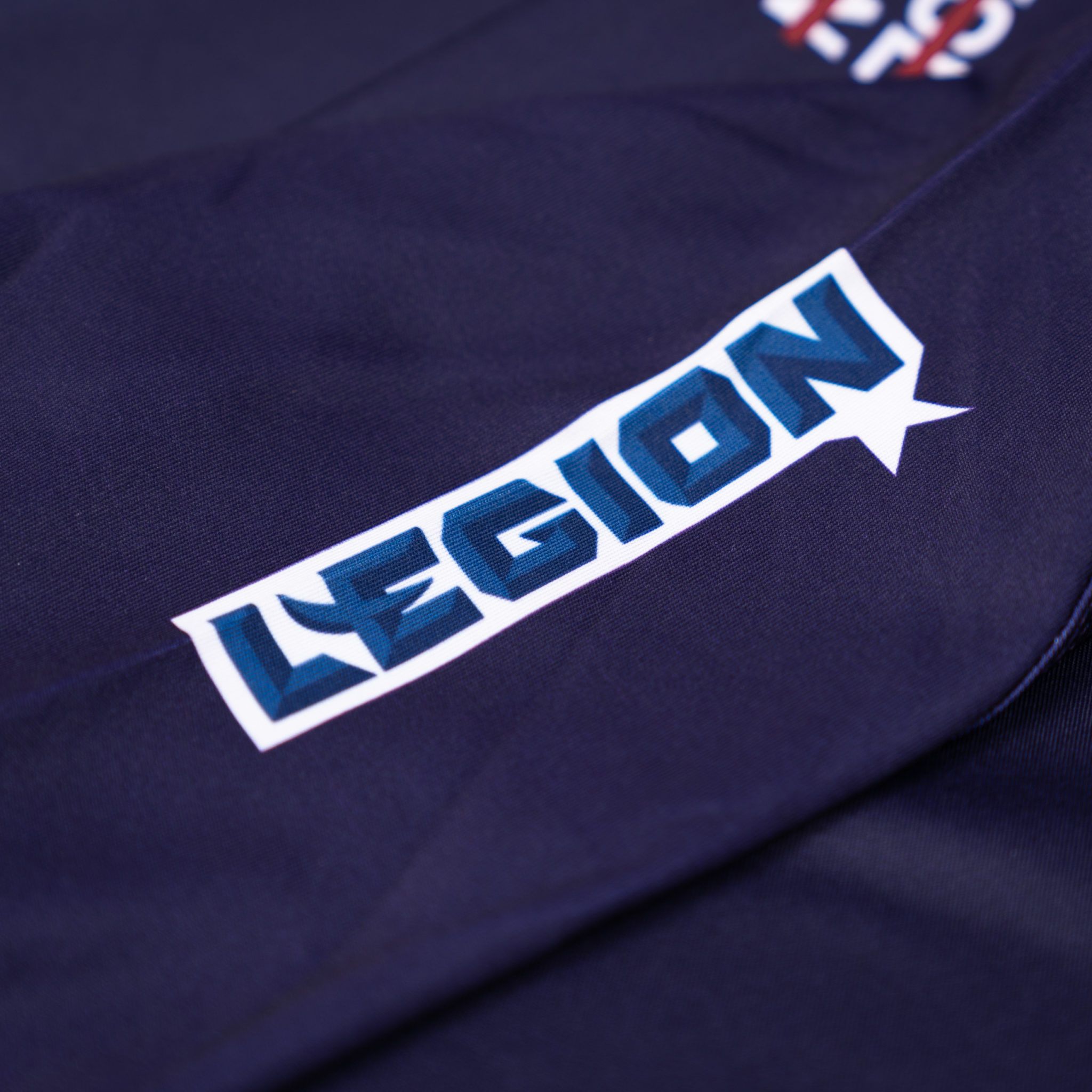 This rashguard features the Legion logotype given the full Scramble style treatment.