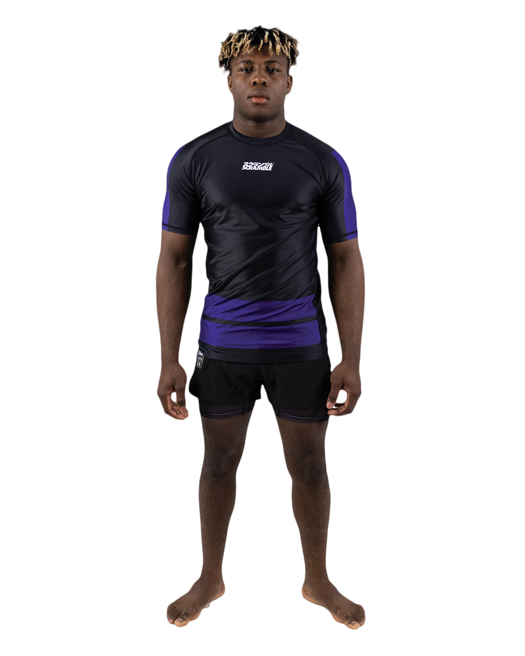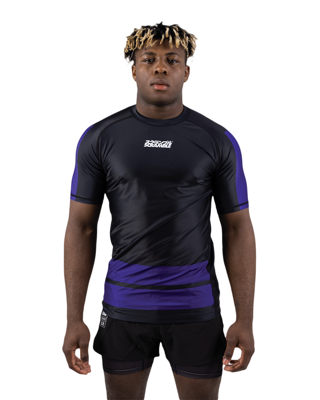 Our ranked rashguards follow all IBJJF guidelines for rank colour rashguards, featuring accents in the belt rank that make up the required percentage to compete in IBJJF competition, or simply to train and compete in no gi jiujitsu with attire based on your rank. The rashguards are made with a superior polyester blend that reduces pilling, as well as high quality stitching and panels that move with your body.