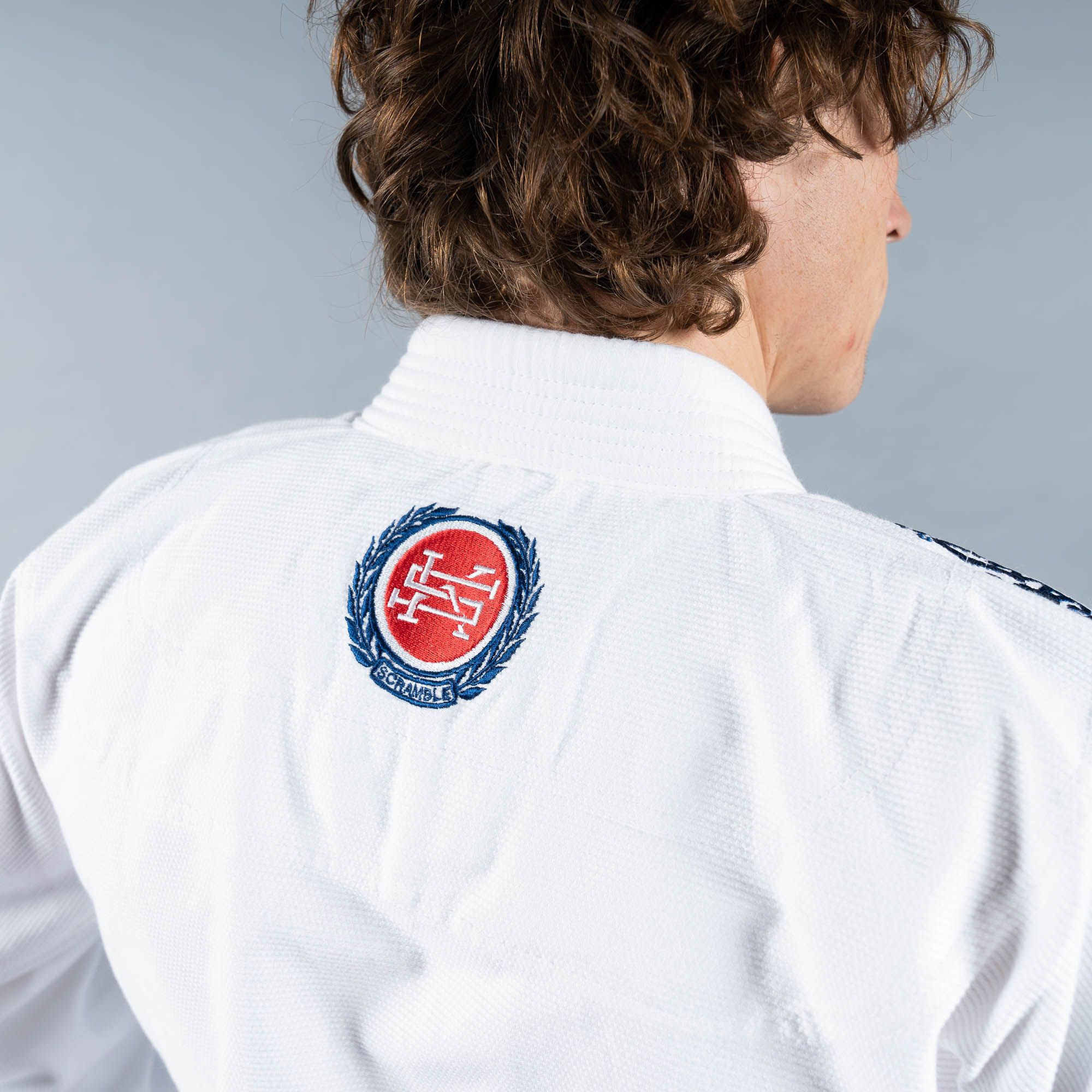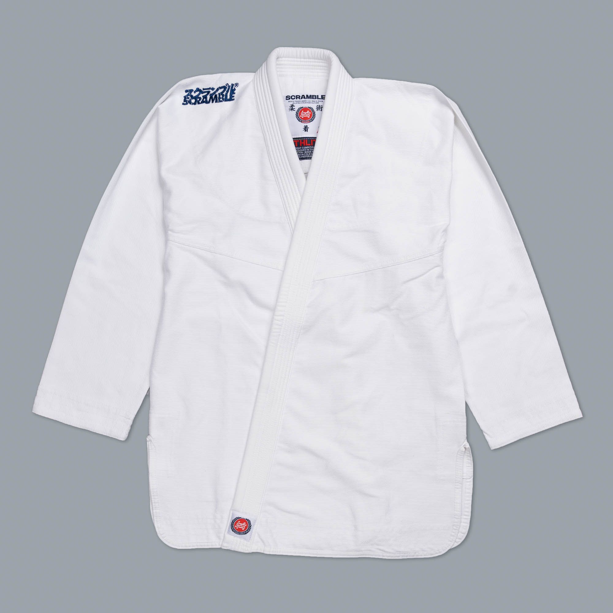 The Athlete is Scramble’s flagship jiujitsu gi, that sits at the top of our range. Over the years we have refined the fit and cut and the aesthetic, and the result is a clean, well fitting gi. Most sizes are tailored towards a more athletic cut, hence the name. There are three levels of Scramble’s Athlete: The lightweight, competitor-focused version, the midweight all-around version, and the pro collectors edition.