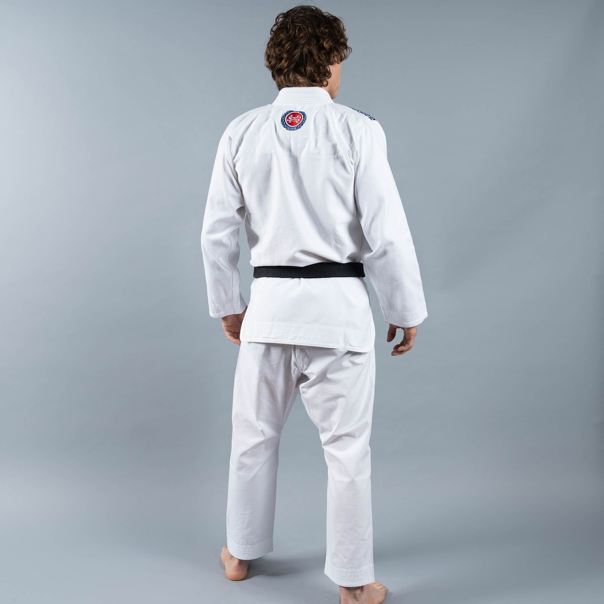 This is the Athlite, created with the serious competitor in mind, with minimal logo details and a light but strong construction. The 350 / 8 combination of top and bottom should allow an easier weight cut. As the gi is considerably lighter and thinner than the other models, this gi is not recommended for daily training as it will wear out and shrink at a slightly higher rate than the more robust versions of the Athlete.