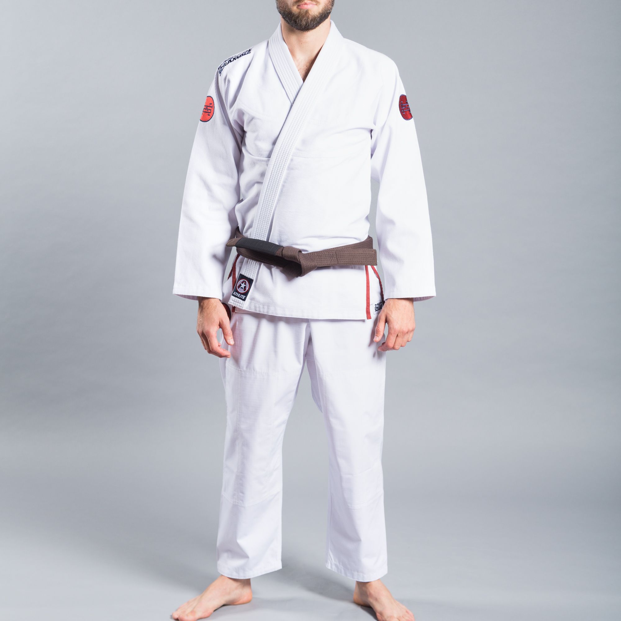 Scramble’s Ultralight Competition Kimono. Lightweight 350gsm pearl weave top and 250gsm ripstop pants. Giving you an extra 500 grams breathing room compared to our Athlete 3, the Athlite ensures that you can enter competition safe in the knowledge that didn’t need to starve yourself to make weight. Because who doesn’t love hamburgers? Vegans? Yeah true. But they can still wear this gi. It’s vegan.