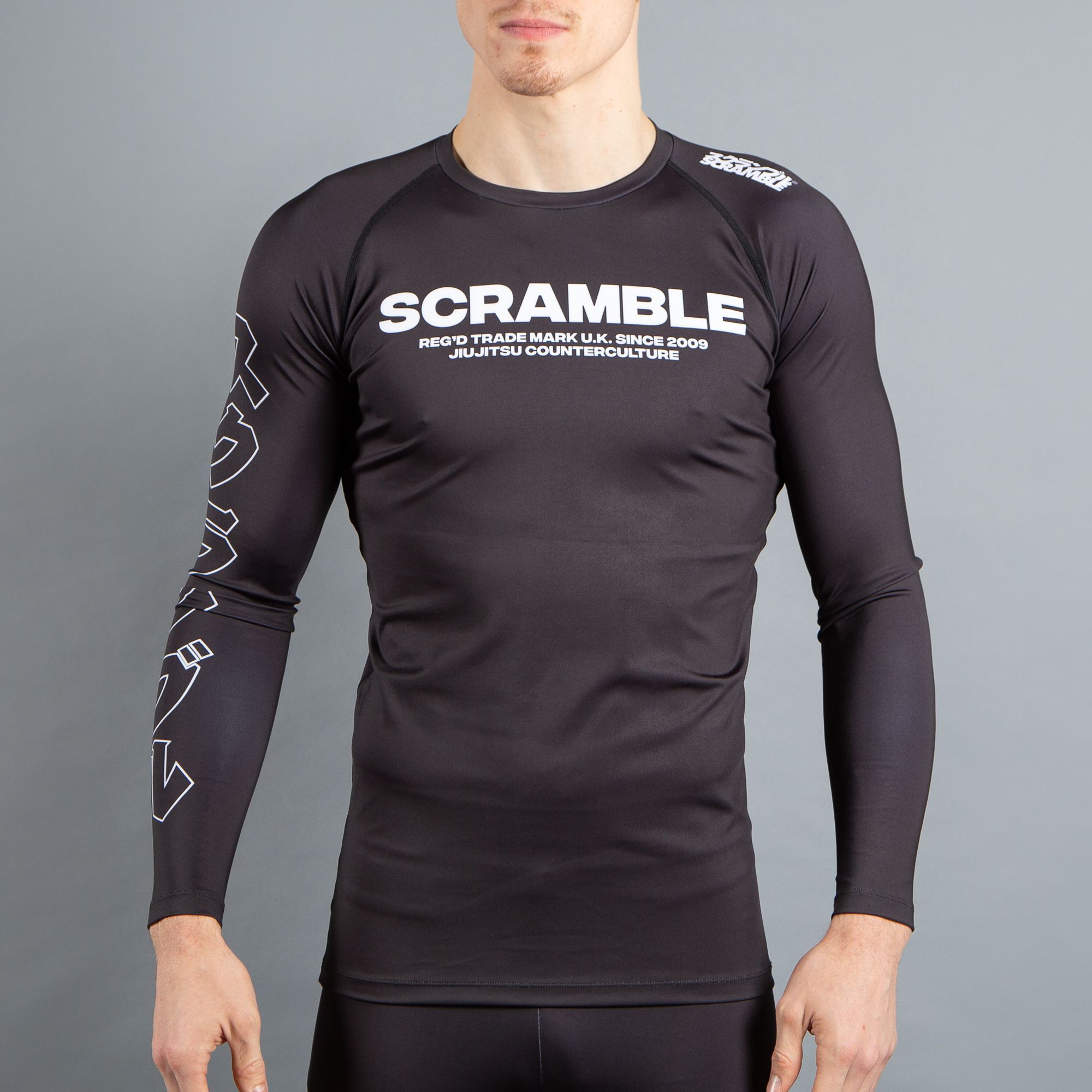 This is a black rashguard with fully sublimated graphics and long sleeves. Reminder that the sizing on these fits for “compression” so if you were between sizes on our other rashguards or are not looking for a compression fit, then order a size up.