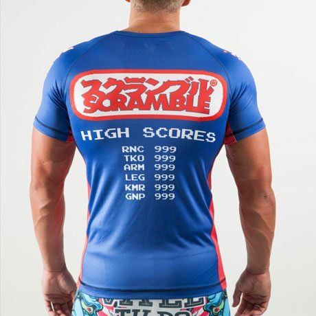 Tech stuff – this rashguard is made of 80% polyester 20% elastane. It has short sleeves so you can show off your gaming guns, and wearing it makes you 10 times more likely to beat your PB at Pacman.