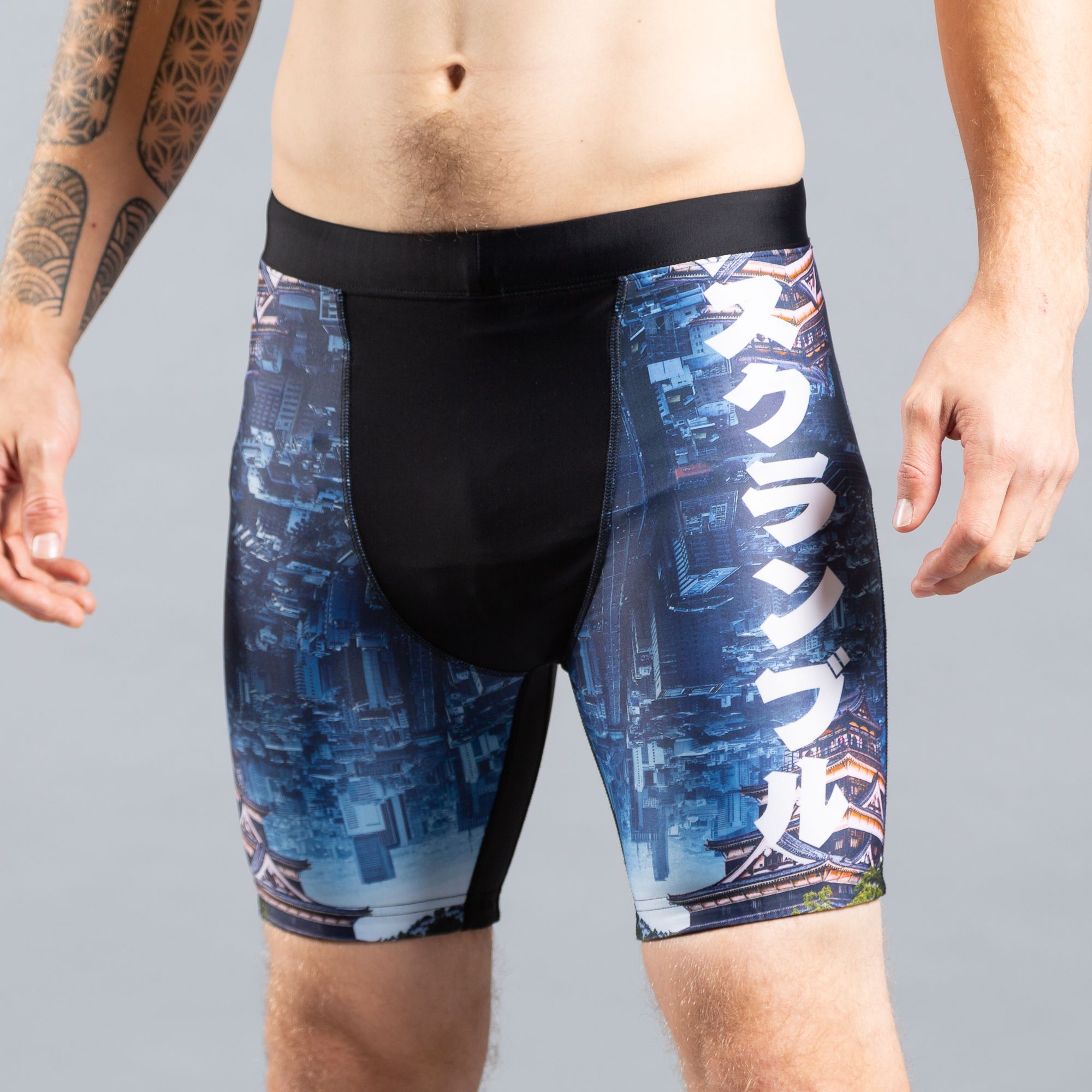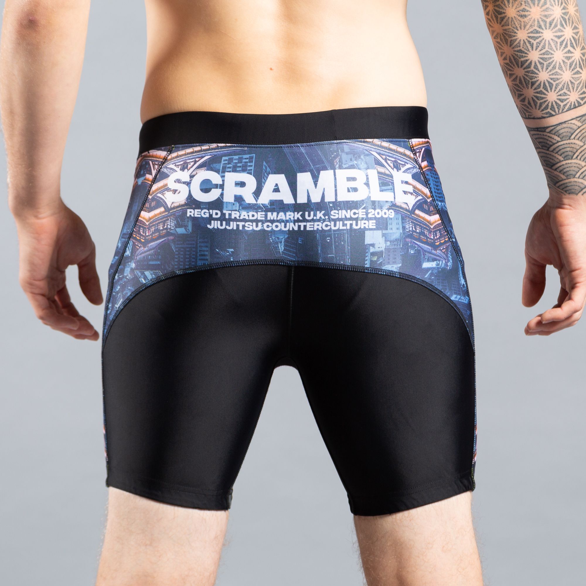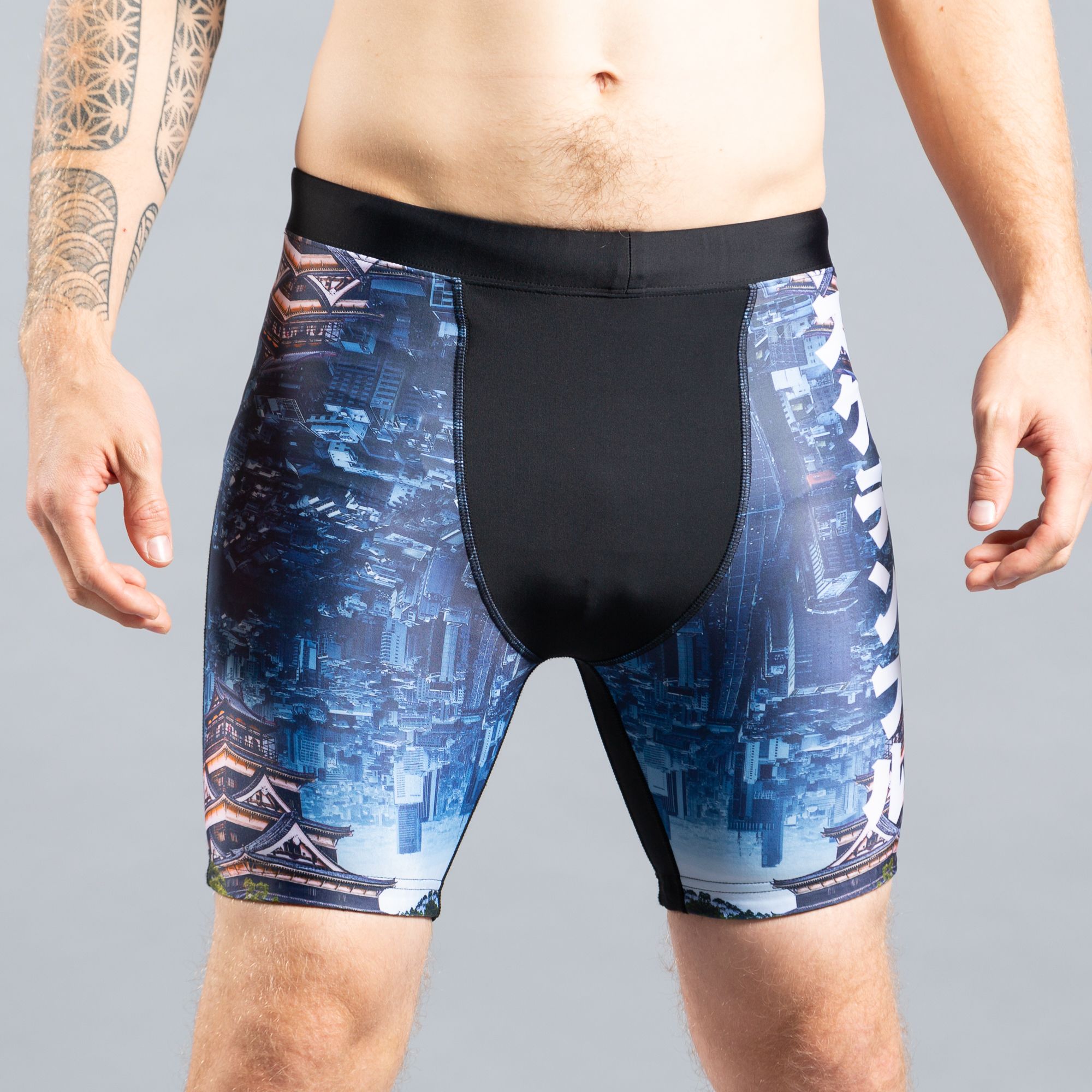 These are knee length VT shorts, or if you prefer, short spats. Multi-panel construction provides comfortable compression and keeps everything in place during rolling. The cuffs feature subtle rubberised inners ensure the shorts stay in place once worn. Features hints of the EDO design from our EDO series of rashguards and spats.