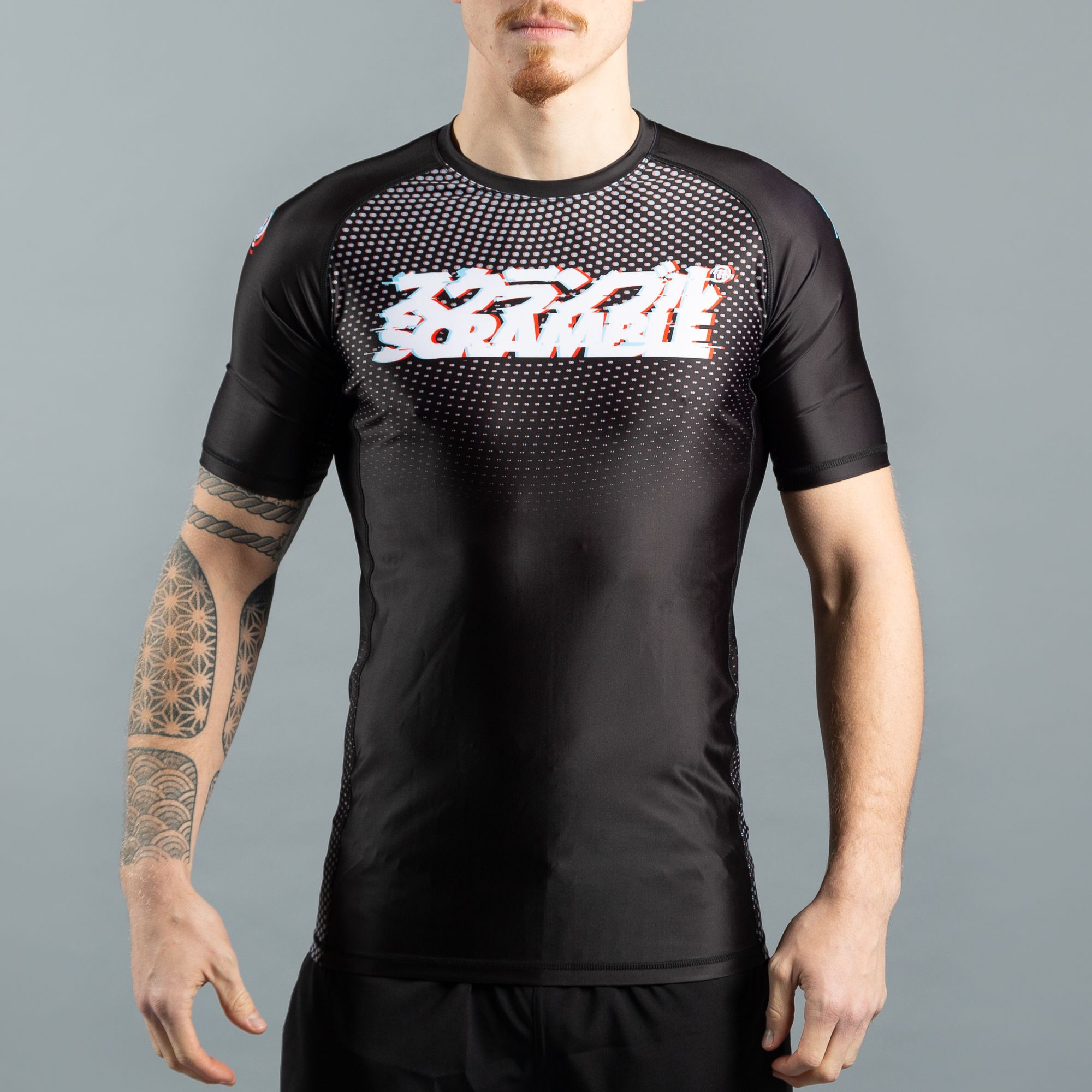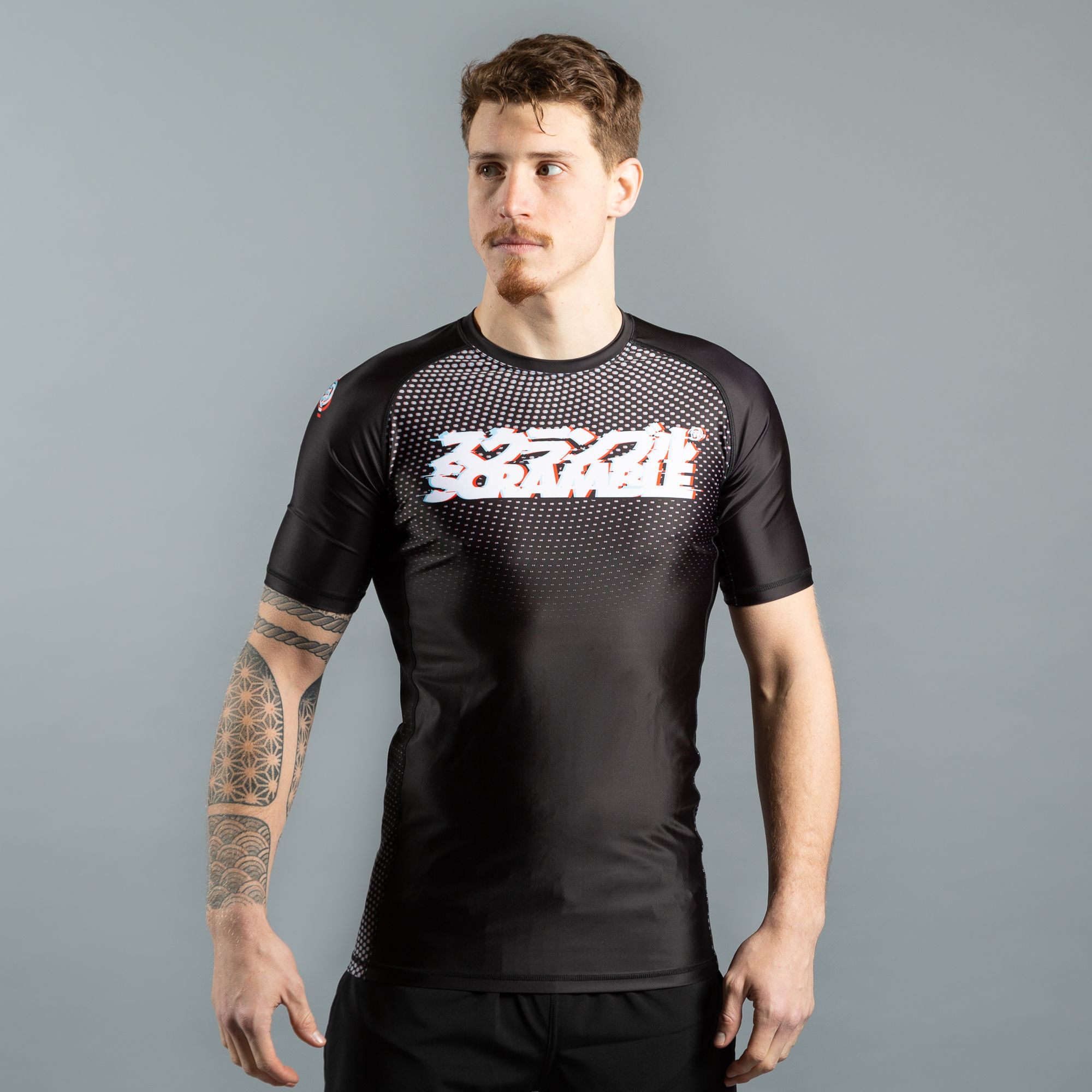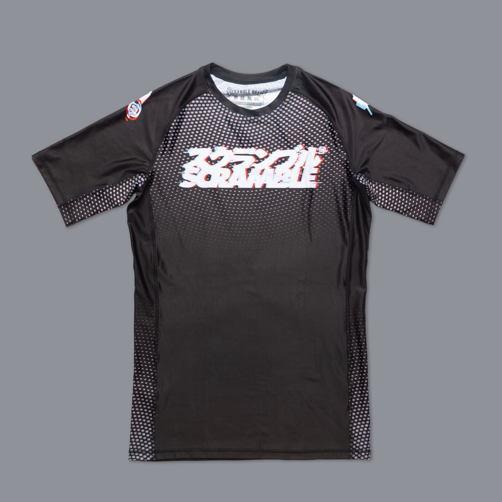 The Scramble glitch logo. Suitable for daily training in no gi, under the gi in regular jiu jitsu, the gym, yoga or standing on one (or two) legs.