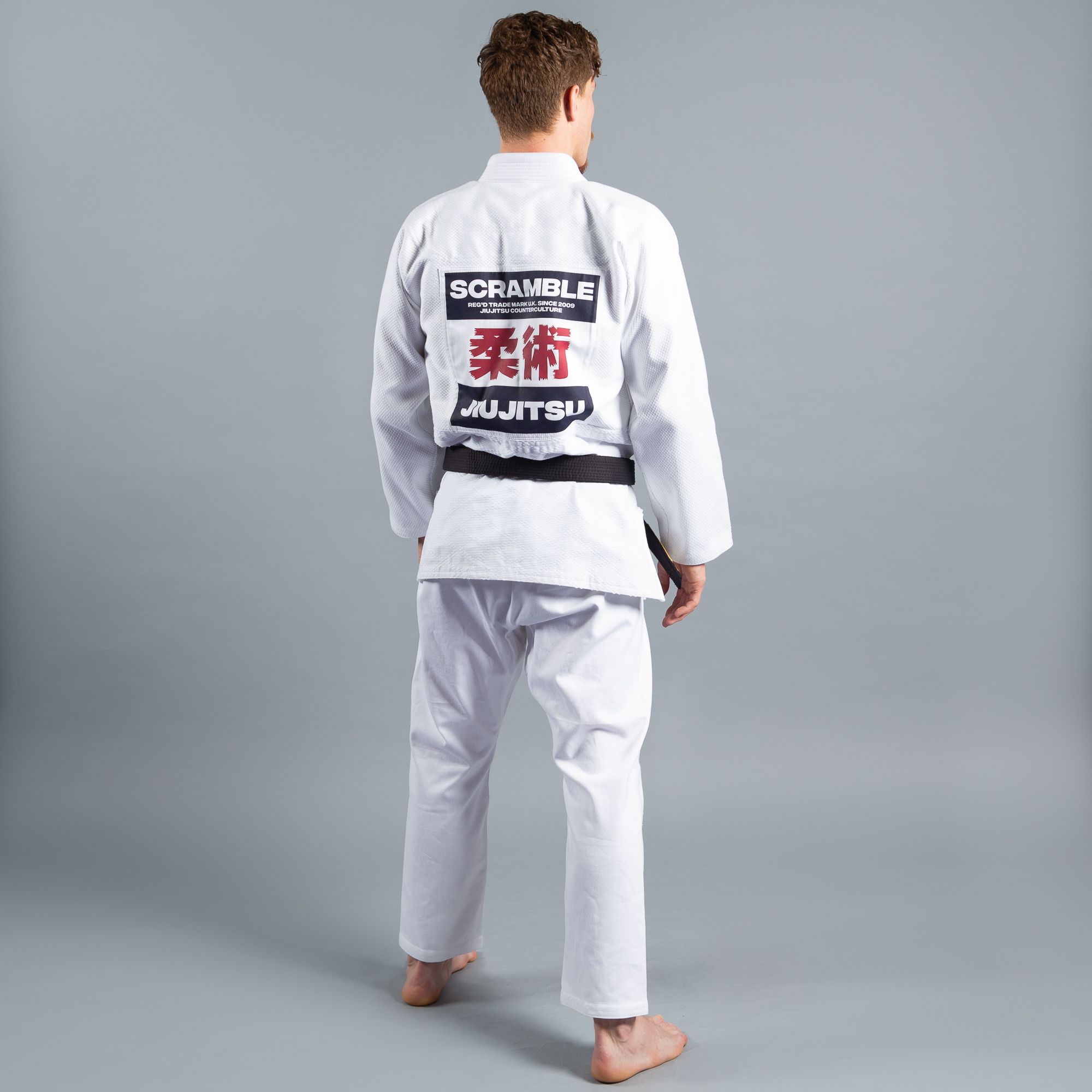 The Kano Gi by Scramble is designed to commemorate jiujitsu’s roots in judo. The name is inspired by Kanō Jigorō , the founder of judo. His way of thinking strongly impacted combat sports, removing the so-called deadly techniques in favour of sporting techniques, and thus greatly improving the efficacy of those techniques by allowing the fighter to become an athlete and train as hard as possible. His team of judo experts famously defeated the previous generation of traditional jiujitsu athletes, despite having what appeared to be a more limited set of techniques. The key was that those ‘less deadly’ techniques were honed to such a high degree that they were much more effective than the deadly techniques of jiujitsu, which were hard to practice properly.