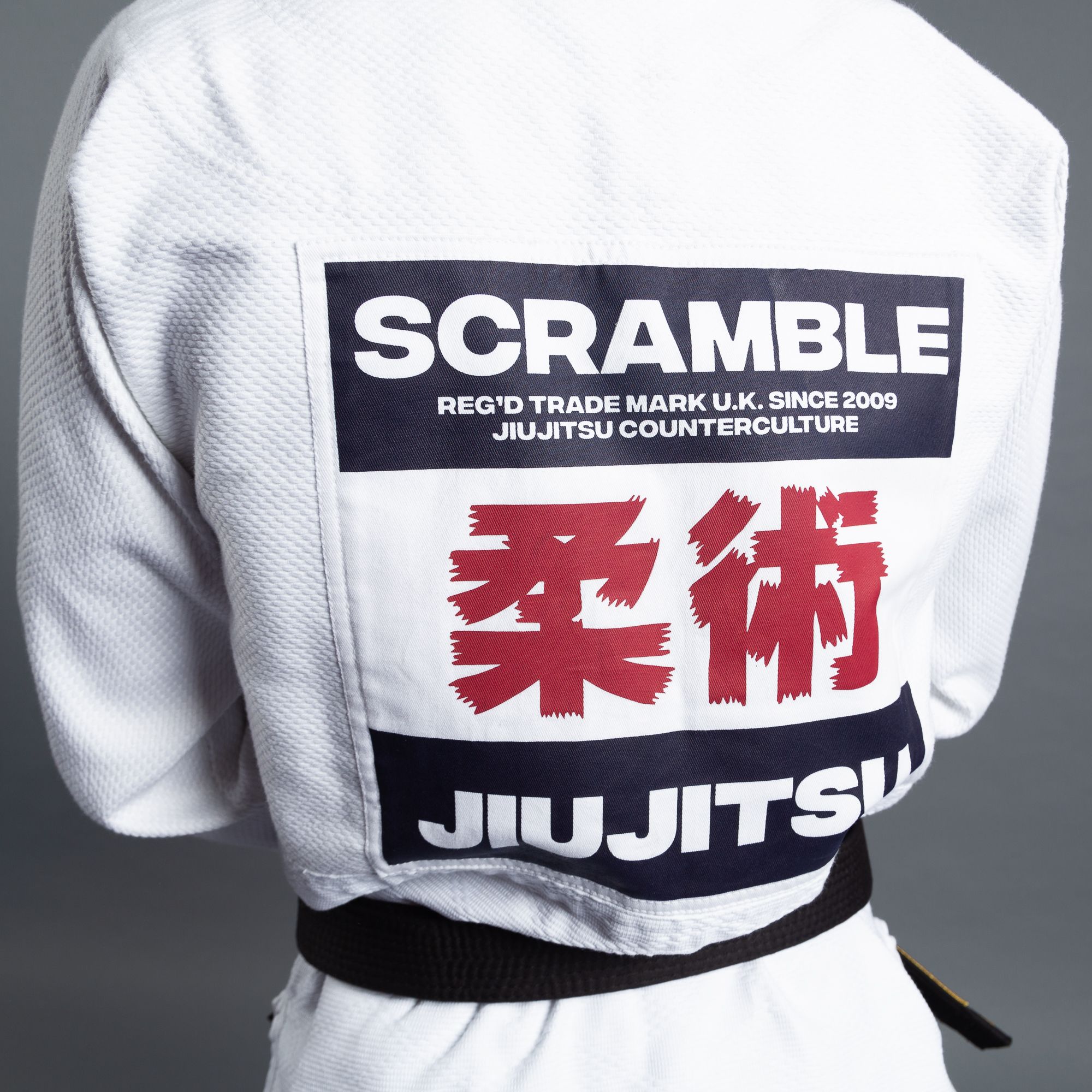 The gi is a jiujitsu gi, make no mistake. The cut, fit and feel is the Scramble gi that you are familiar with, but it has nods to judo. Firstly in the traditional construction, with a sashiko weave panel around the skirt, which is a staple of a judo gi. There is also the large printed back patch, designed in the style of judo back patches. This back patch is screen printed and designed to gently fade with each wash, giving the gi a worn-in look the more it is, well, worn in. The gi is also understated in its design, allowing the story of the gi and the subtle details to speak for themselves, in the stoic judo style.