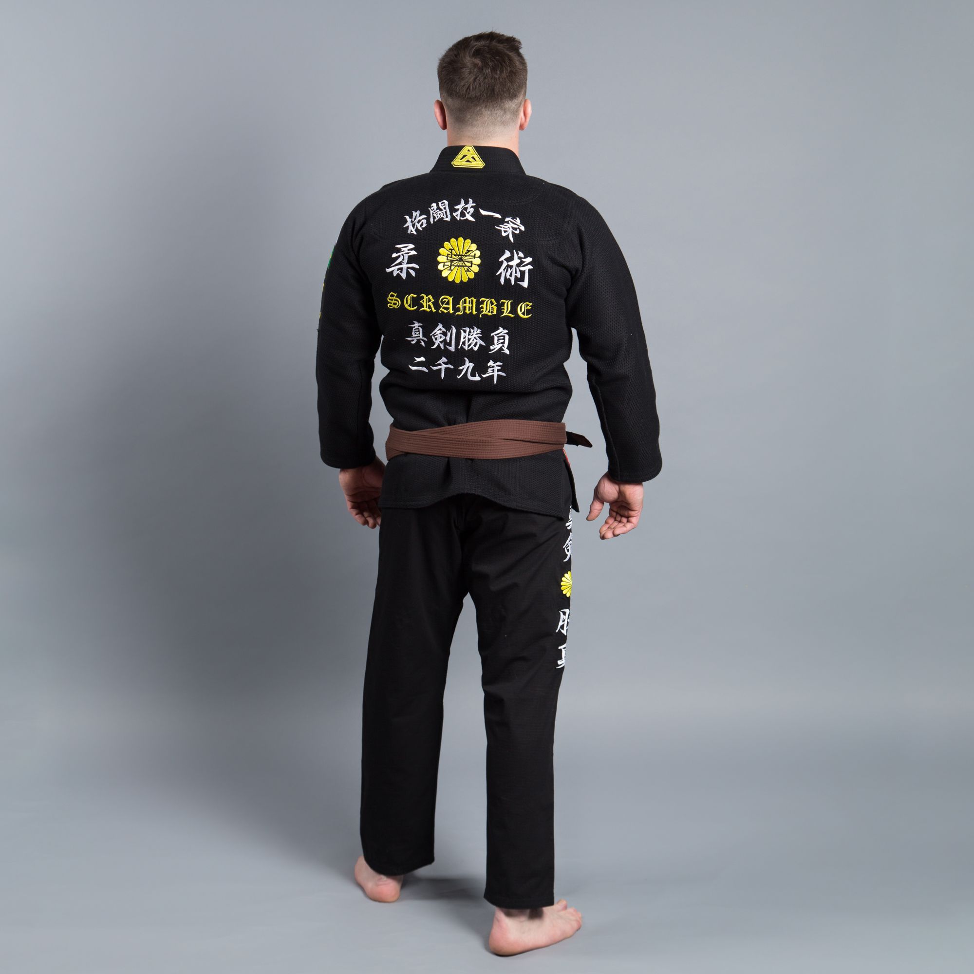 *Note the back embroidery may differ slightly from the image shown of the model wearing the gi, and the model shows ripstop pants but production model is cotton twill.