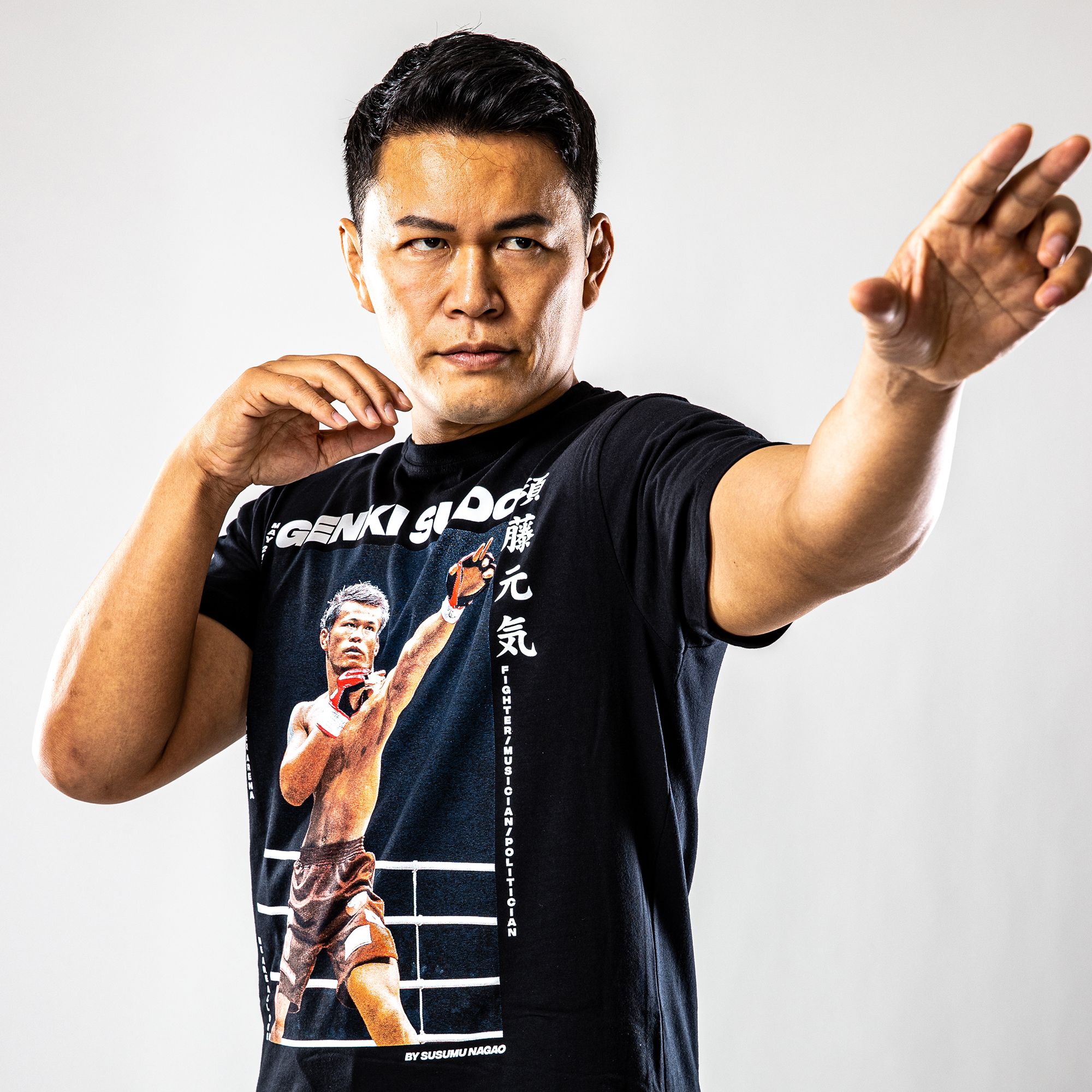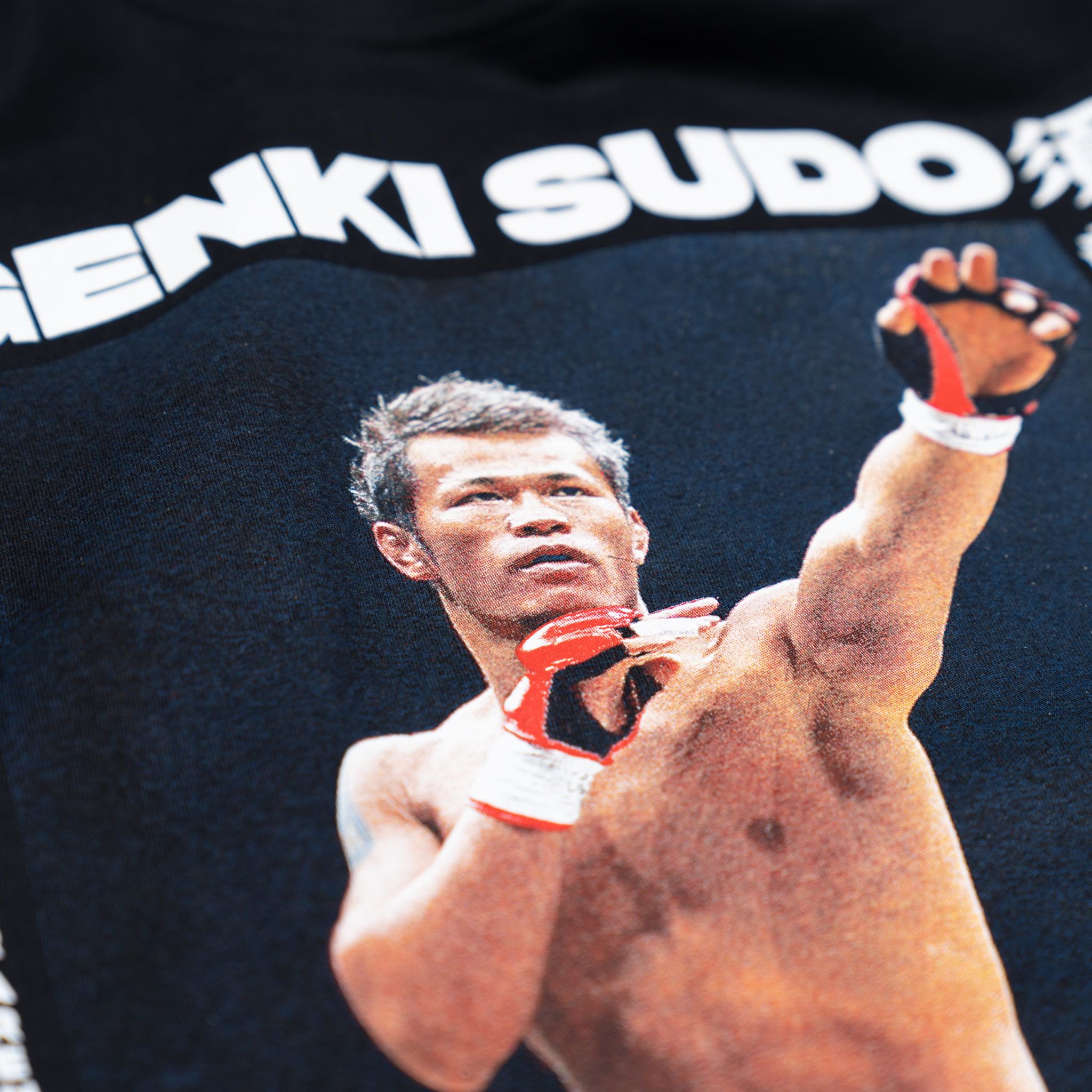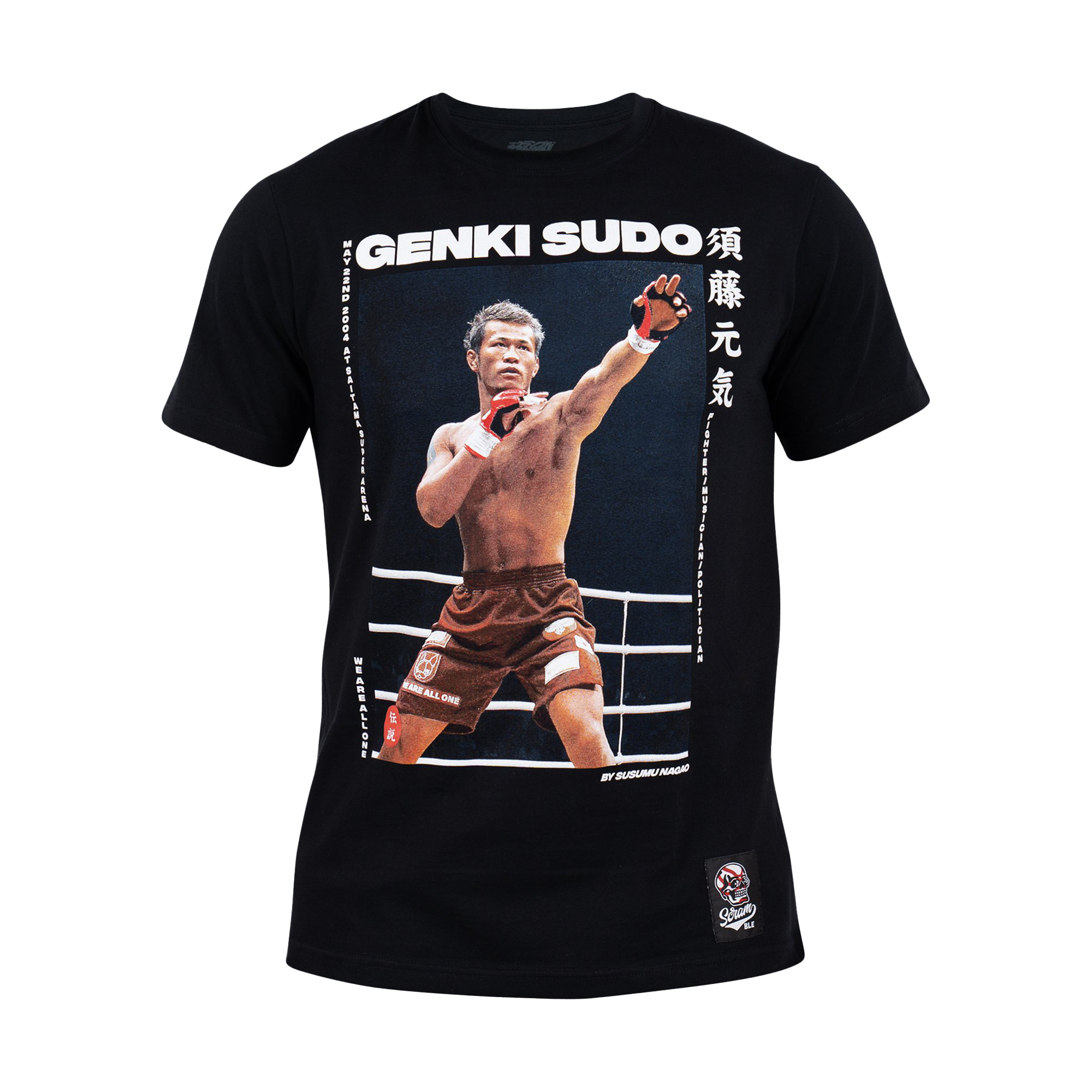 This t-shirt celebrates Genki Sudo, a Japanese mixed martial artist who earned millions of fans worldwide not only for his fighting prowess but also his unique, iconic ring entrances and his flamboyant, original style. Many true original grappling fans remember the video of Genki crashing an early tournament in California and submitting all comers with his signature style. Since retiring from MMA, Sudo has in turn been a musician and professional dancer with his group World Order, a successful order, and now a politician. A true renaissance man and a genuine icon for creativity.