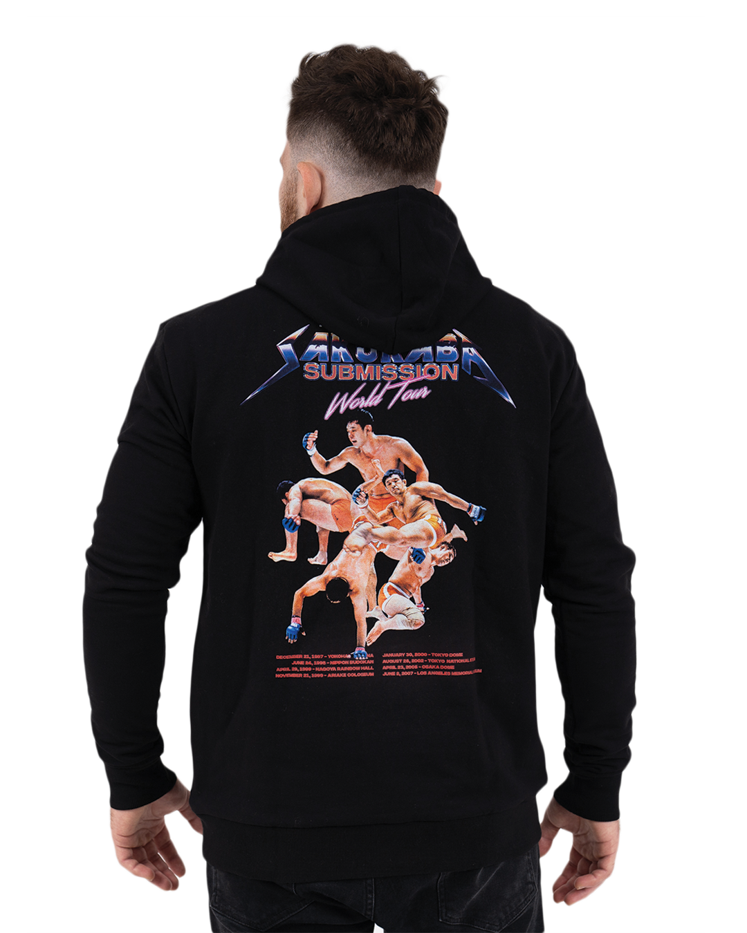 Our collaboration with the living legend that is Kazushi Sakuraba, arguably the greatest MMA fighter of all time. This design features a combination of the MMA photographer GOAT Susumu Nagao’s classic Saku action shots clustered together, reminiscent of a heavy metal tour t-shirt from the 90s, complete with a list of “tour stops” around Japan that signify important matches and locations throughout Sakuraba’s career. The front features Saku’s classic KS logo design.