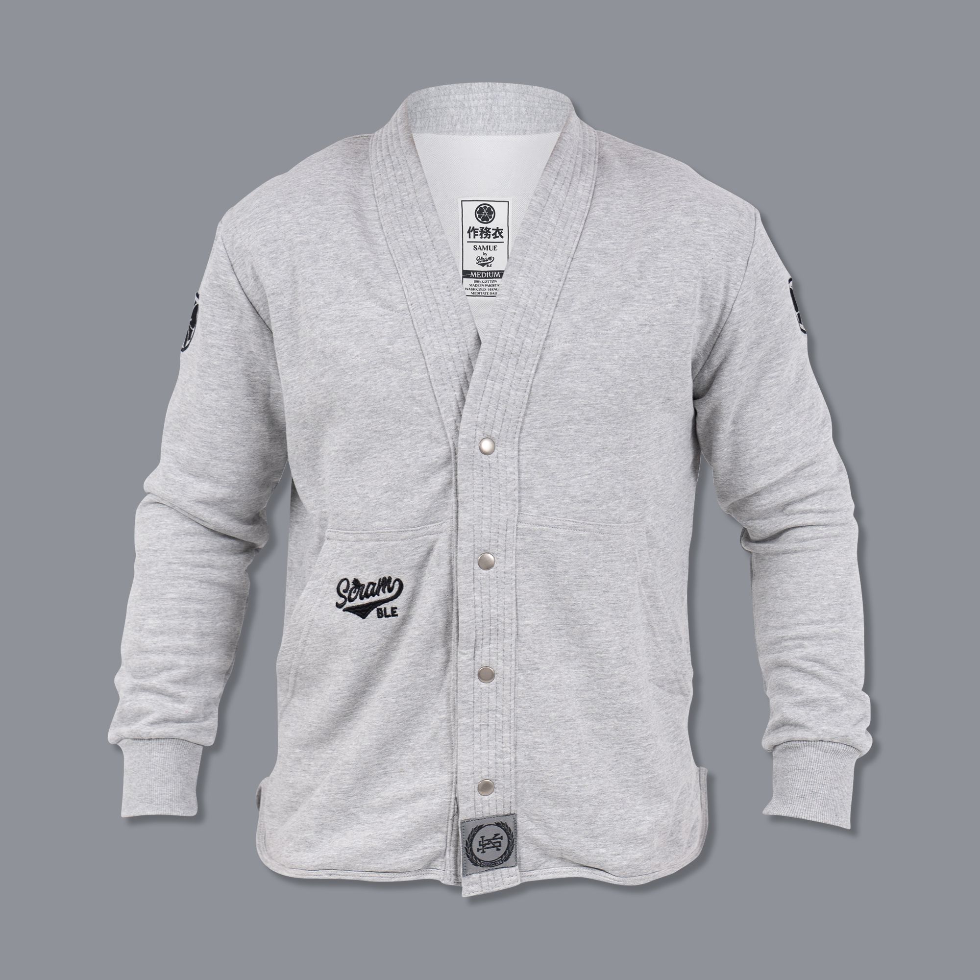 The Samue is a type of jacket used by Zen temple monks as they’d go about their chores. We took that as inspiration and added features from our jiujitsu gis (the rounded hems, the stitch lines across the chest and back) to create a unique jacket – some might say a cardigan – that is ideal for lounging around at home or pre-post training. Or, you know, for sweeping up leaves with a broomstick at your local temple.