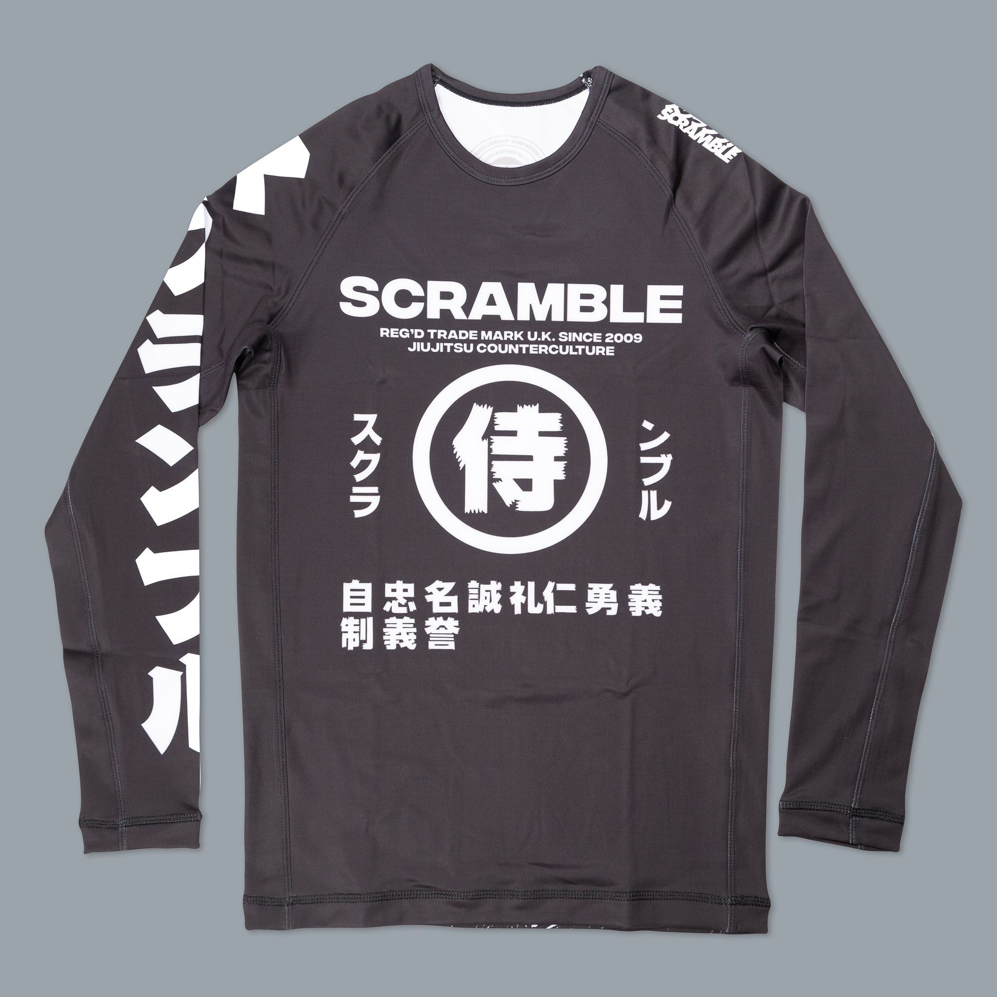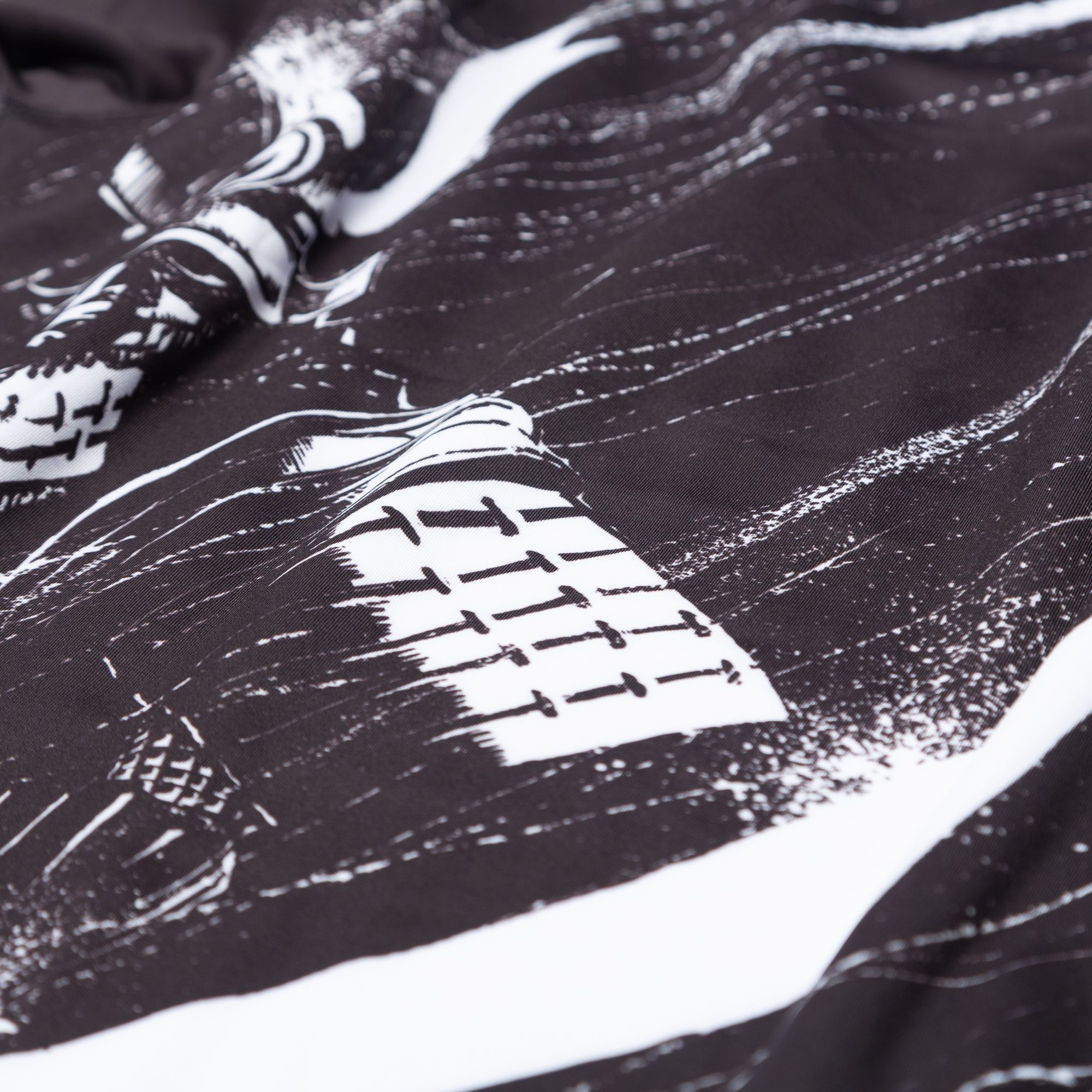 The Shadows rashguard was one of our best-selling rashguards of all time; we couldn’t get restocks in fast enough. After being retired for a few years, we decided in our 10th anniversary year to revisit the design and re-imagine in on our improved rashguard models and with a clean front panel. The kanji front and centre says “samurai” and the tenets of bushido are referenced. The art was hand-drawn by our friend, Bong Abad.