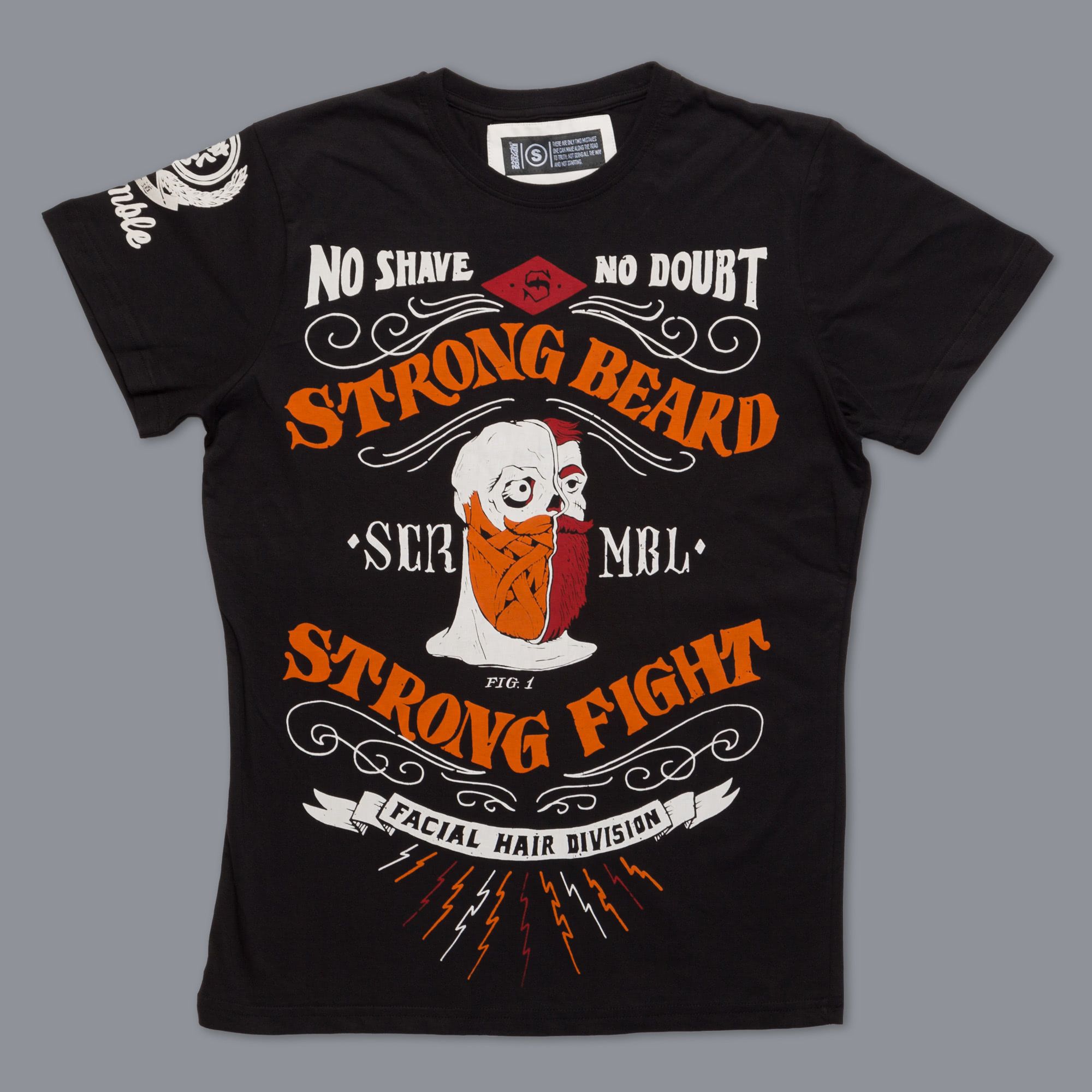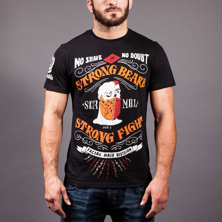 Strong Beard V2: Beard Stronger features soft print on lightweight black 100% cotton tee and comes infused with the power of approximately 10 medium-length beards. Use with great caution and if you see someone else with the same t-shirt you may nod and acknowledge them but do not stand too close to them. (Think “crossing the streams” in Ghostbusters.)