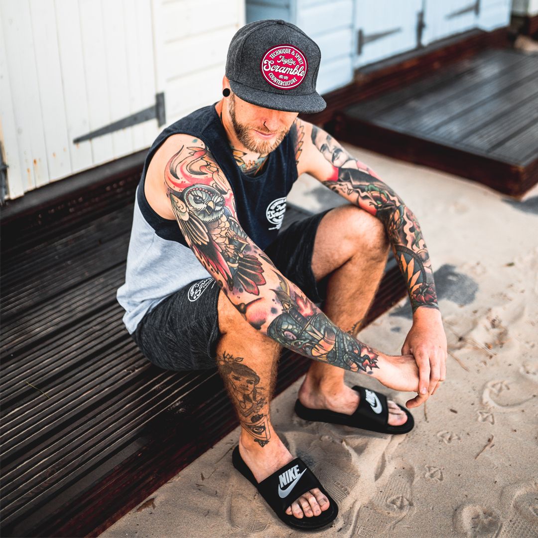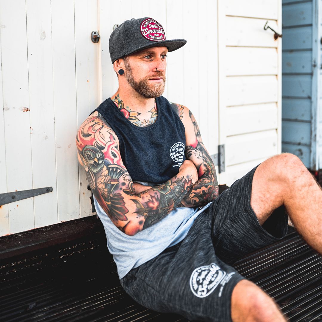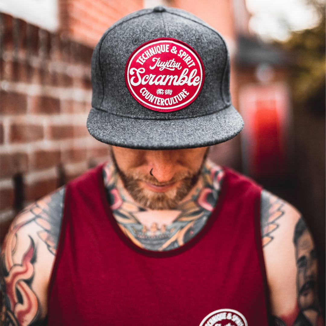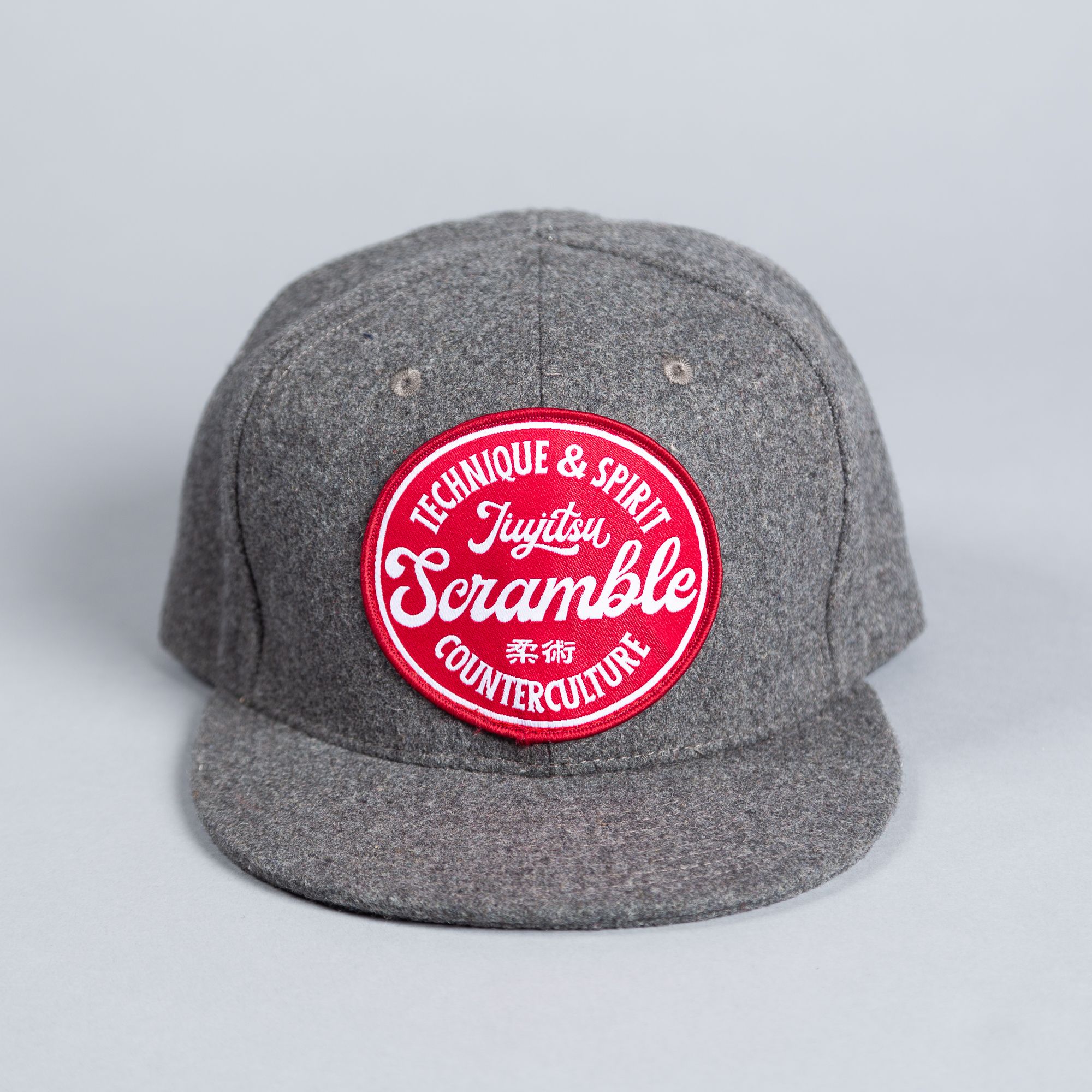 Our Technique & Spirit flat peak cap in grey features our Technique & Spirit patch design in high definition embroidery, sewn onto the front of a premium quality acrylic wool cap.