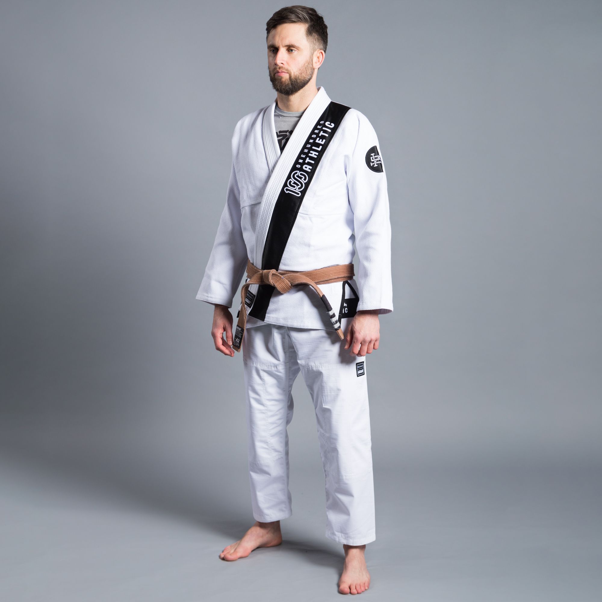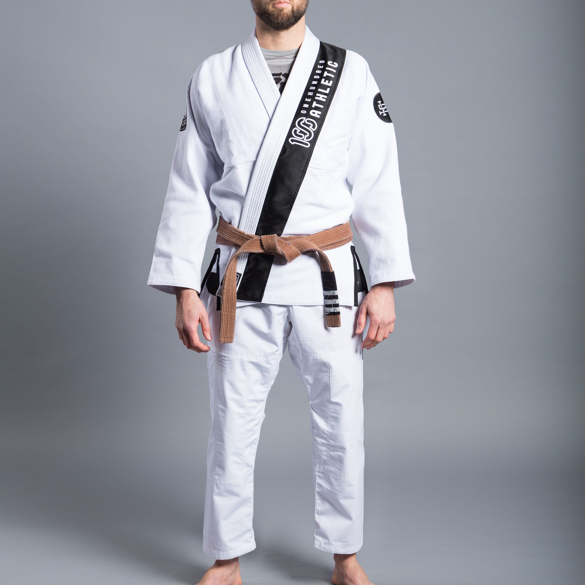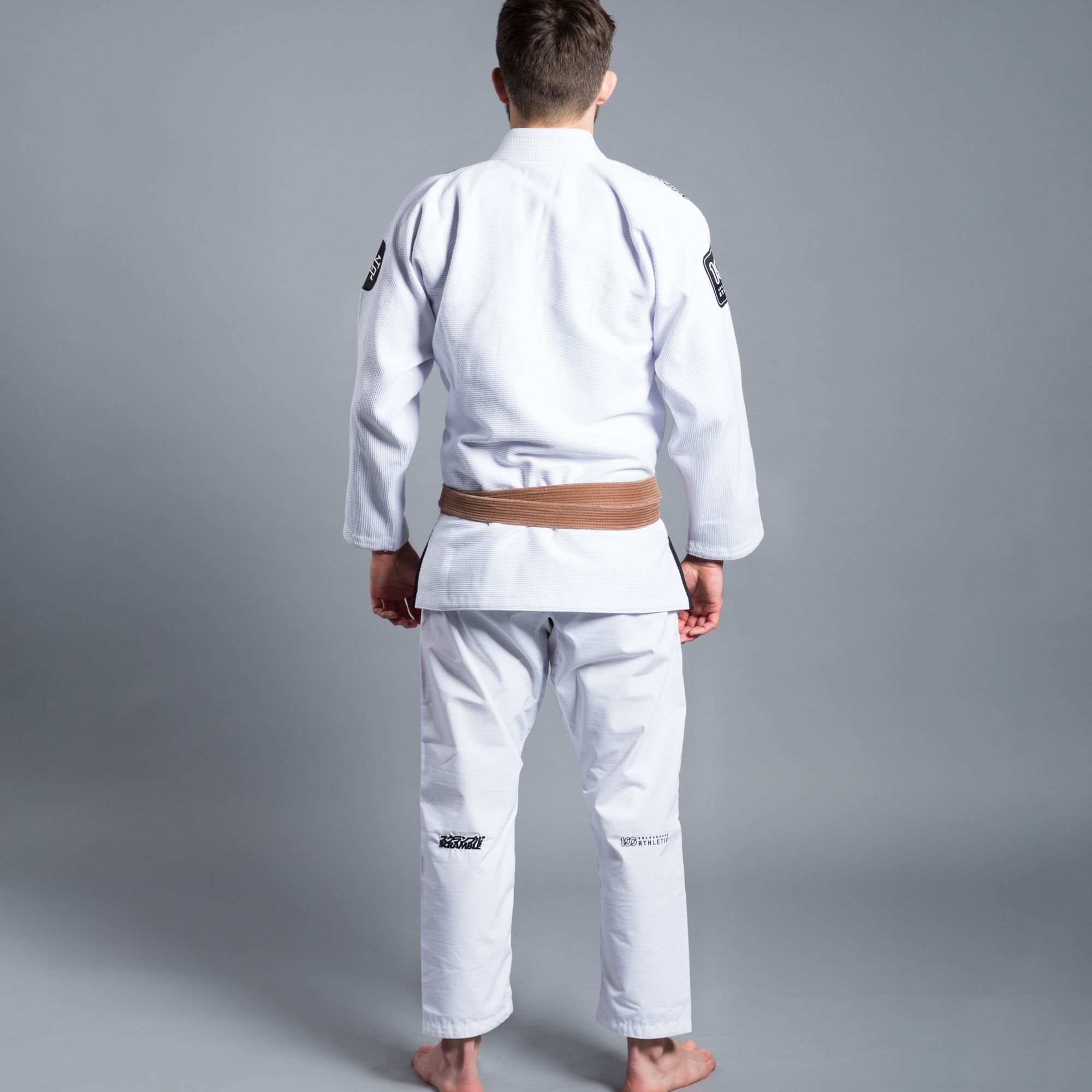 The 100Athletic x Scramble Kimono features a hybrid cut, between the Japanese style and the traditional BJJ style, and numerous patches and details celebrating the collaboration.