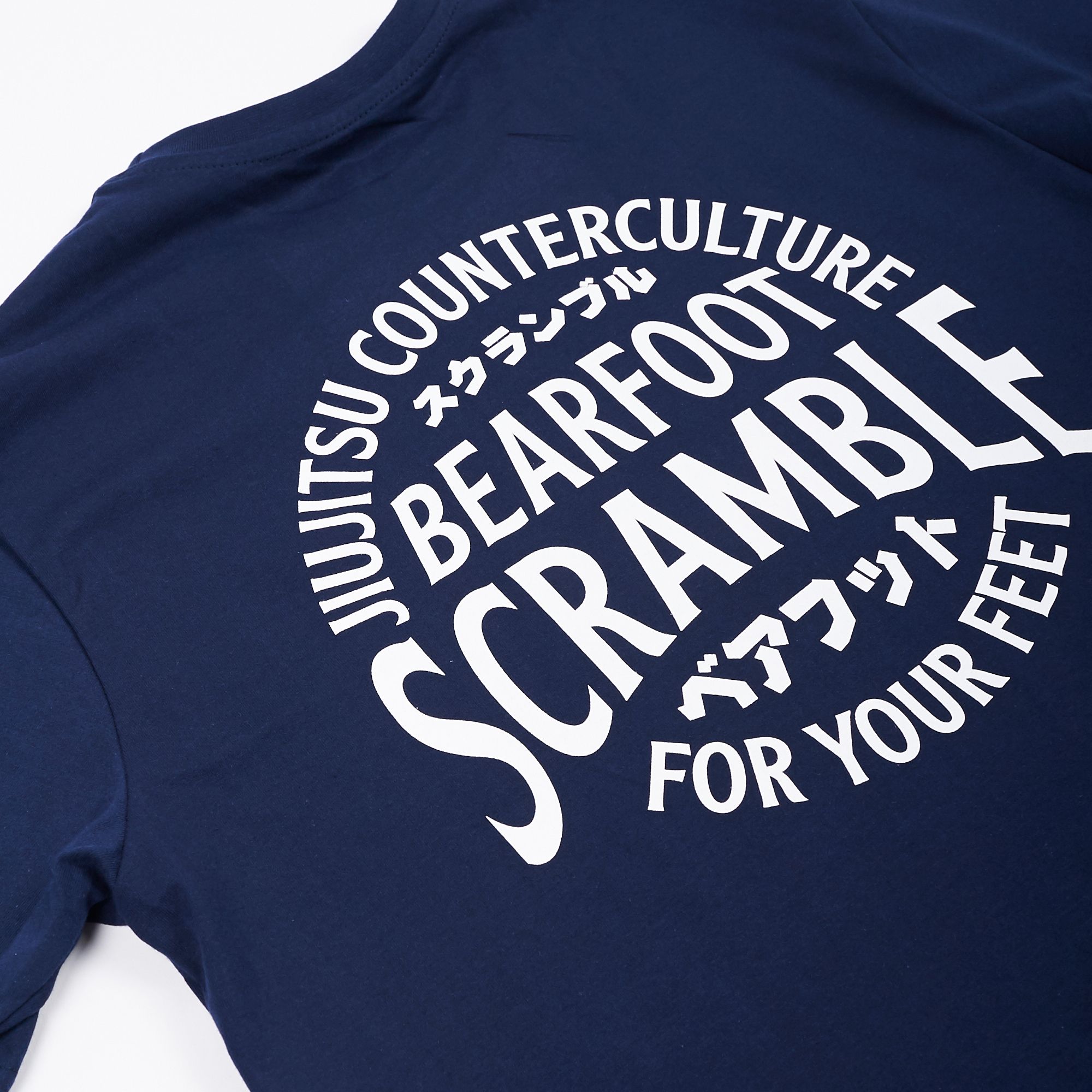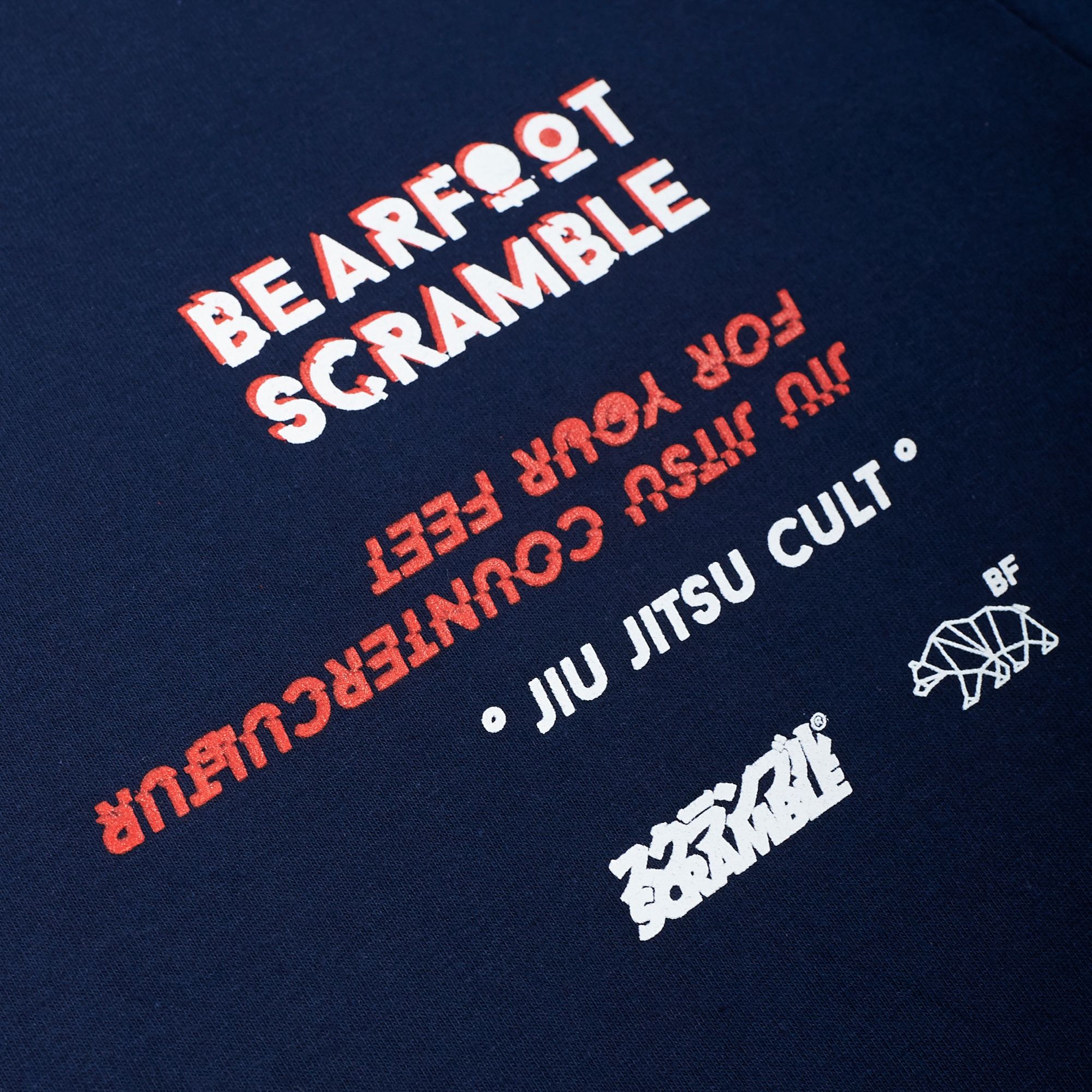 Bearfoot is a jiujitsu lifestyle company primarily focused on slides or flip flops, and you can find our collaborative slides elsewhere on the site. This is a t-shirt to accompany the release, and features bold, type-led designs from both the Scramble and Bearfoot design team.