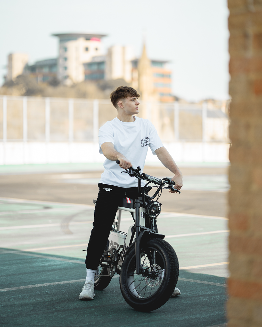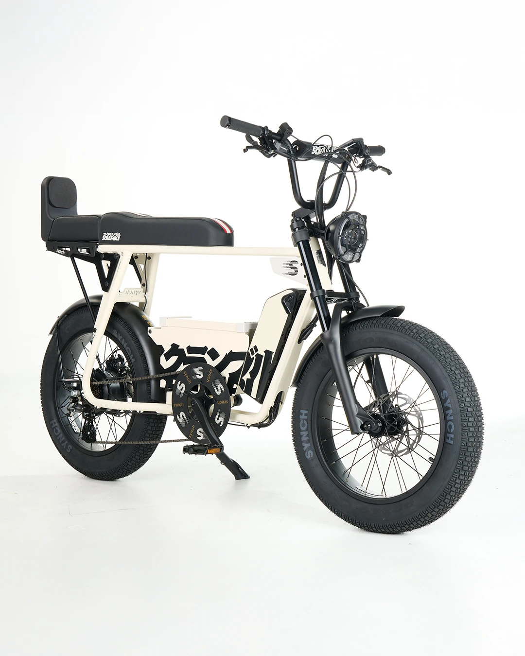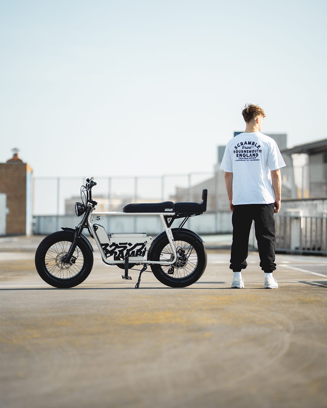 The Scramble x Synch e-Bike is a collaboration between Scramble and a prestigious e-bike manufacturer local to our HQ, Synch. Synch is a family run business that builds e-bikes by hand in the UK, using as many local manufacturers as possible. Decals are 3d-printed locally, the seat is hand stitched locally, etc. This is a state of the art e-bike made with premium quality components, that has a long range, is very smooth and satisfying to operate, and is perfect for spring / summer – it also saves you money on petrol!